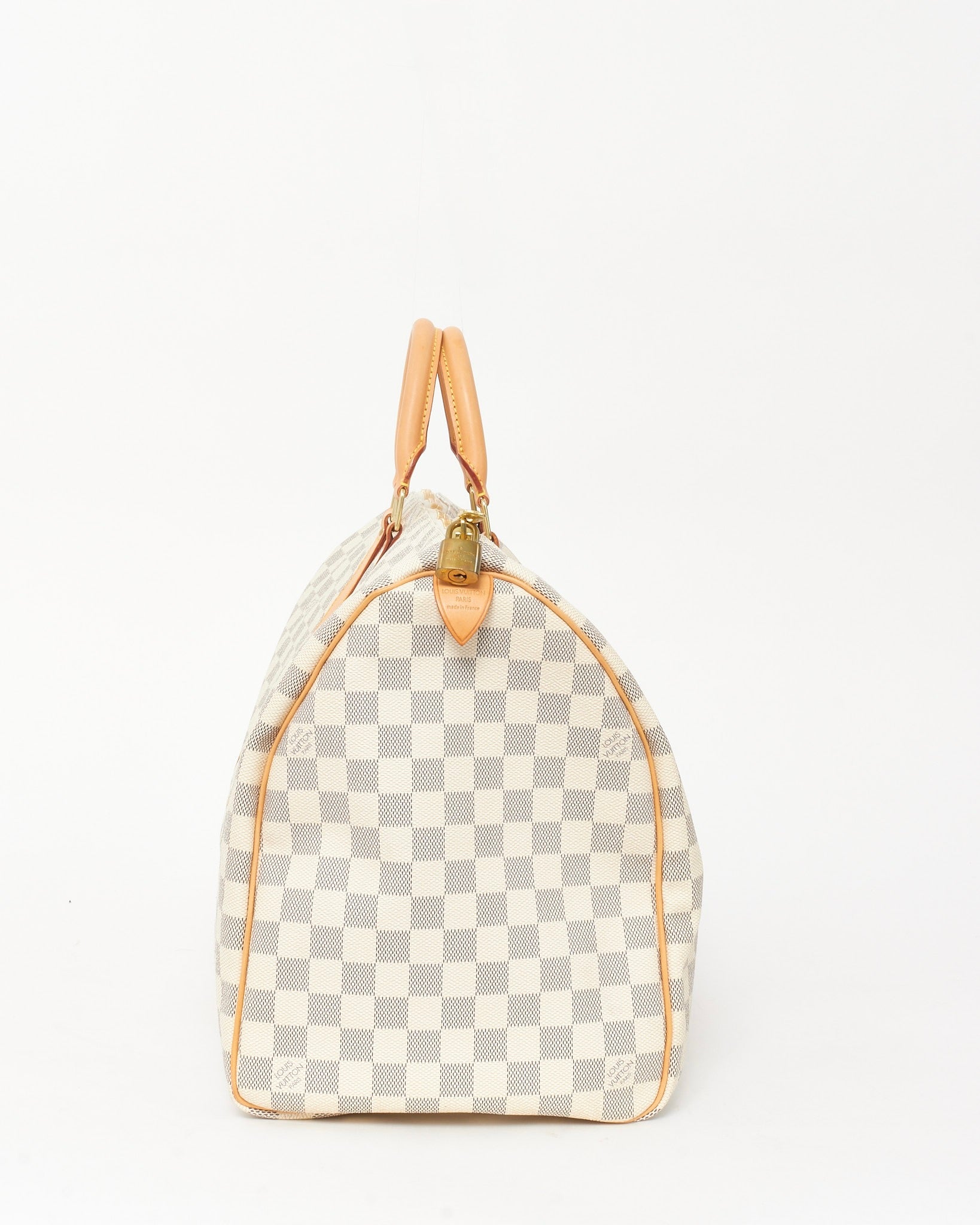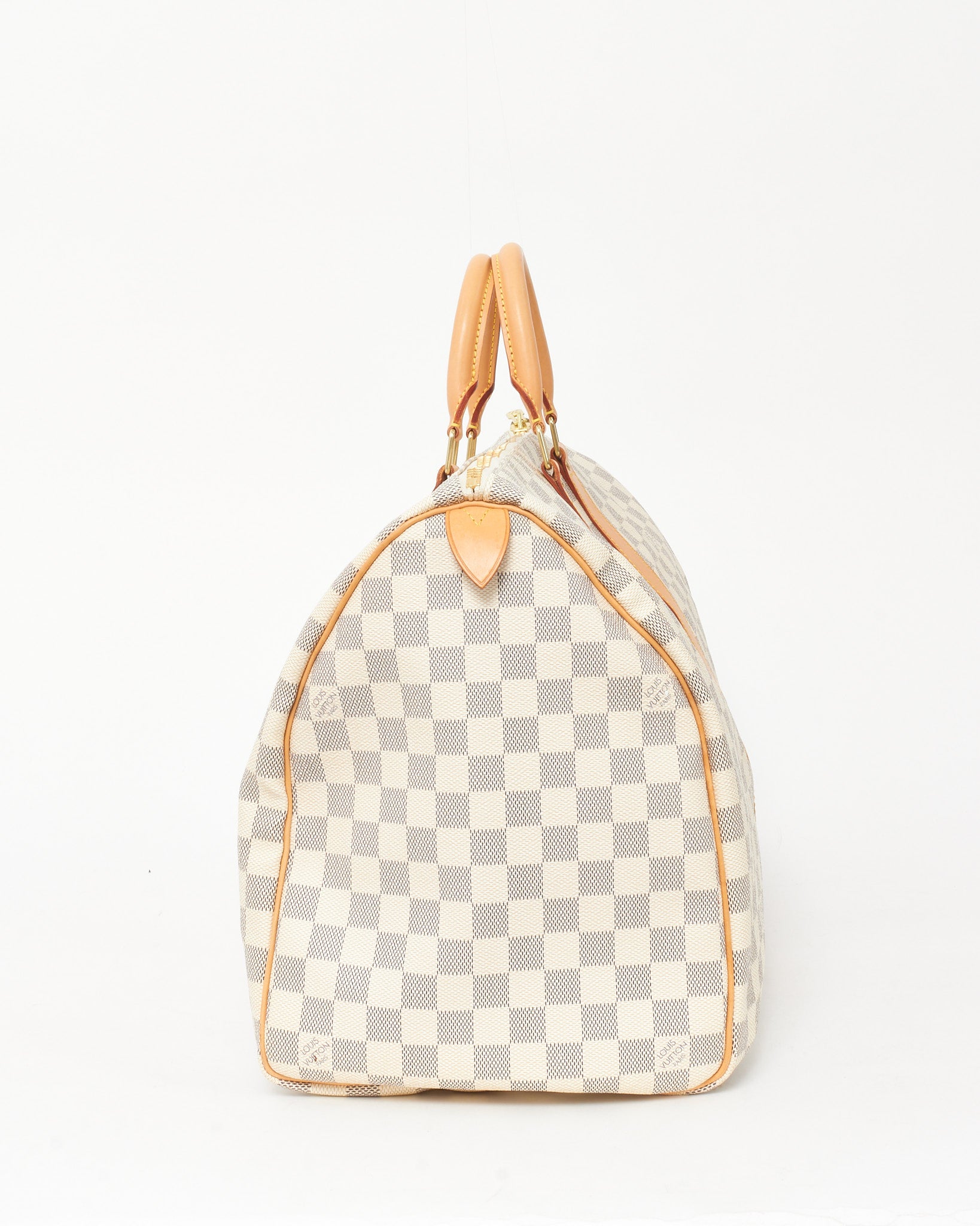 A refined travel essential, this pre-loved authentic Louis Vuitton Keepall 50 is rendered in signature Damier Azur coated canvas with natural cowhide leather trim. Featuring a spacious interior and lightweight construction, the iconic silhouette is perfect for weekend escapes or carry-on use. Finished with gold-tone hardware and dual rolled handles, this timeless piece blends Parisian elegance with practical luxury.