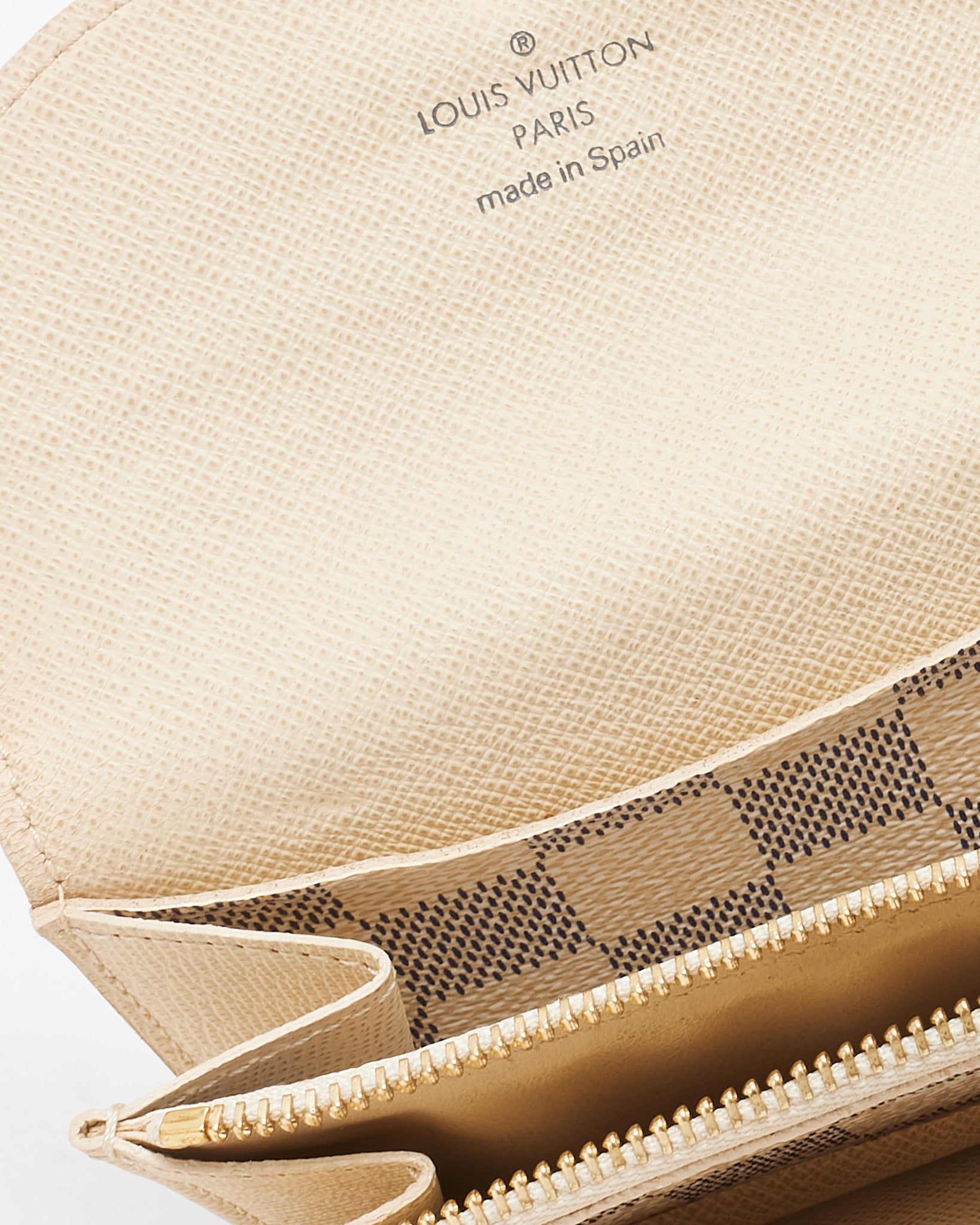 Add compact elegance to your essentials with this pre-loved authentic Louis Vuitton Damier Azur Coated Canvas Solo Pochette Compact Wallet. Crafted from the house’s signature Damier Azur canvas, this slim wallet offers a fresh, refined aesthetic with a secure snap tab closure and a neatly organized interior. Featuring multiple card slots, a bill compartment, and a zip coin pocket, it balances style with functionality. Perfect for slipping into a mini bag or carrying on its own, this piece captures the light and timeless appeal of Louis Vuitton’s summer-ready Damier Azur line.