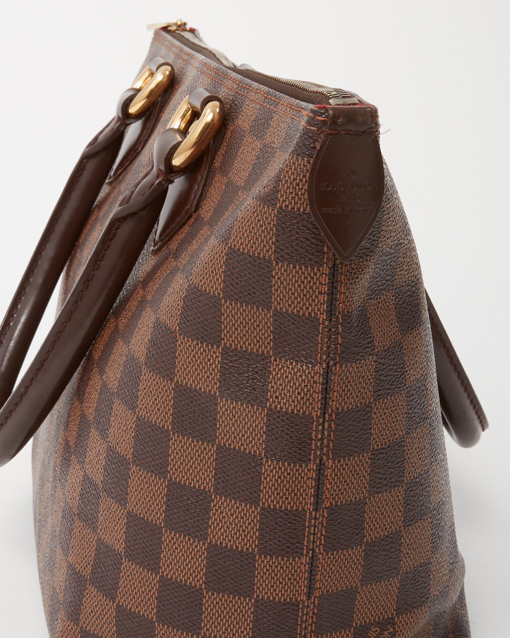 Elevate your everyday carry with this pre-loved authentic Louis Vuitton Saleya PM Tote, crafted in the house’s iconic Damier Ebene coated canvas. Designed with a structured silhouette and durable leather trim, this refined tote features slim shoulder straps, polished gold-tone hardware, and a secure zip-top closure. The compact yet spacious interior offers organized storage for daily essentials, making it ideal for work, errands, or travel. Timeless and practical, the Saleya PM blends classic Louis Vuitton craftsmanship with effortless sophistication.