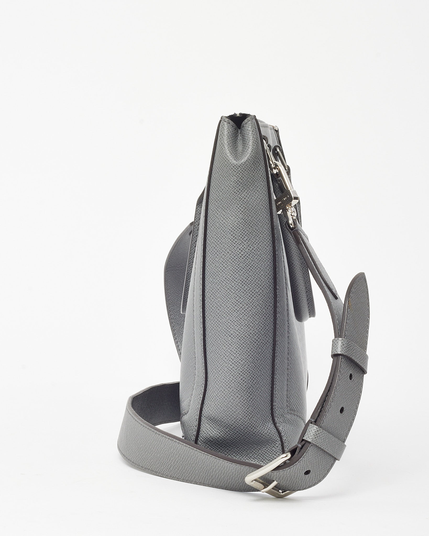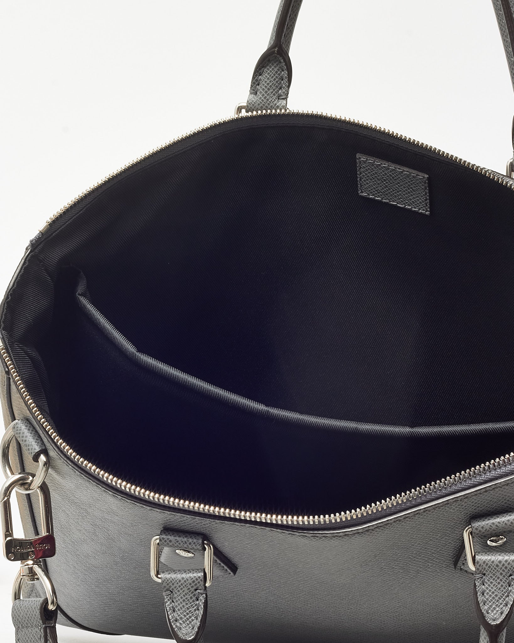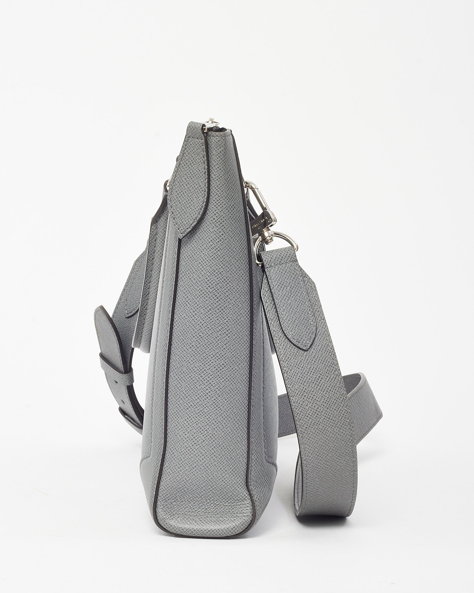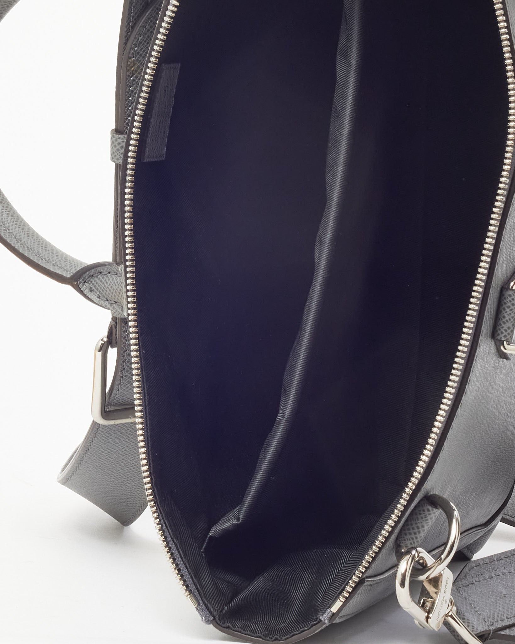 Grey Textured Taiga Leather Slim Briefcase Bag with Initial "GM" Strap