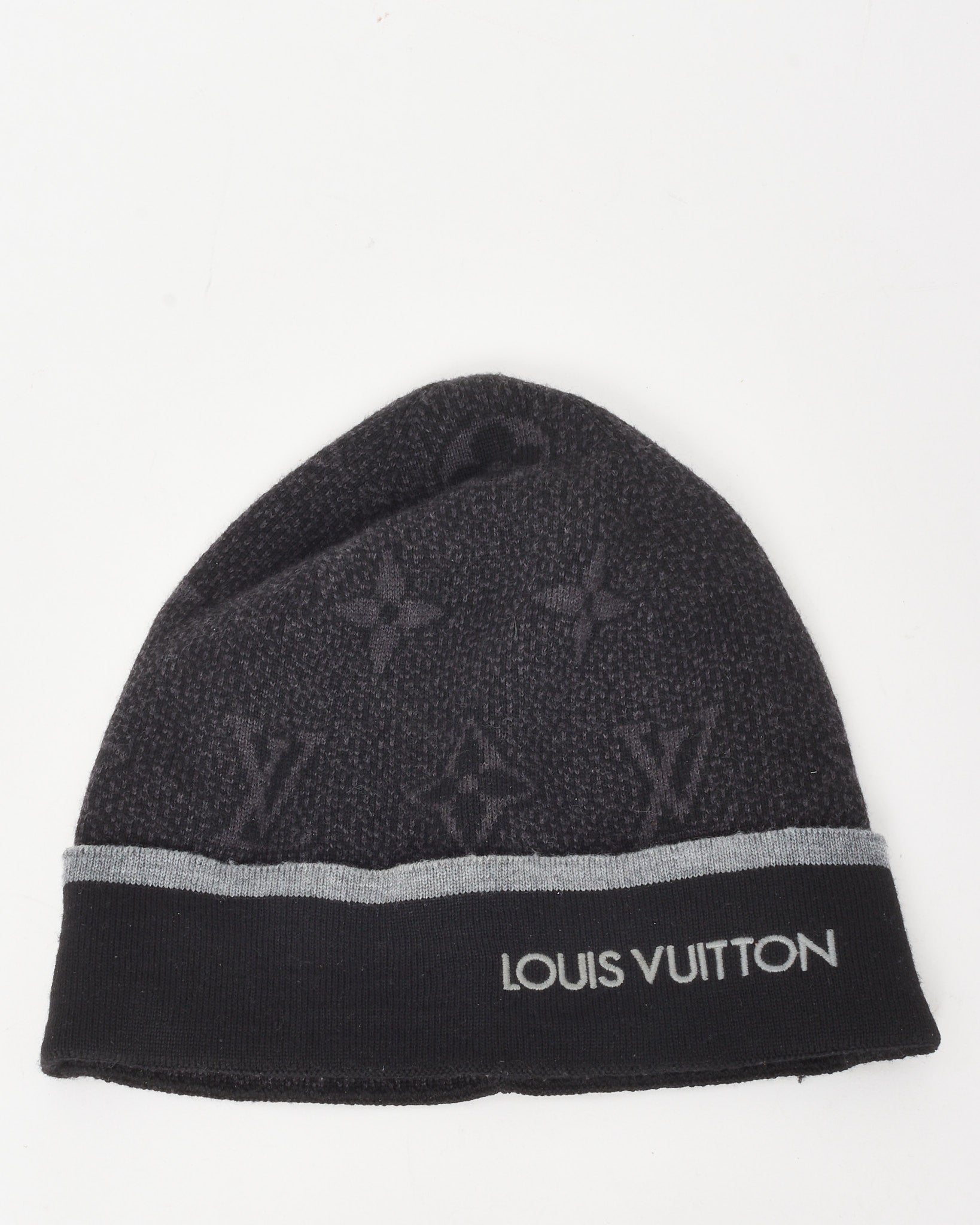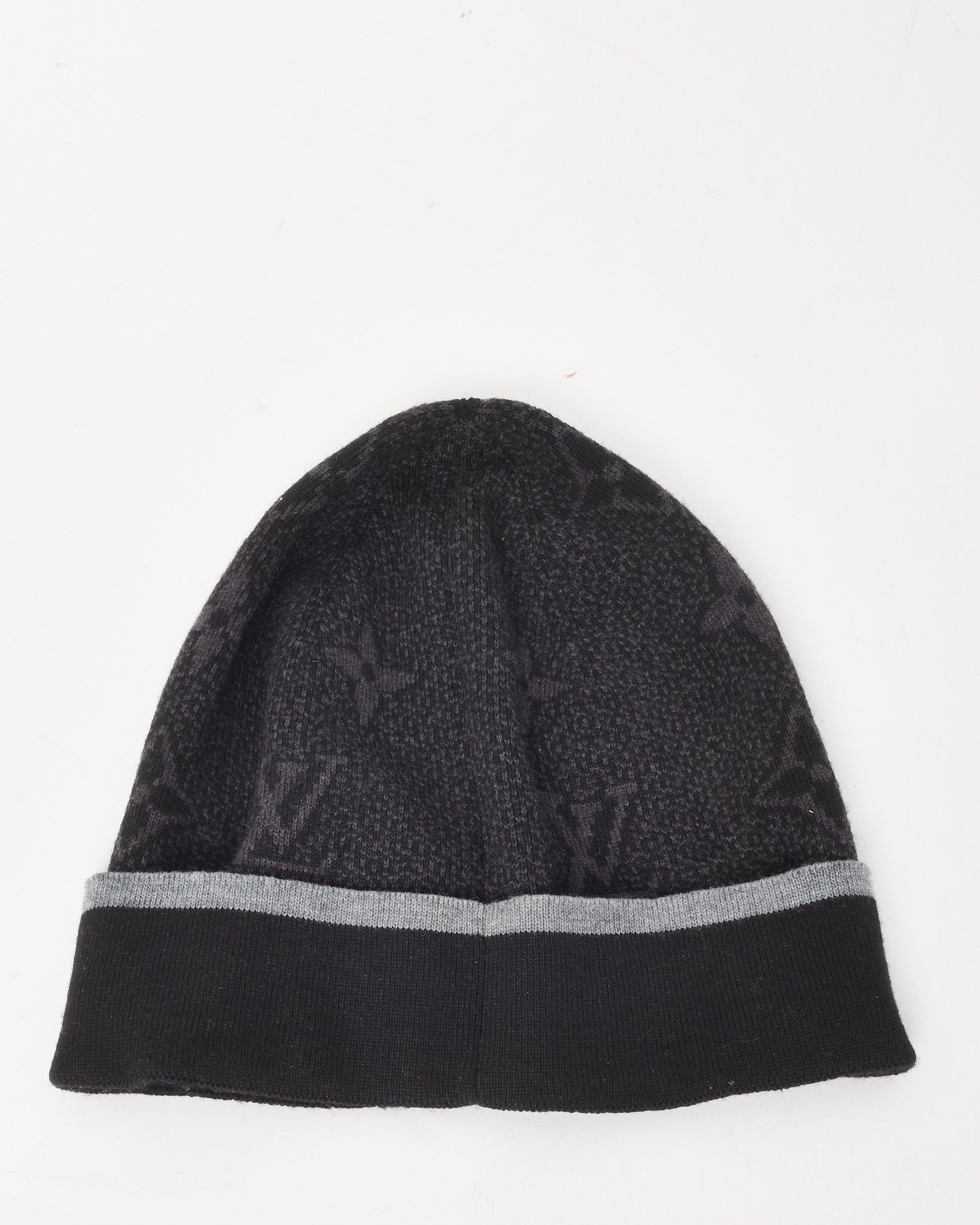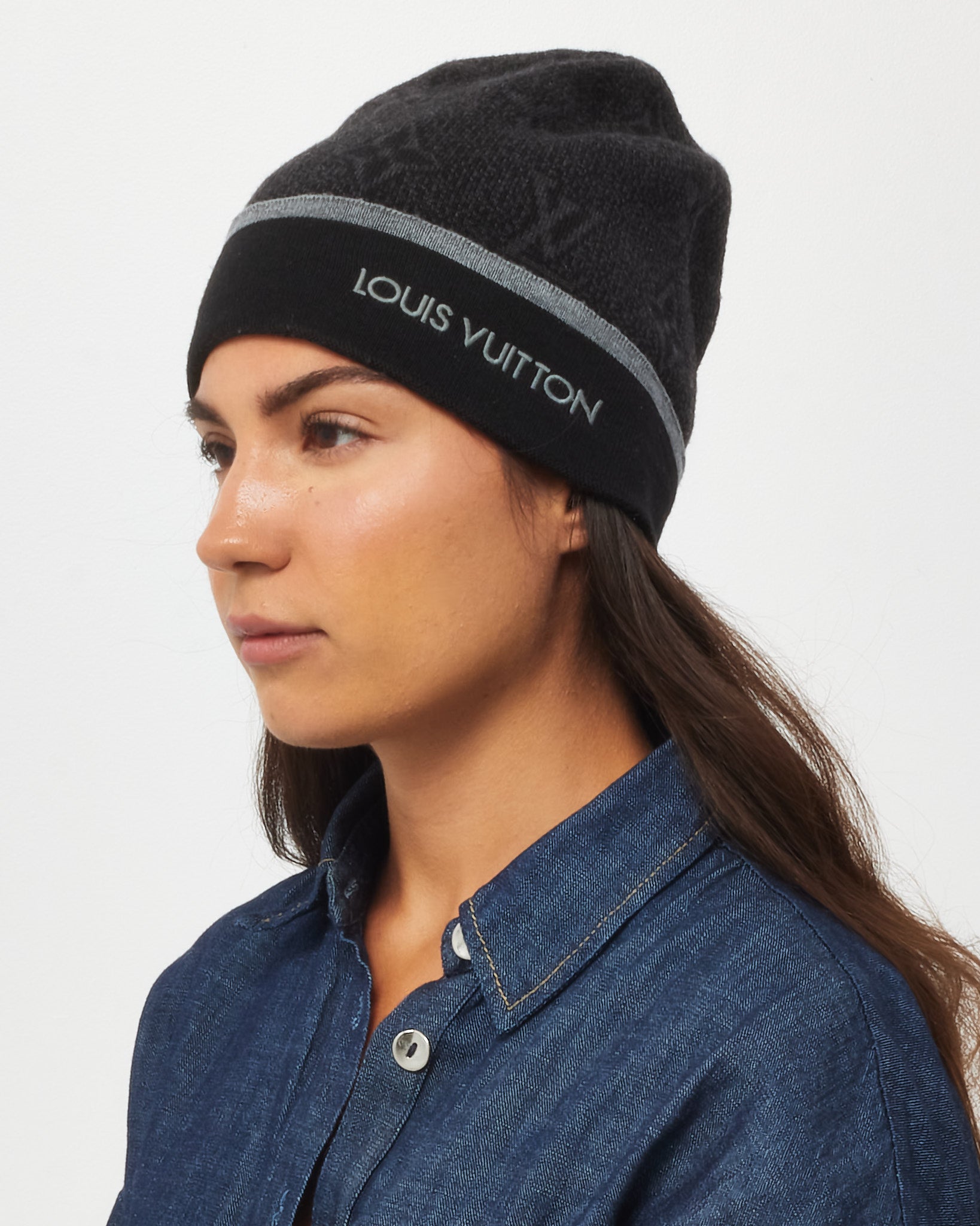 A refined expression of everyday luxury, this pre-loved authentic Louis Vuitton My Monogram Eclipse Hat is crafted from soft wool in a versatile grey tone. The all-over Monogram motif lends a subtle statement, while the cozy, ribbed knit construction ensures warmth and comfort. A stylish and functional addition to any modern wardrobe, perfect for cool-weather layering with a designer edge.