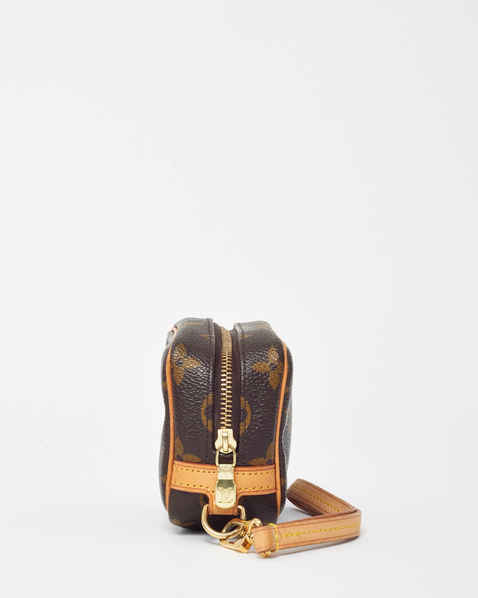 Compact, stylish, and effortlessly functional, this pre-loved authentic Louis Vuitton Monogram Canvas Monogram Wapity Wristlet Pouch is the perfect everyday companion. Crafted from iconic Monogram coated canvas with natural leather trim, this structured mini pouch features a secure zip-around closure and a removable leather wristlet strap for hands-free convenience. The interior is lined and padded, making it ideal for carrying small essentials like cards, keys, or earbuds. Whether used as a compact clutch or tucked into a larger bag, this versatile LV pouch adds a touch of classic luxury to your daily routine.