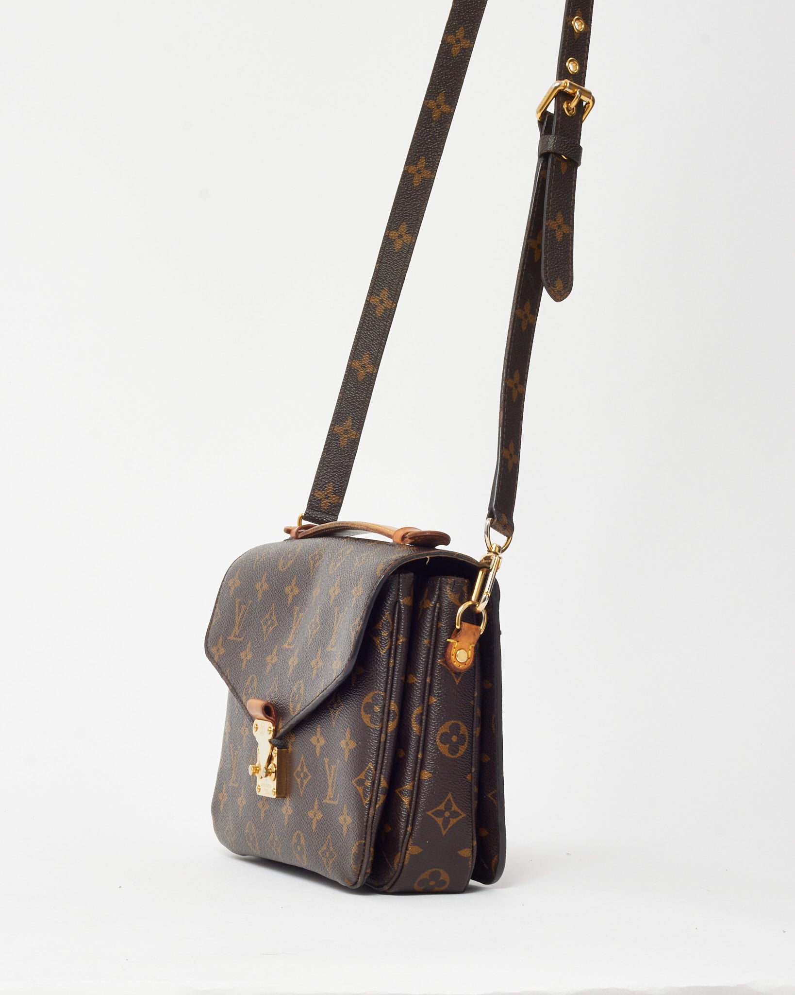 Timeless and versatile, this pre-loved authentic Louis Vuitton Monogram Canvas Pochette Metis Bag combines classic design with modern functionality. Crafted from signature Monogram coated canvas with natural Vachetta leather trim, it features a structured silhouette with a top handle, front S-lock closure, and adjustable crossbody strap for versatile wear. The accordion-style interior includes multiple compartments for easy organization, making it perfect for everyday use. A sophisticated Louis Vuitton favorite that blends heritage craftsmanship with contemporary elegance.