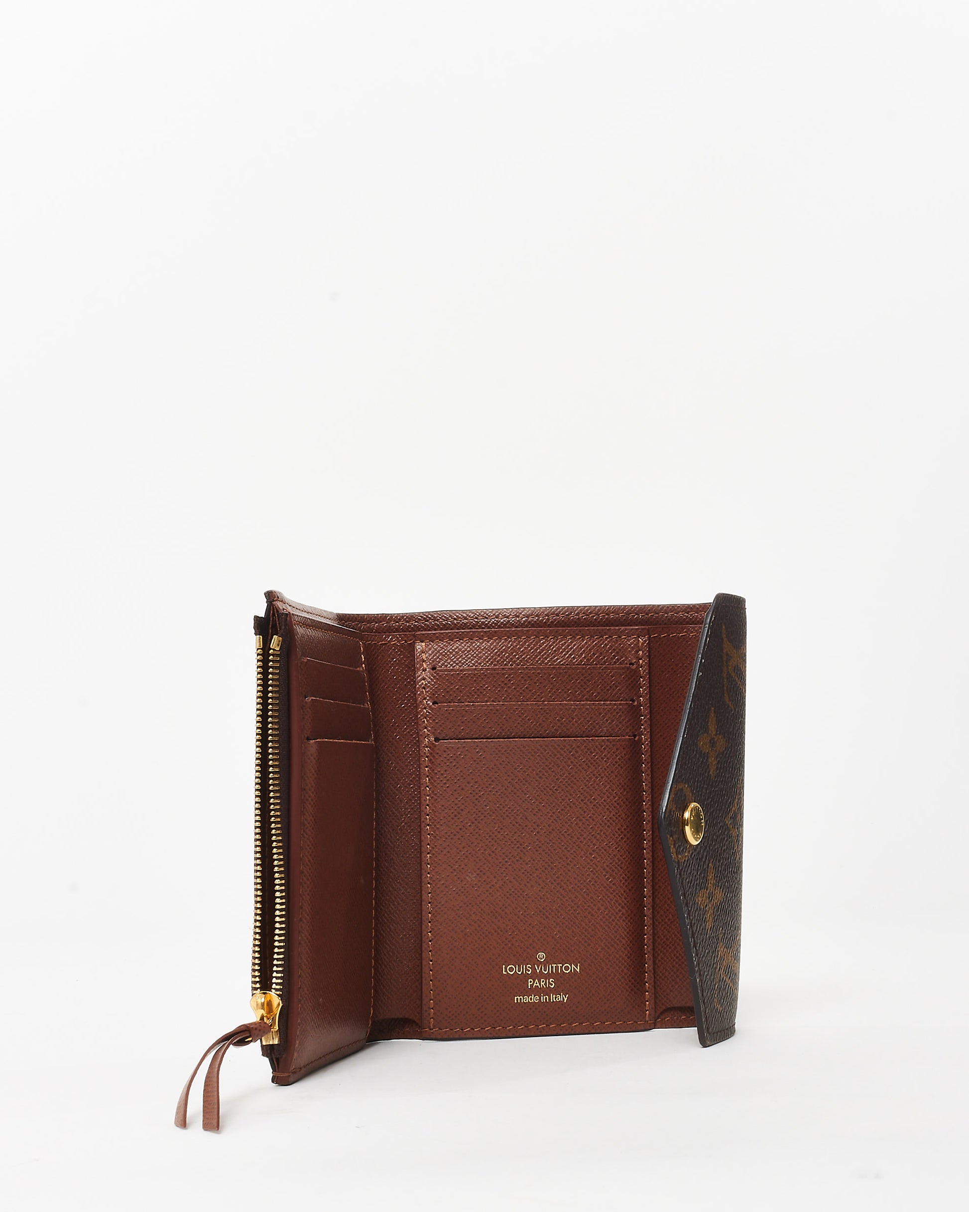 Compact yet effortlessly functional, the pre-owned authentic Louis Vuitton Monogram Canvas Victorine Wallet is a sophisticated everyday essential. Crafted from iconic monogram-coated canvas, this wallet features a sleek envelope-style silhouette, offering a timeless and polished aesthetic.