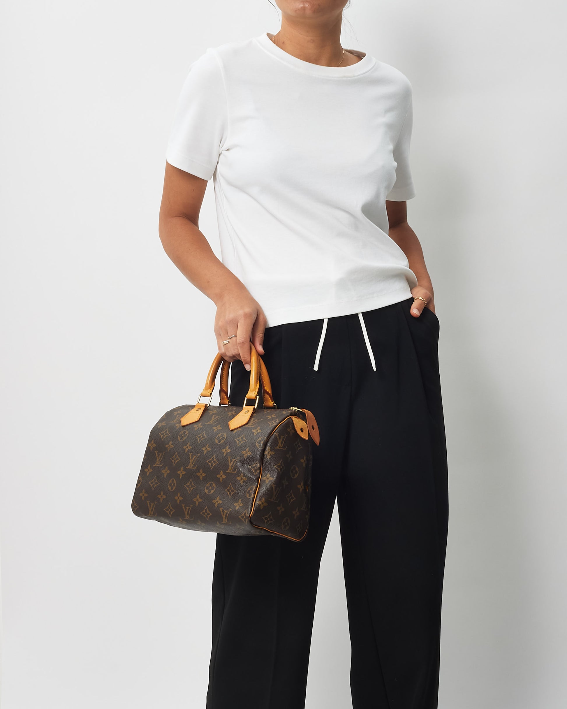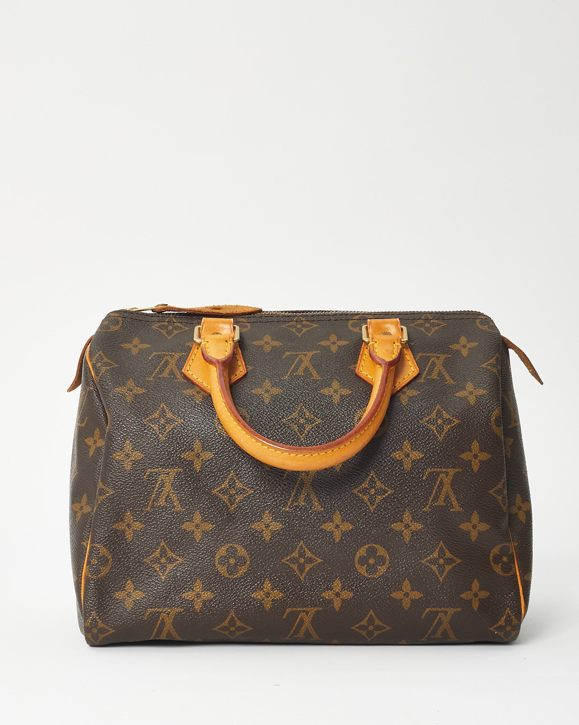 Explore Louis Vuitton's exquisite collection of handbags, featuring this certified pre-owned Monogram Coated Canvas Speedy 25. Embodying timeless elegance and modern sustainability, each piece, including favorites like this, is authenticated by Retyche. Discover sustainable luxury — shop our current treasures or find inspiration for your next coveted find.