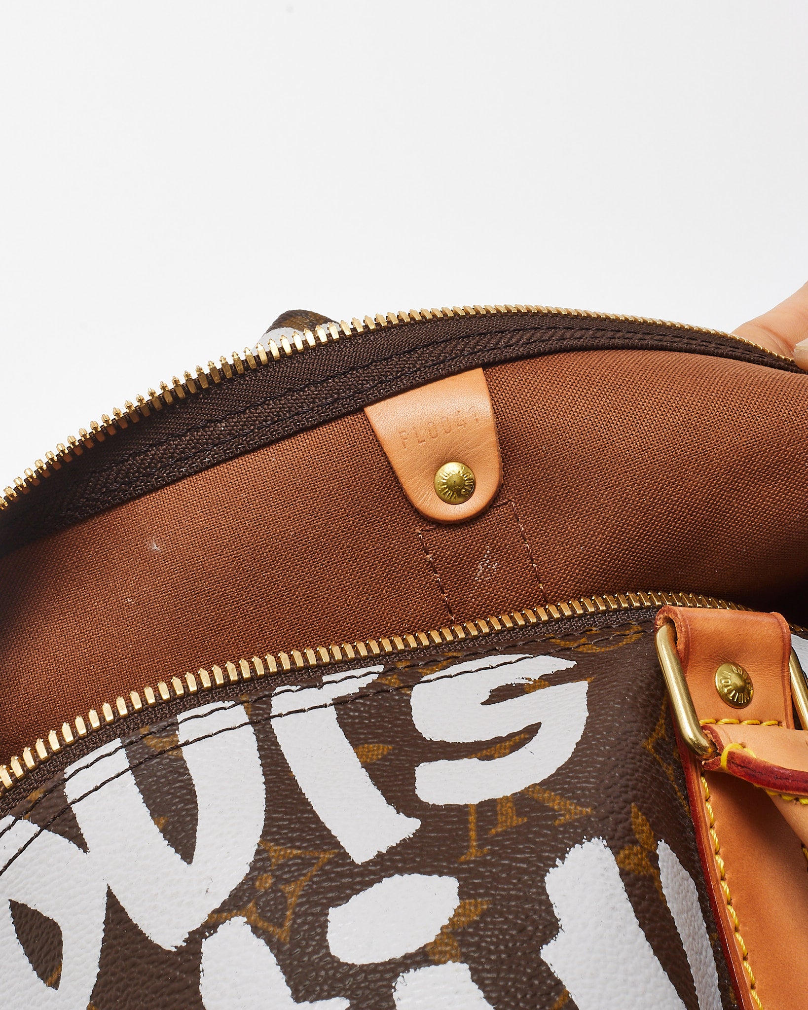 Make a bold collector’s statement with this pre-loved authentic Louis Vuitton Monogram x Stephen Sprouse 2001 Graffiti Keepall 50 Bag. A rare collaboration from the iconic artist’s original 2001 capsule, this duffle features classic Monogram canvas overlaid with neon white graffiti lettering—a rebellious twist on a house staple. The spacious interior and structured silhouette make it ideal for travel or weekend escapes. Finished with natural Vachetta leather trim and top handles, this limited-edition piece is a striking fusion of high fashion and street art history. Please note: strap not included.