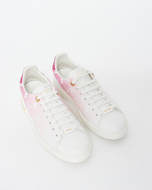 Explore Louis Vuitton's exquisite collection of shoes, featuring this certified pre-owned Pink Ombré Monogram Logo Sneakers - 37. Embodying timeless elegance and modern sustainability, each piece, including favorites like this, is authenticated by Retyche. Discover sustainable luxury — shop our current treasures or find inspiration for your next coveted find.