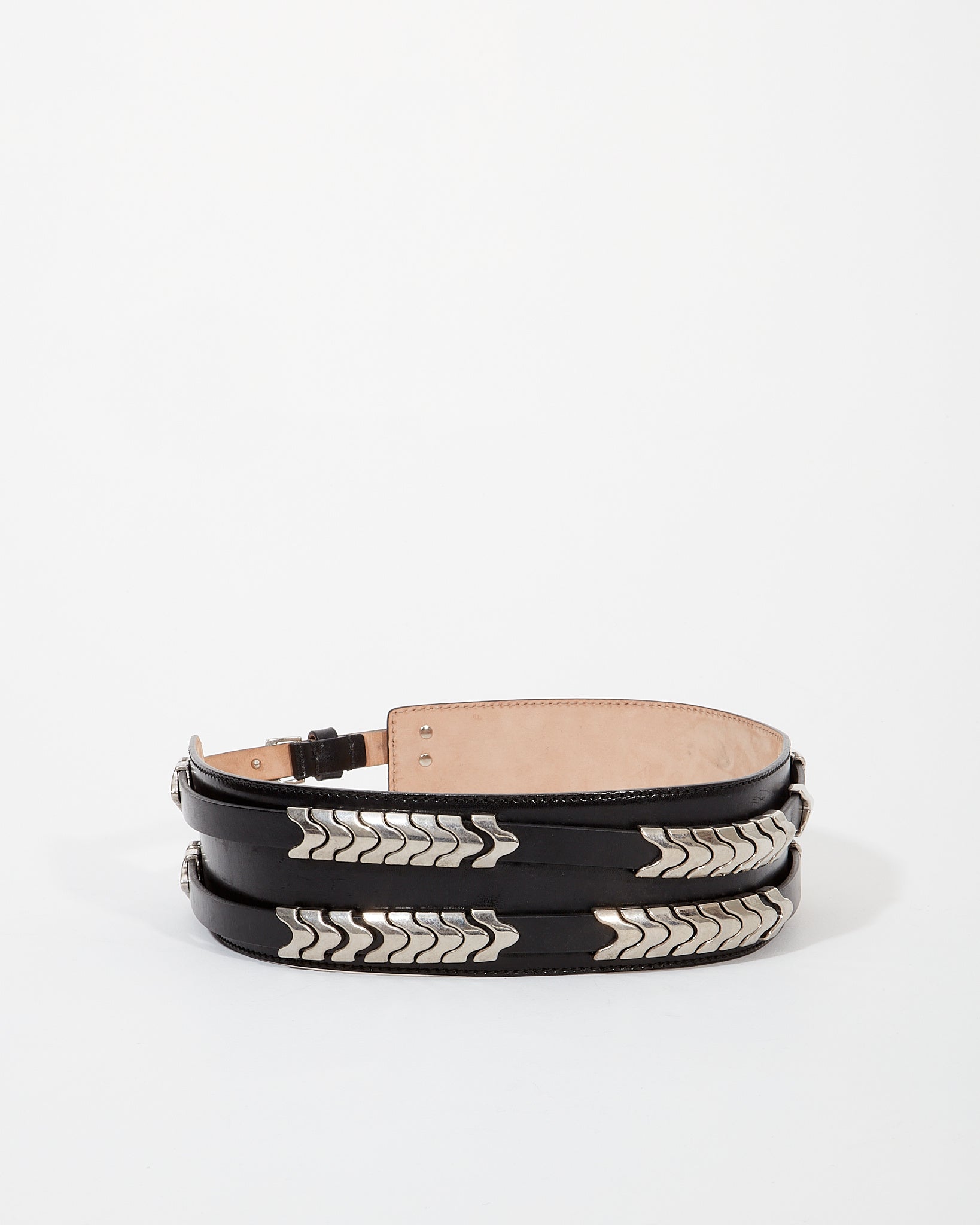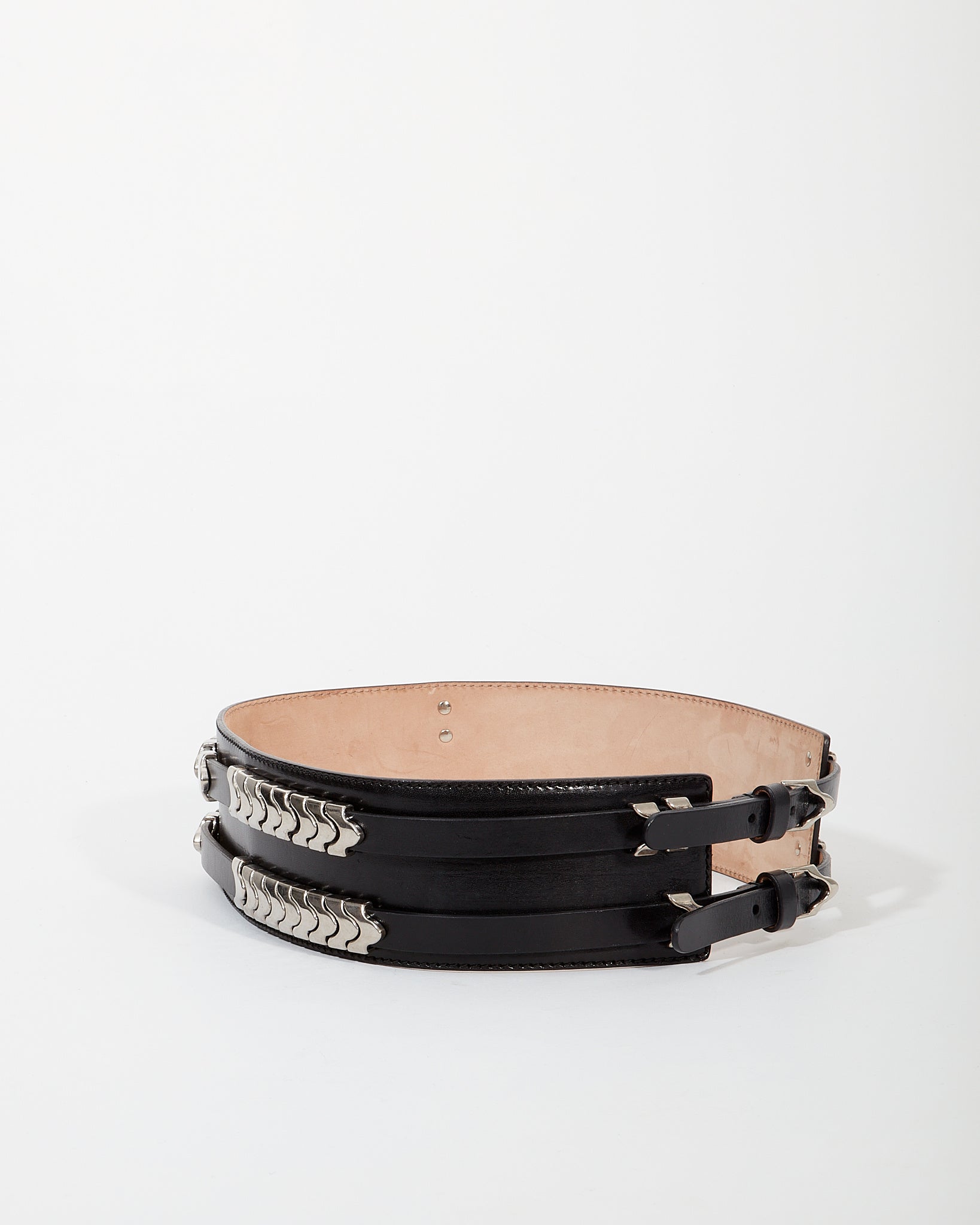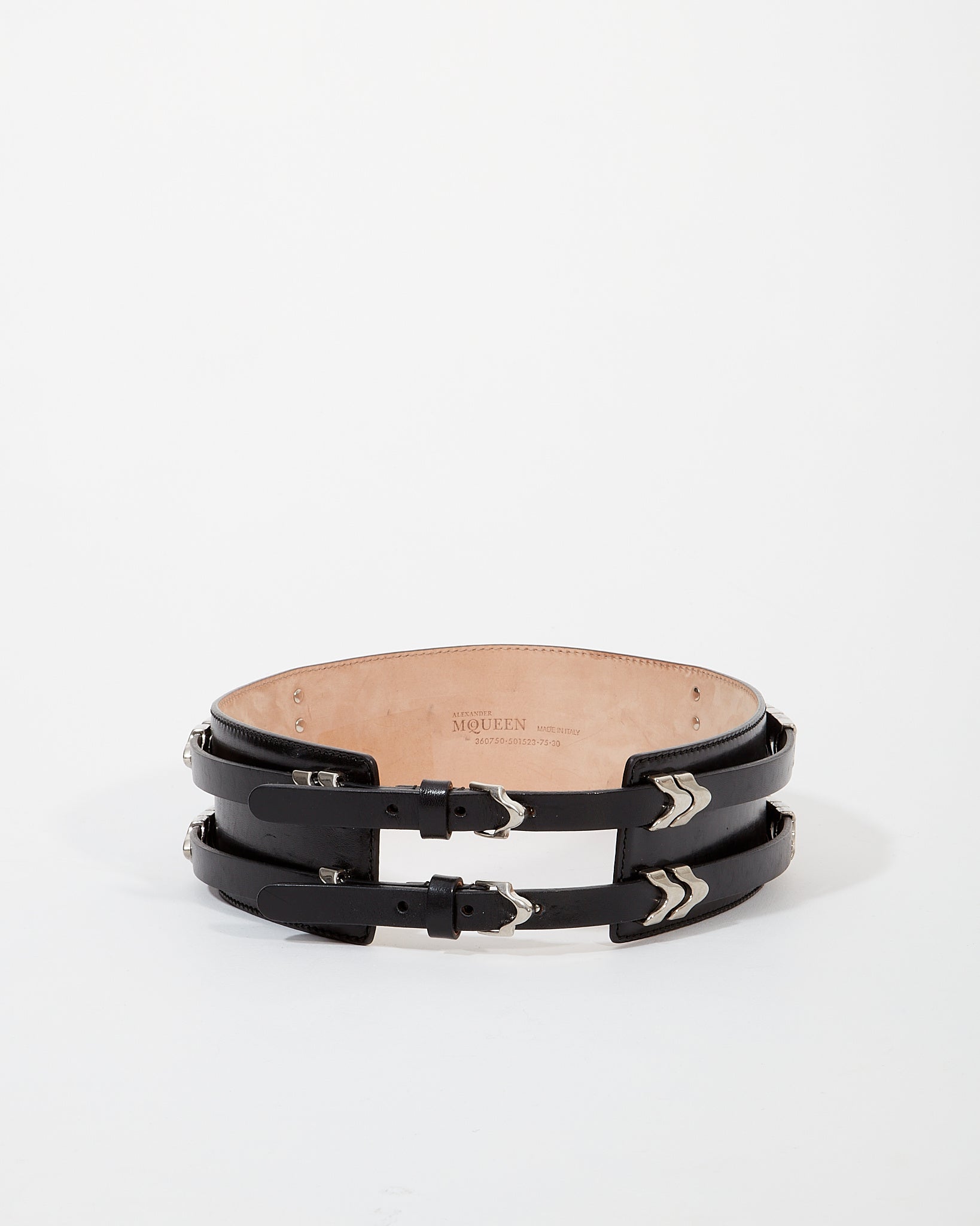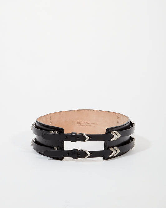 McQueen Black Leather Detail Wide Belt - 75