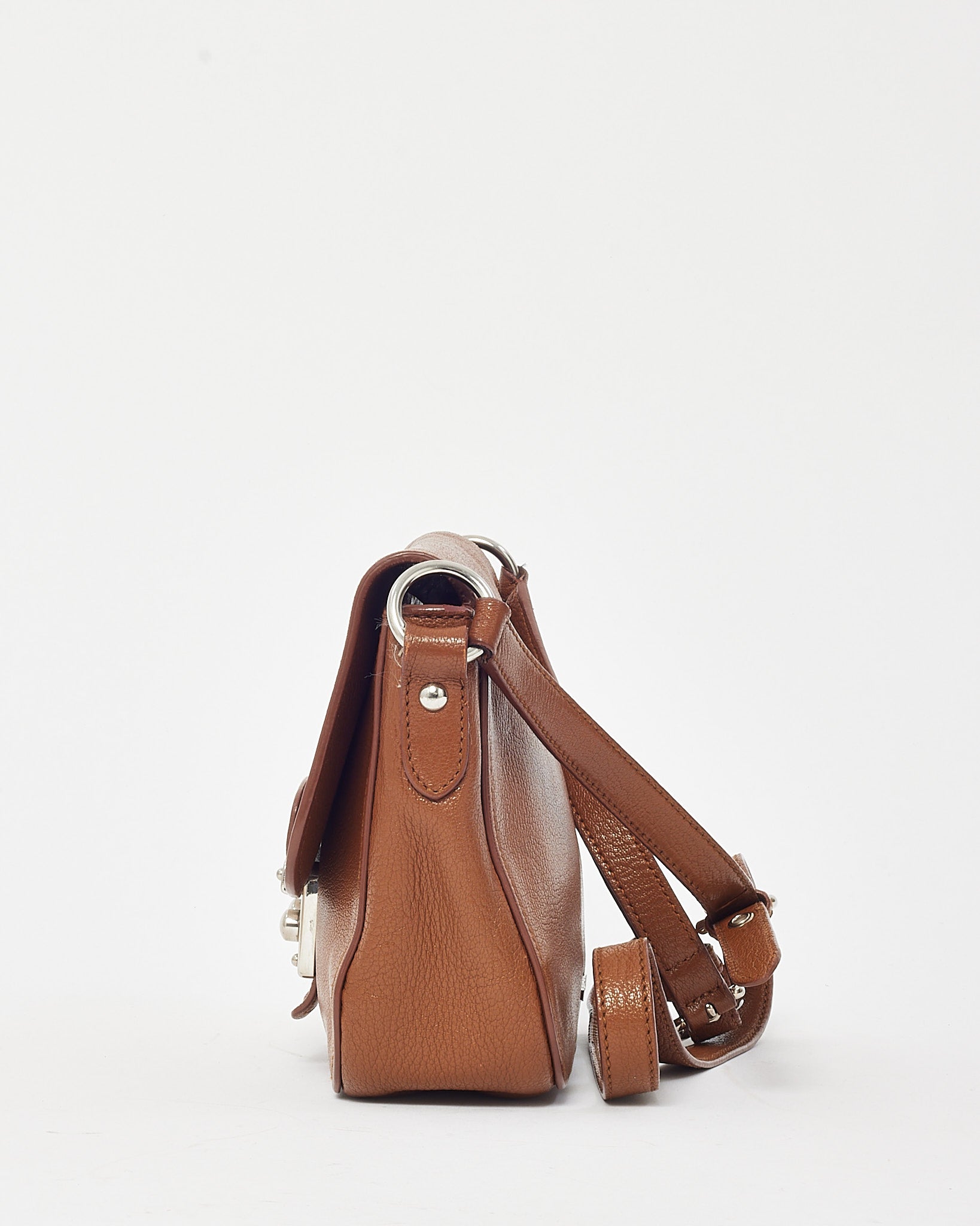 Brown Brandy Leather Madras Logo Push Lock Crossbody Bag