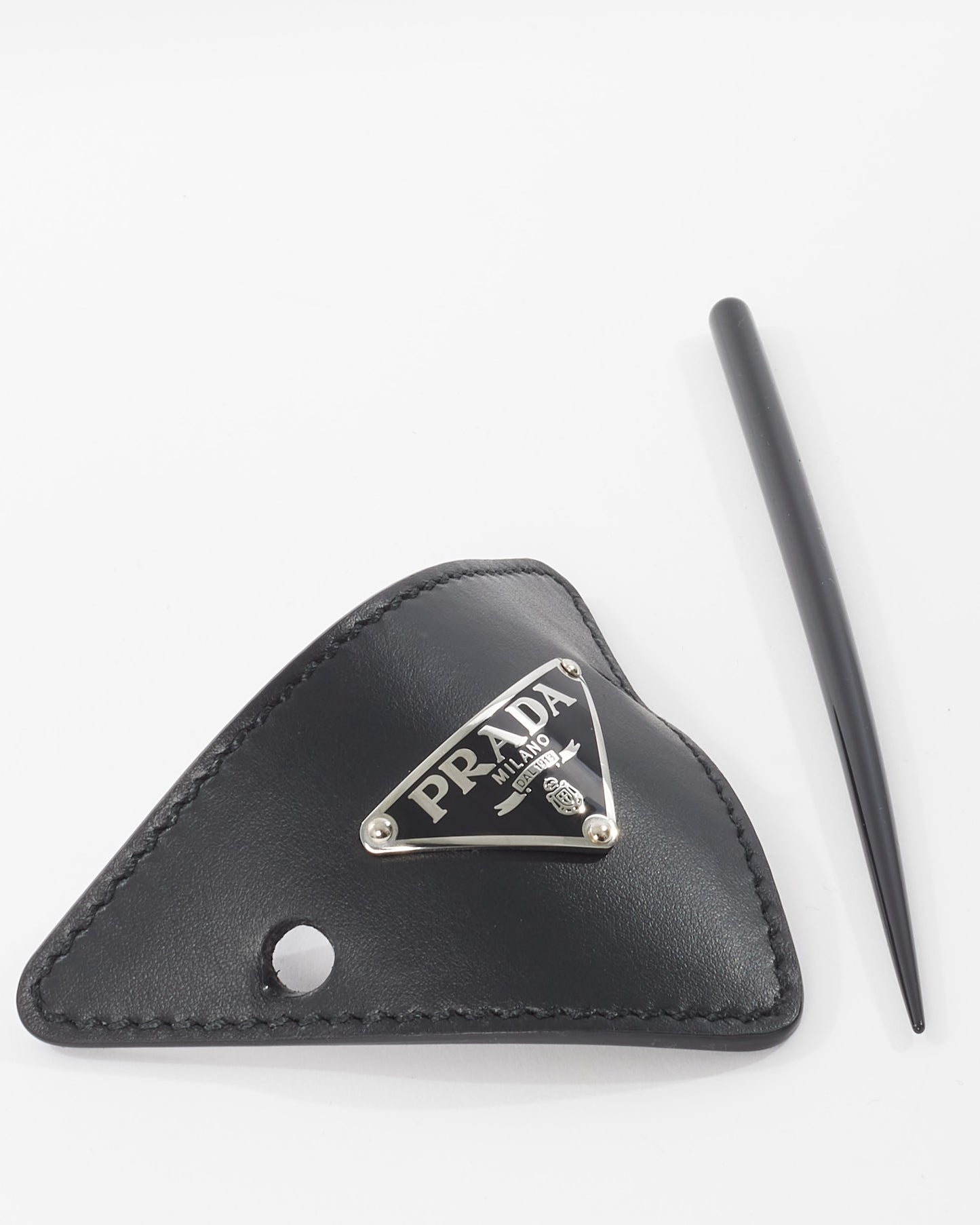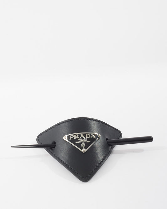 Explore Prada's exquisite collection of accessories, featuring this certified pre-owned Black Leather Logo Hair Stick Clip. Embodying timeless elegance and modern sustainability, each piece, including favorites like this, is authenticated by Retyche. Discover sustainable luxury — shop our current treasures or find inspiration for your next coveted find.