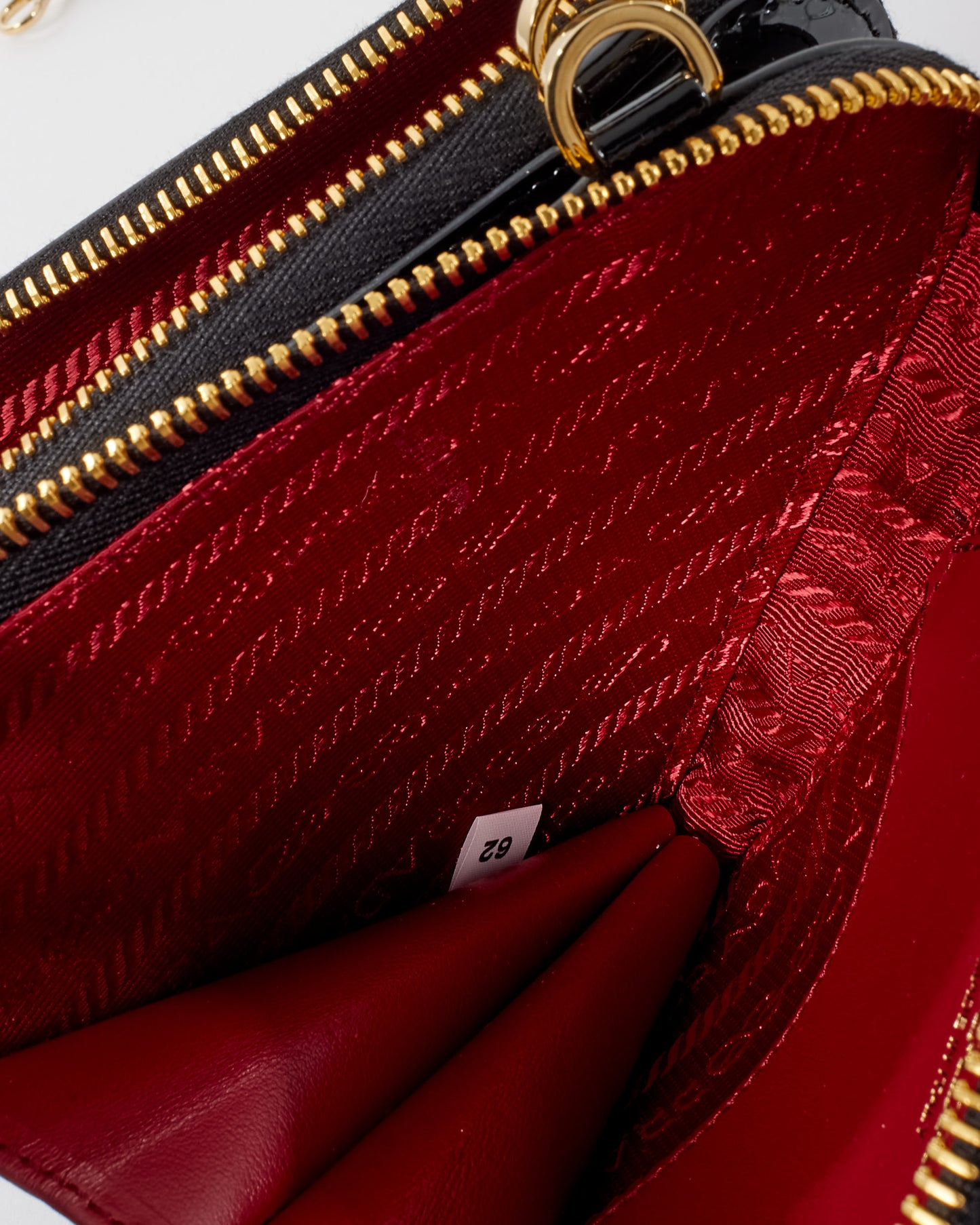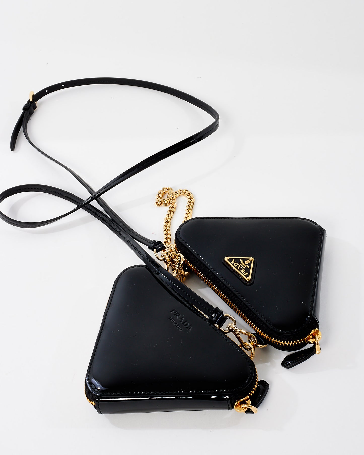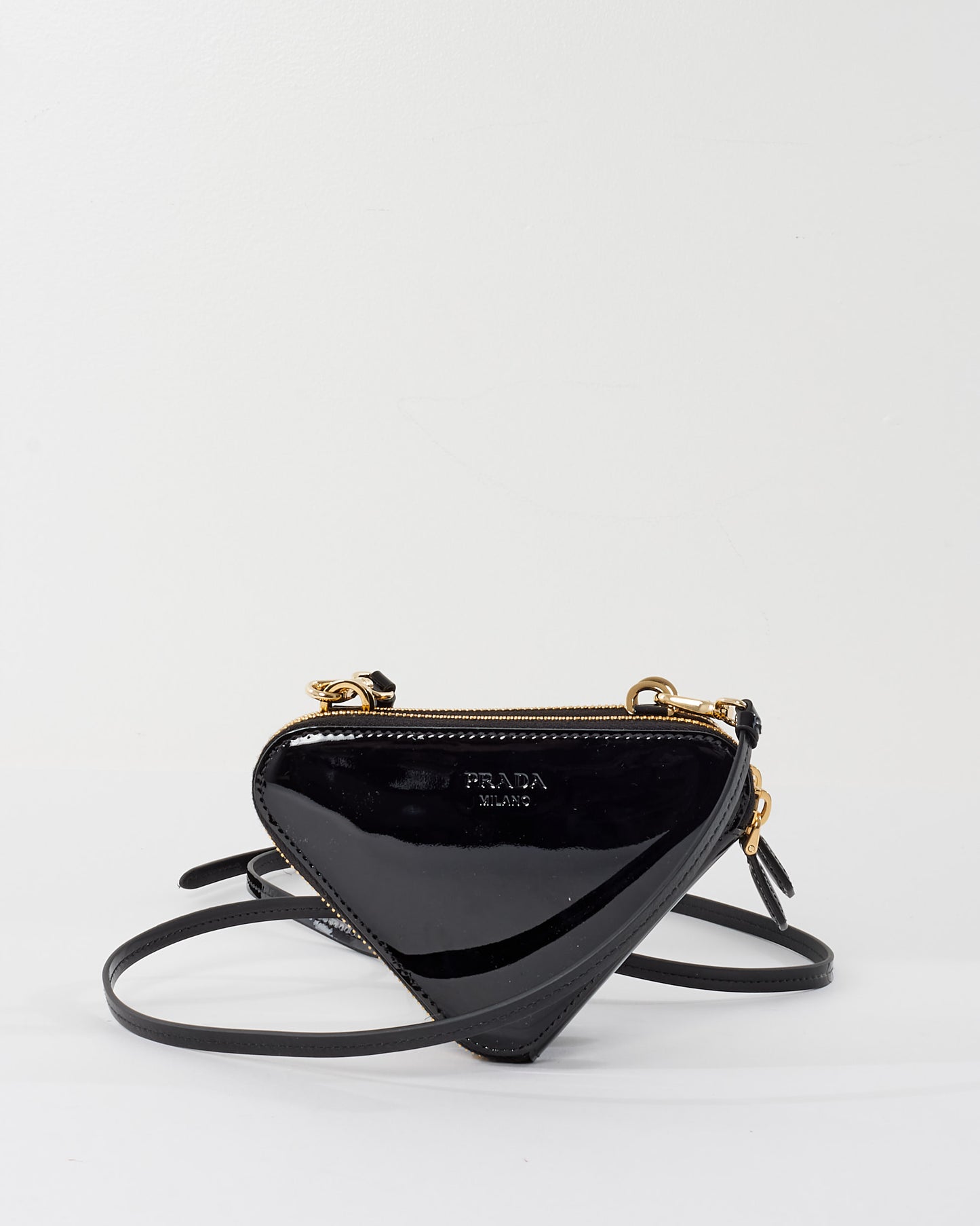 Explore Prada's exquisite collection of handbags, featuring this certified pre-owned Black Patent Leather Triangle Crossbody Bag. Embodying timeless elegance and modern sustainability, each piece, including favorites like this, is authenticated by Retyche. Discover sustainable luxury — shop our current treasures or find inspiration for your next coveted find.