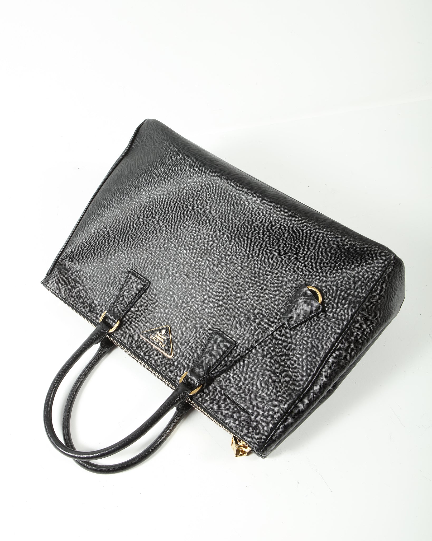 Black Saffiano Large Double Zip Galleria Lux Tote Bag