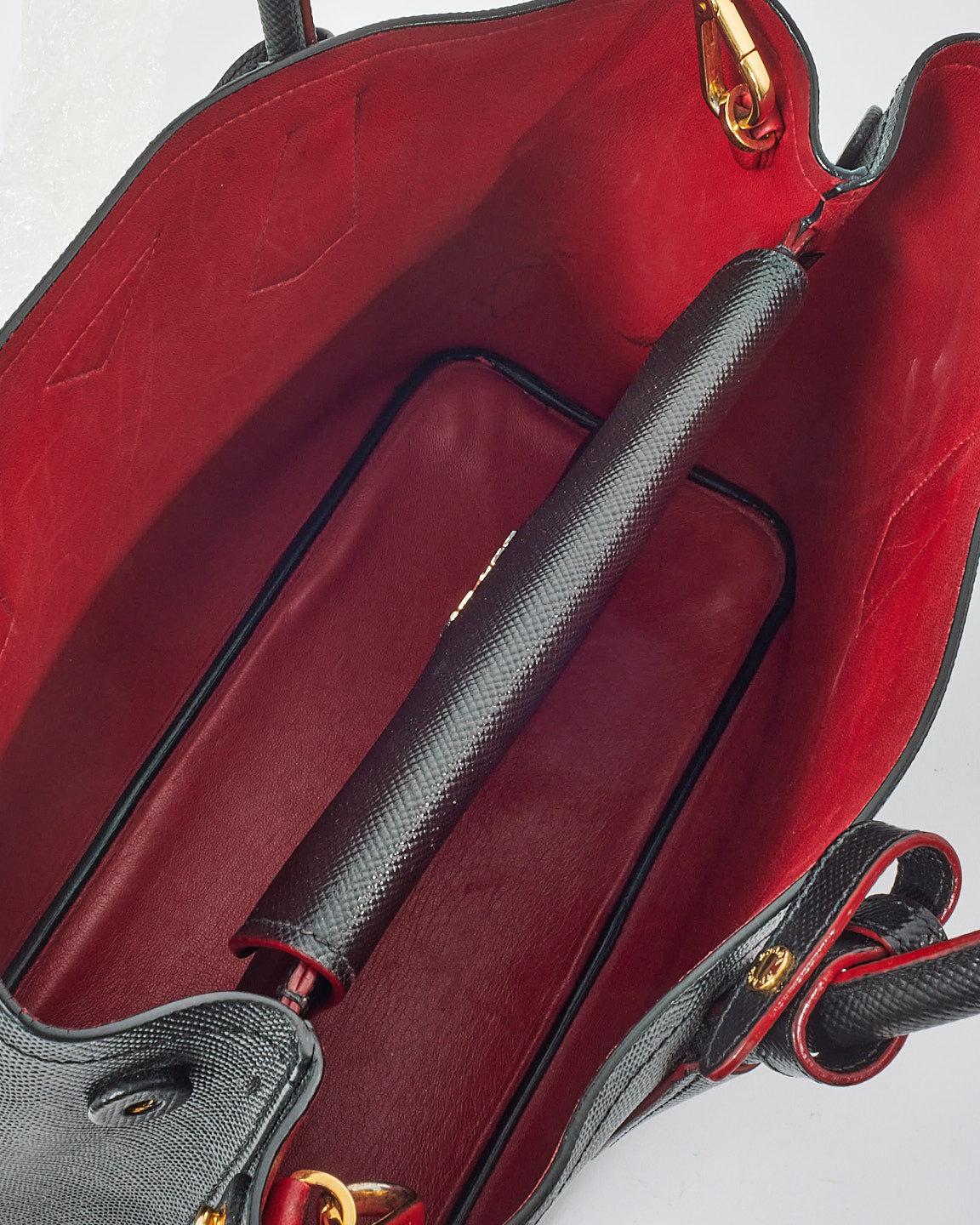 Explore Prada's exquisite collection of handbags, featuring this certified pre-owned Black Saffiano Leather Medium Double Bag. Embodying timeless elegance and modern sustainability, each piece, including favorites like this, is authenticated by Retyche. Discover sustainable luxury — shop our current treasures or find inspiration for your next coveted find.