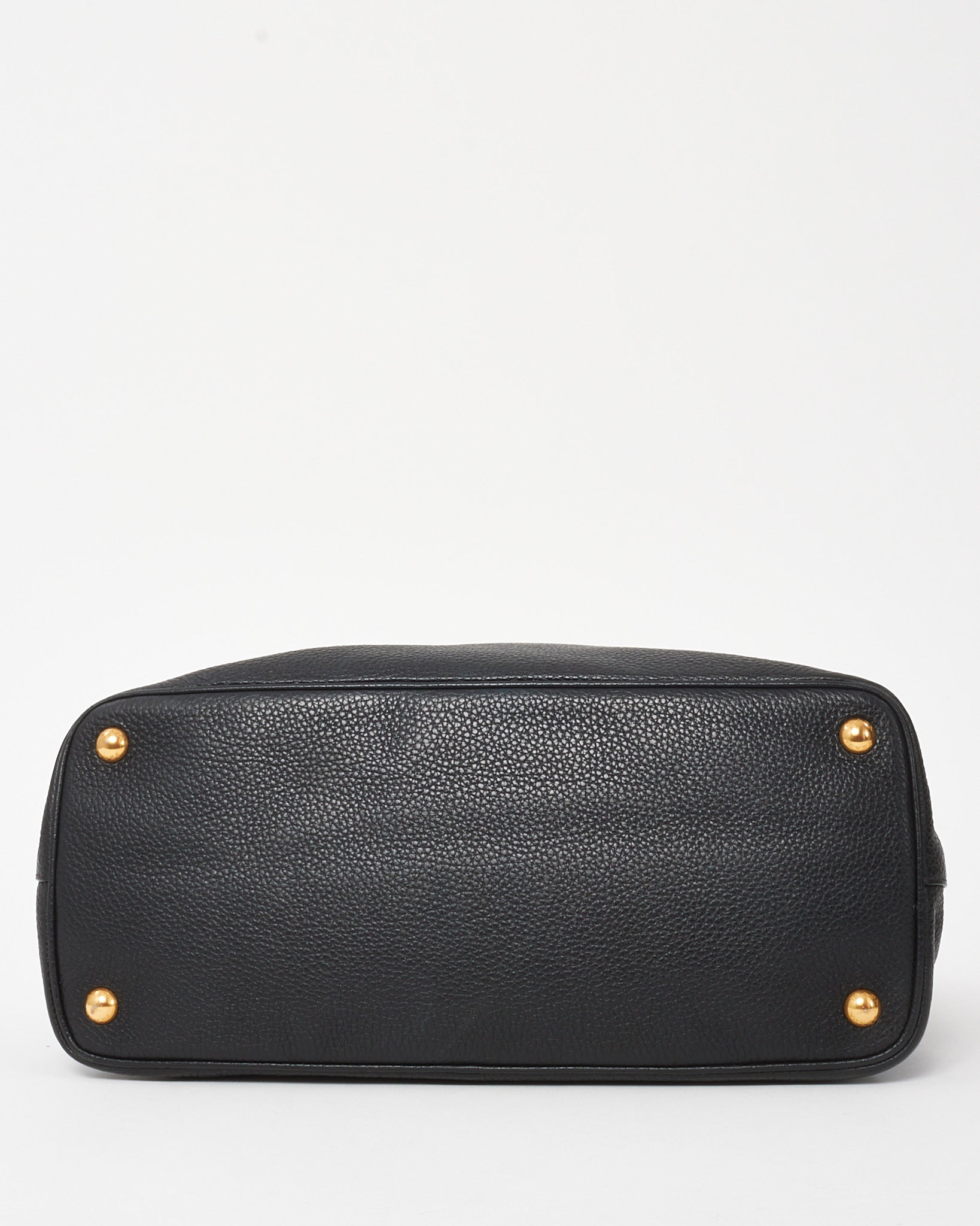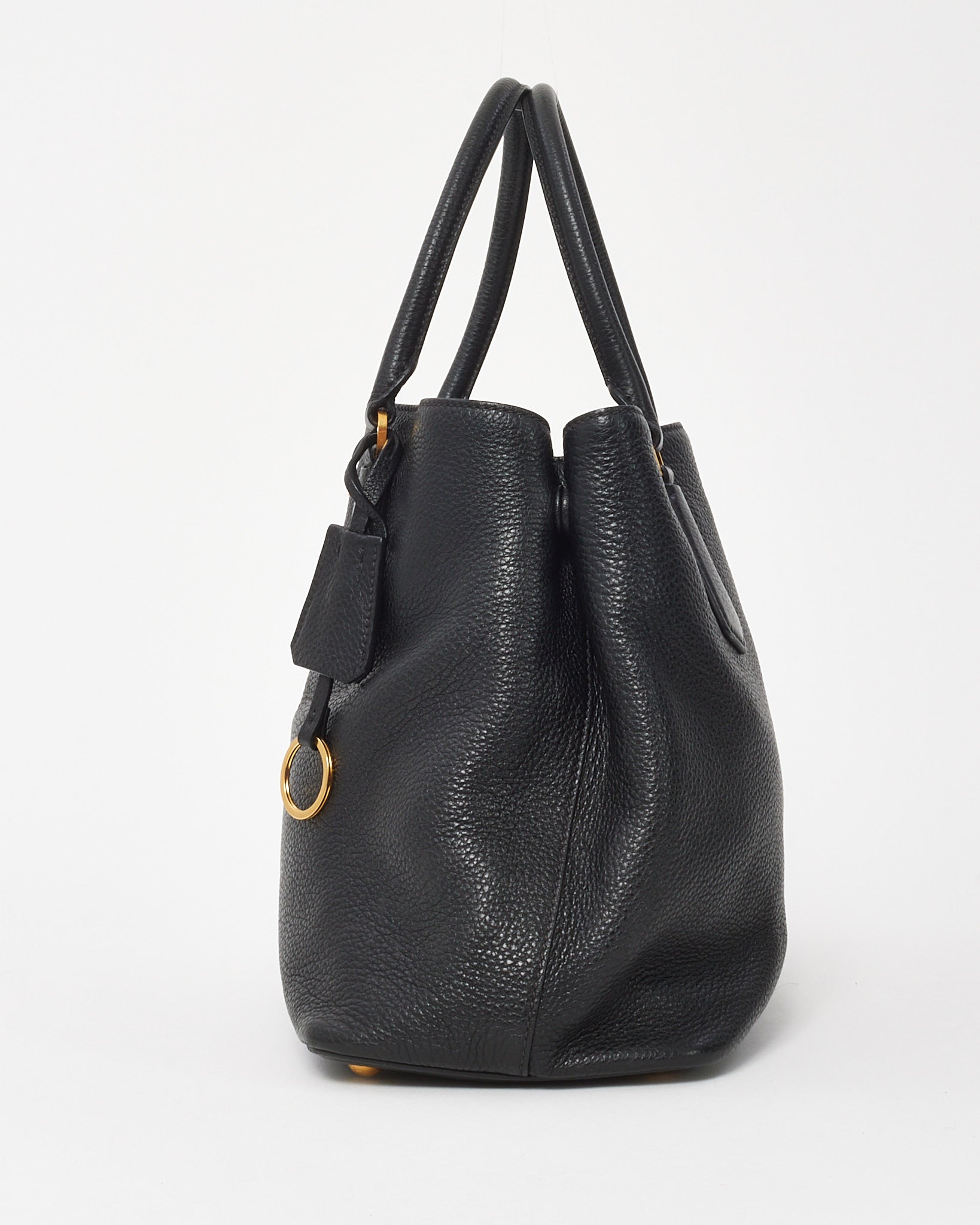 Black Vitello Leather Phenix Double 2Way Tote with Strap