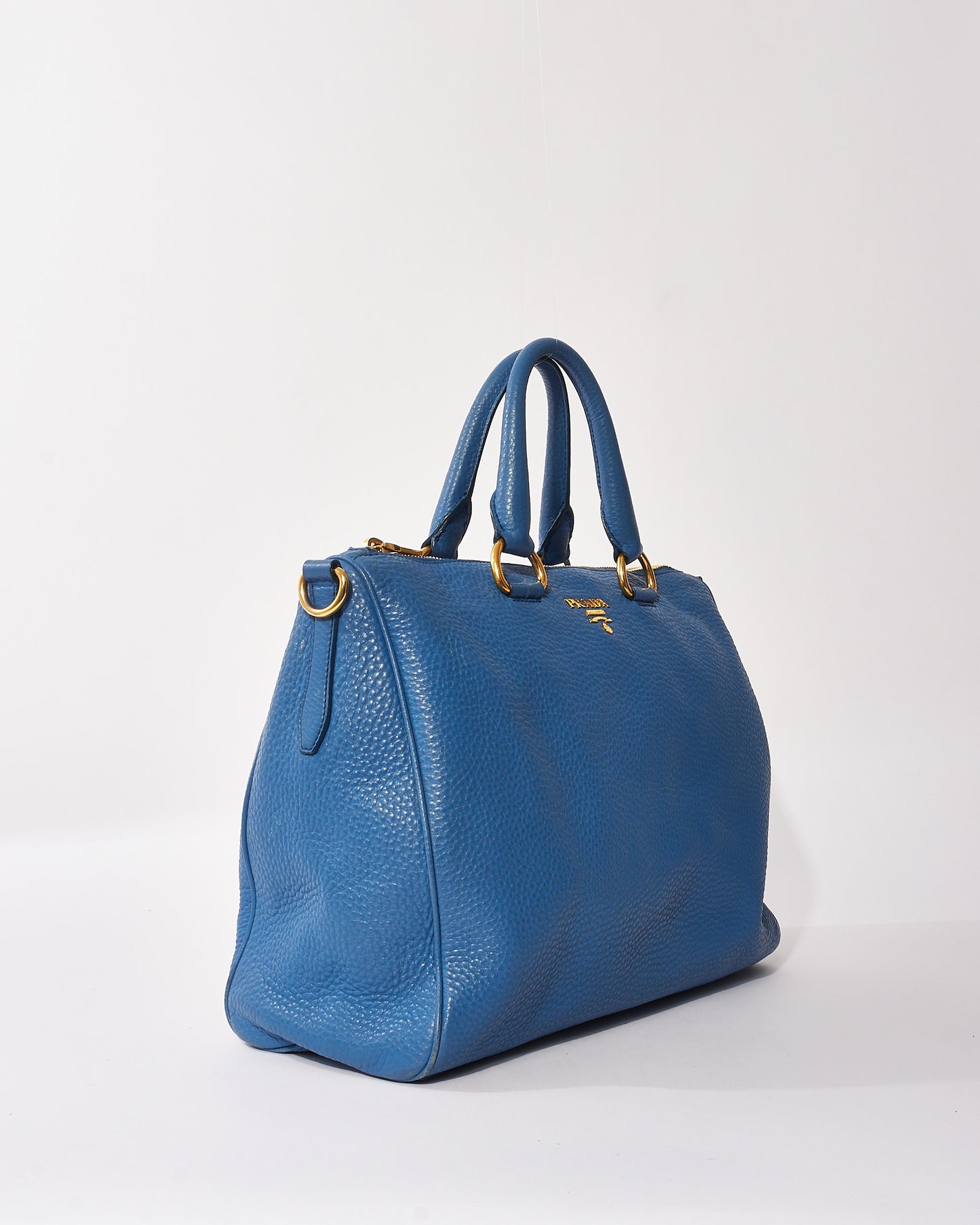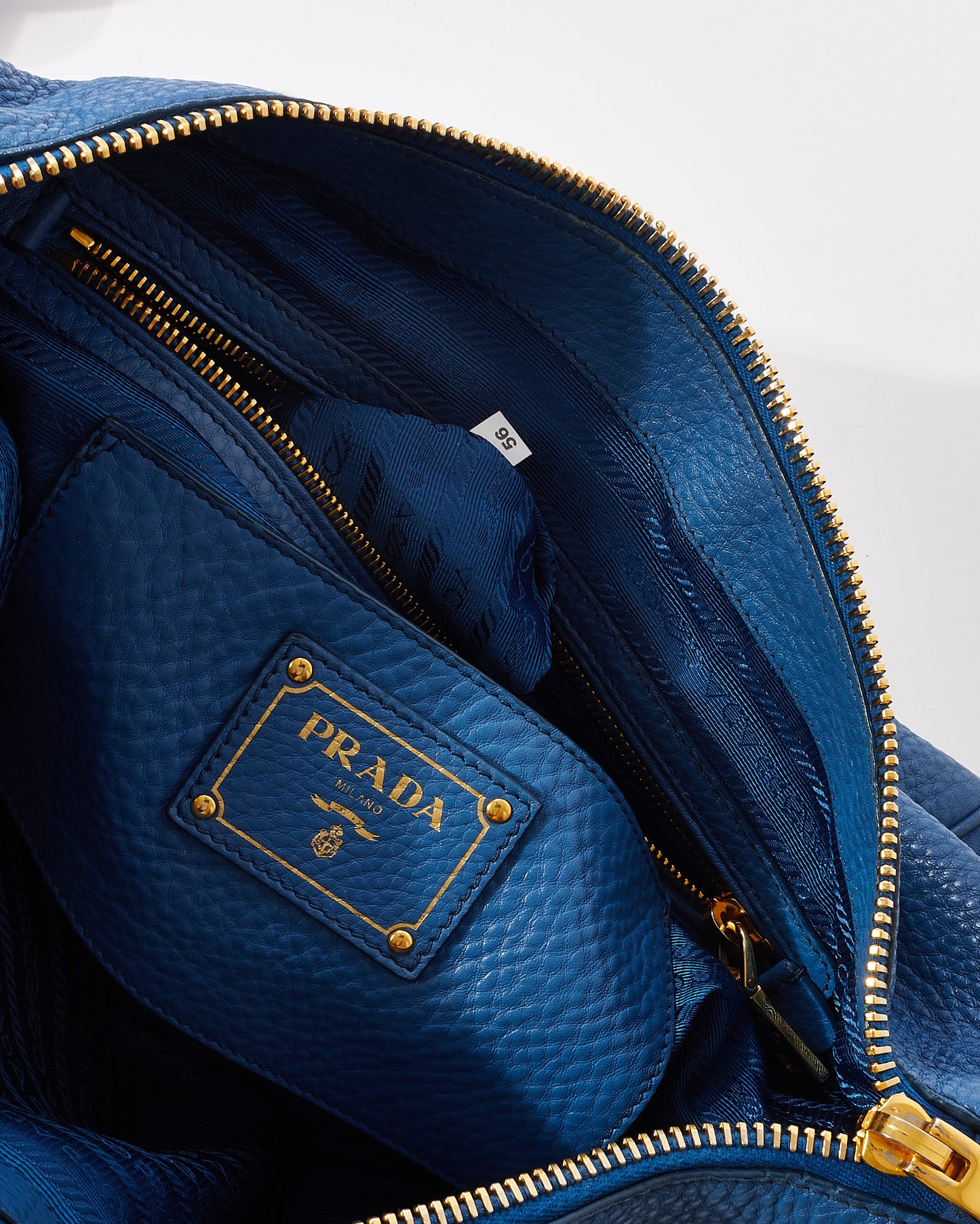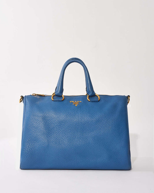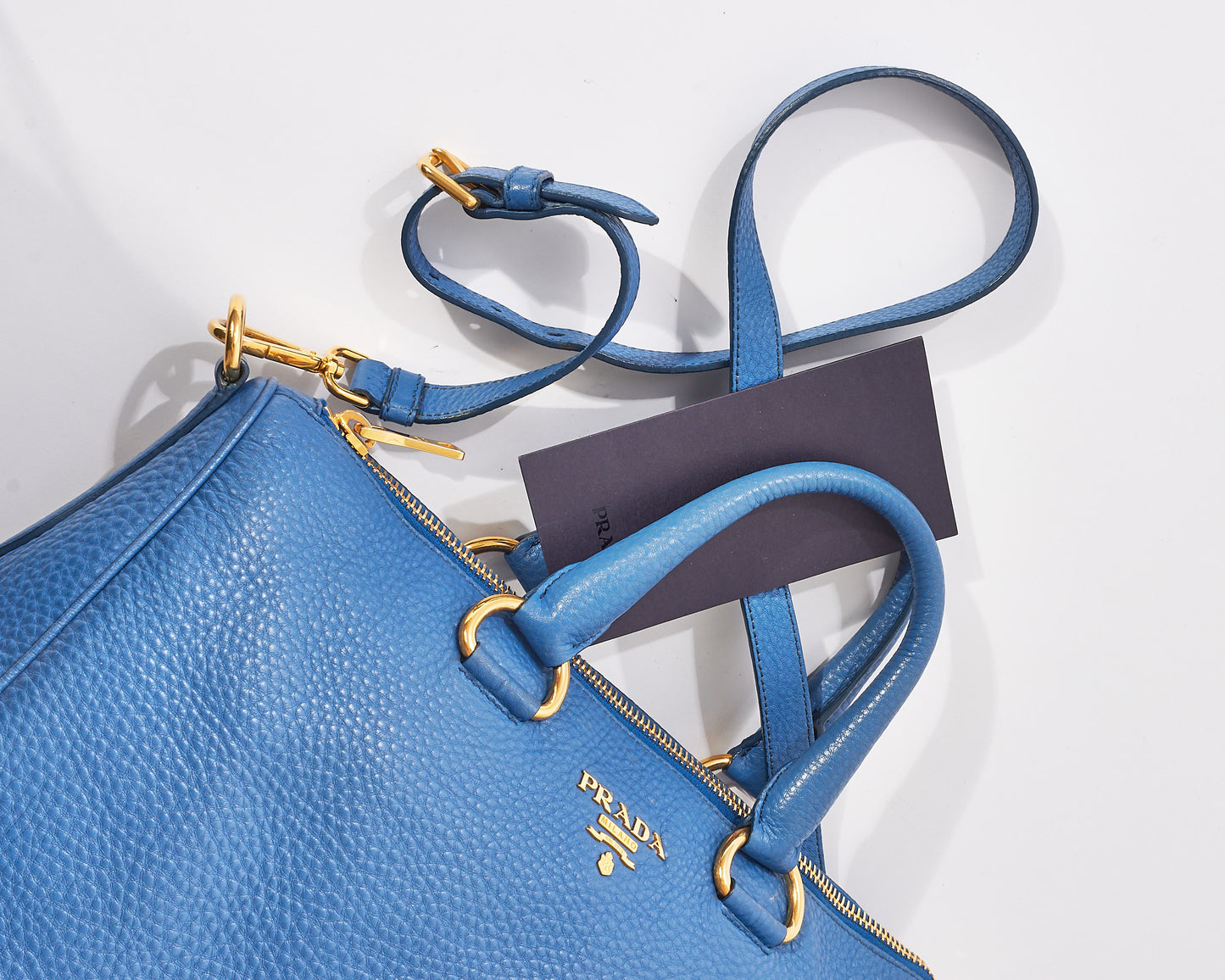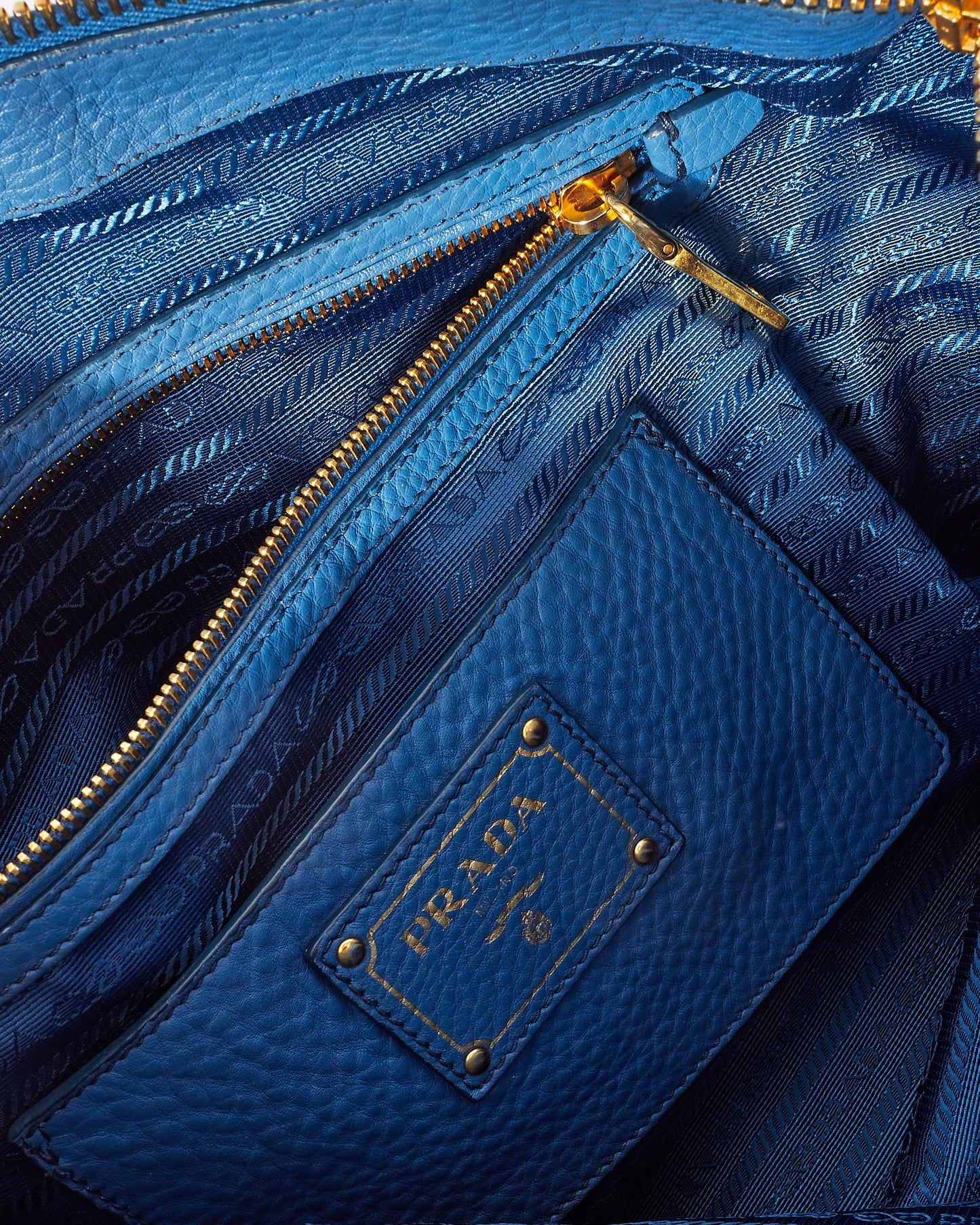 Explore Prada's exquisite collection of handbags, featuring this certified pre-owned Blue Leather Vitello Daino Shopper Tote. Embodying timeless elegance and modern sustainability, each piece, including favorites like this, is authenticated by Retyche. Discover sustainable luxury — shop our current treasures or find inspiration for your next coveted find.