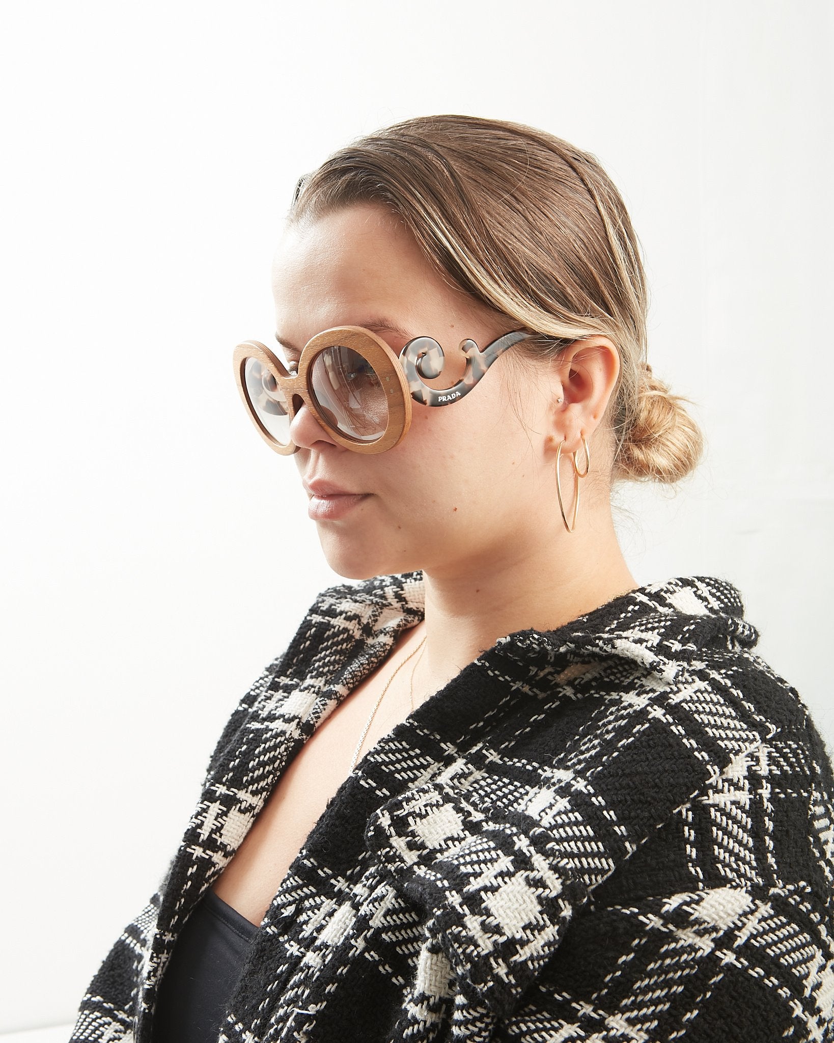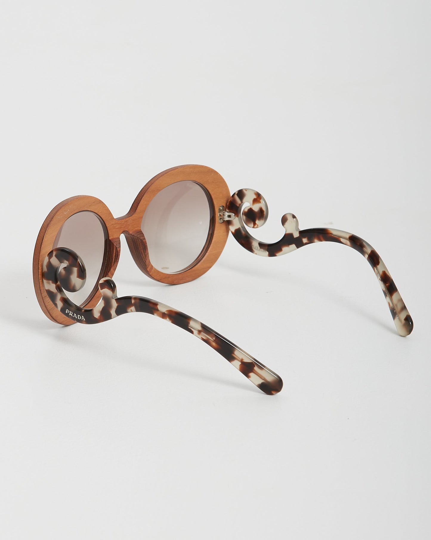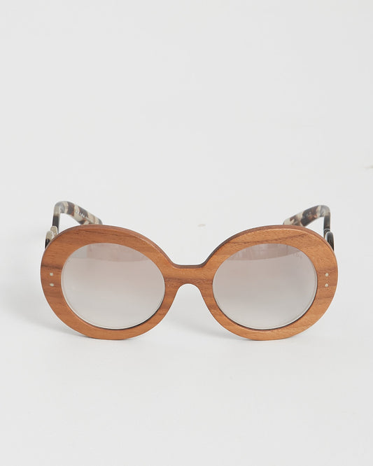 Brown Wooden SPR27R Baroque Round Sunglasses