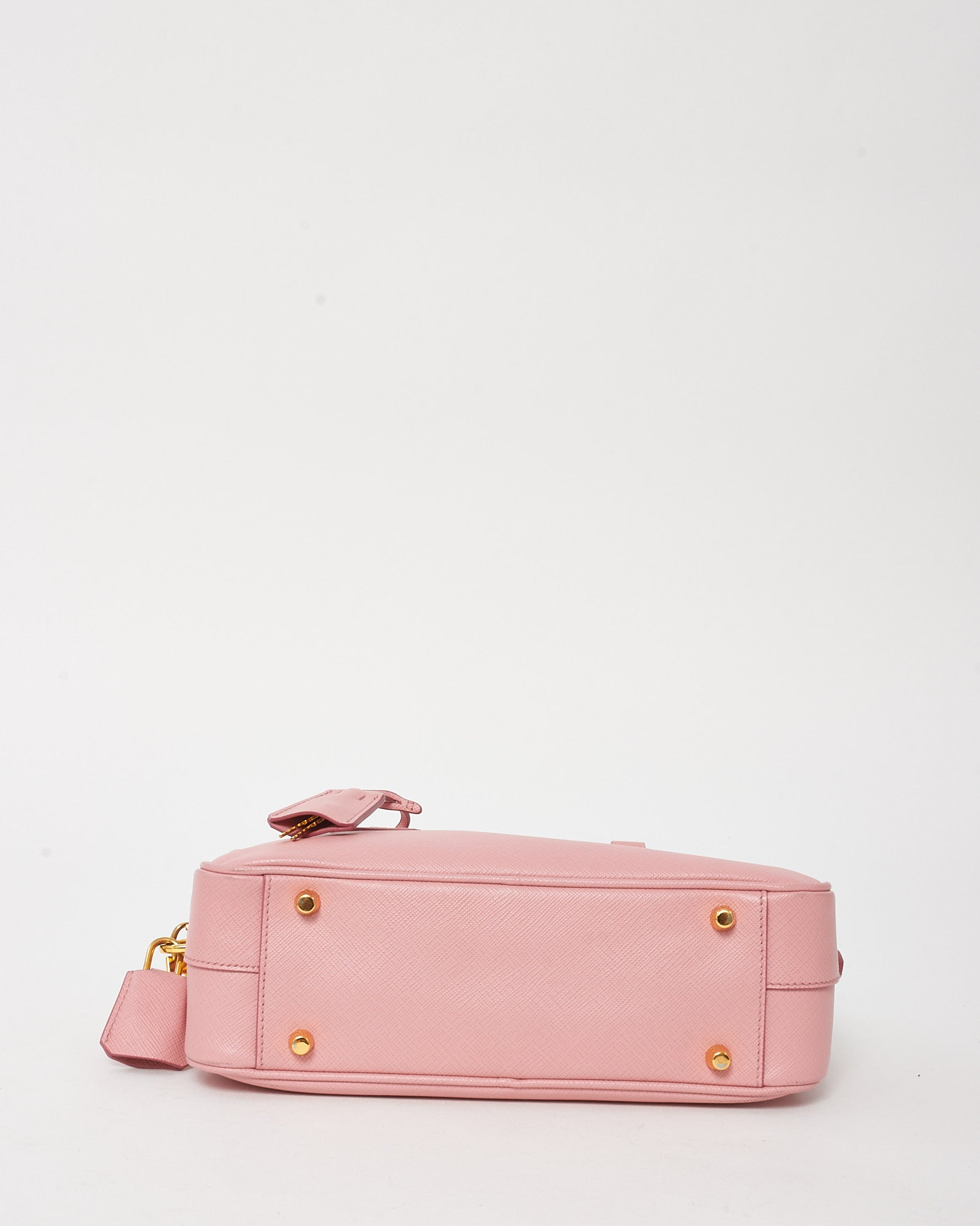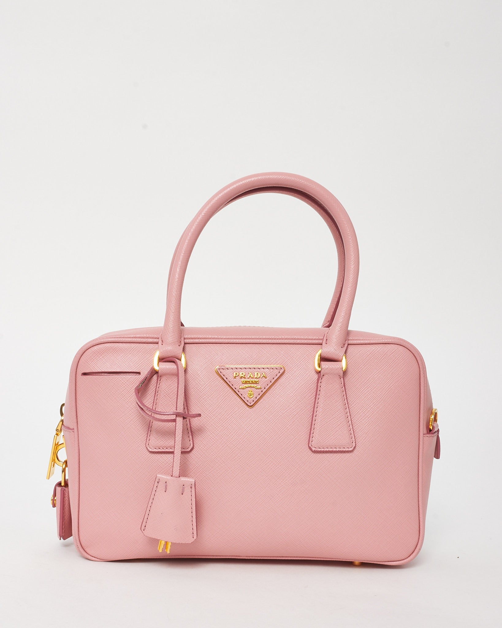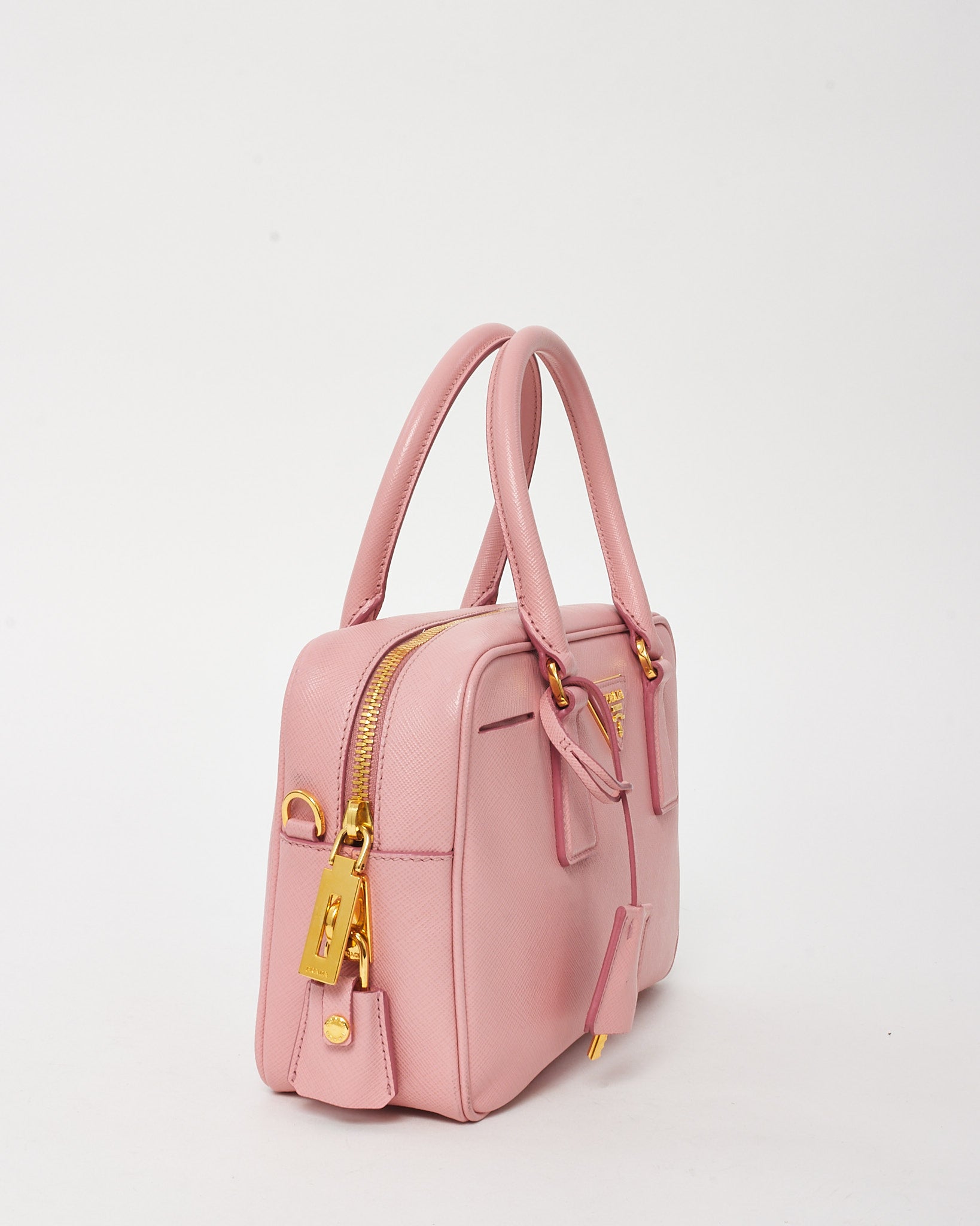 Pink Saffiano Leather Bauletto Convertible Satchel Bag