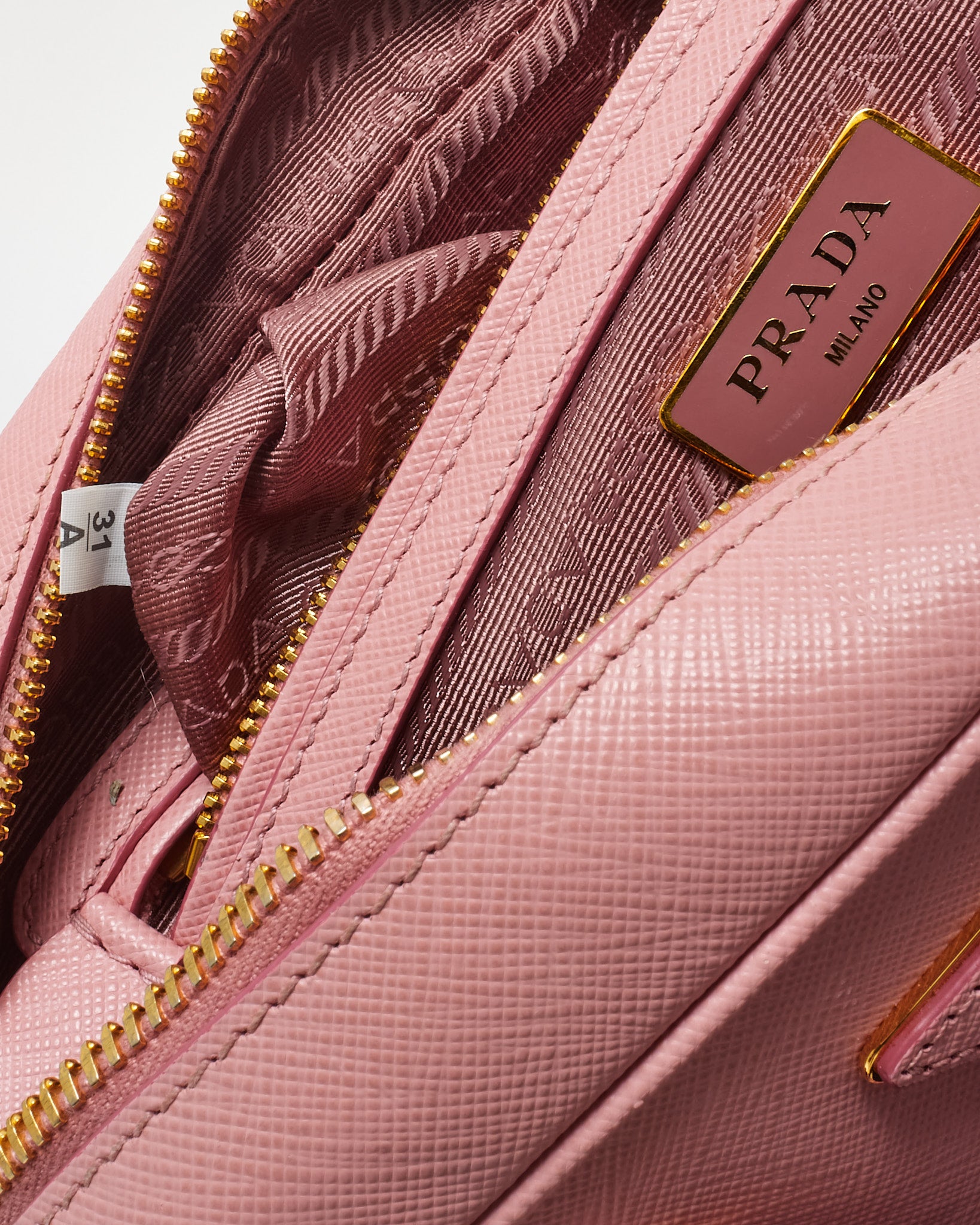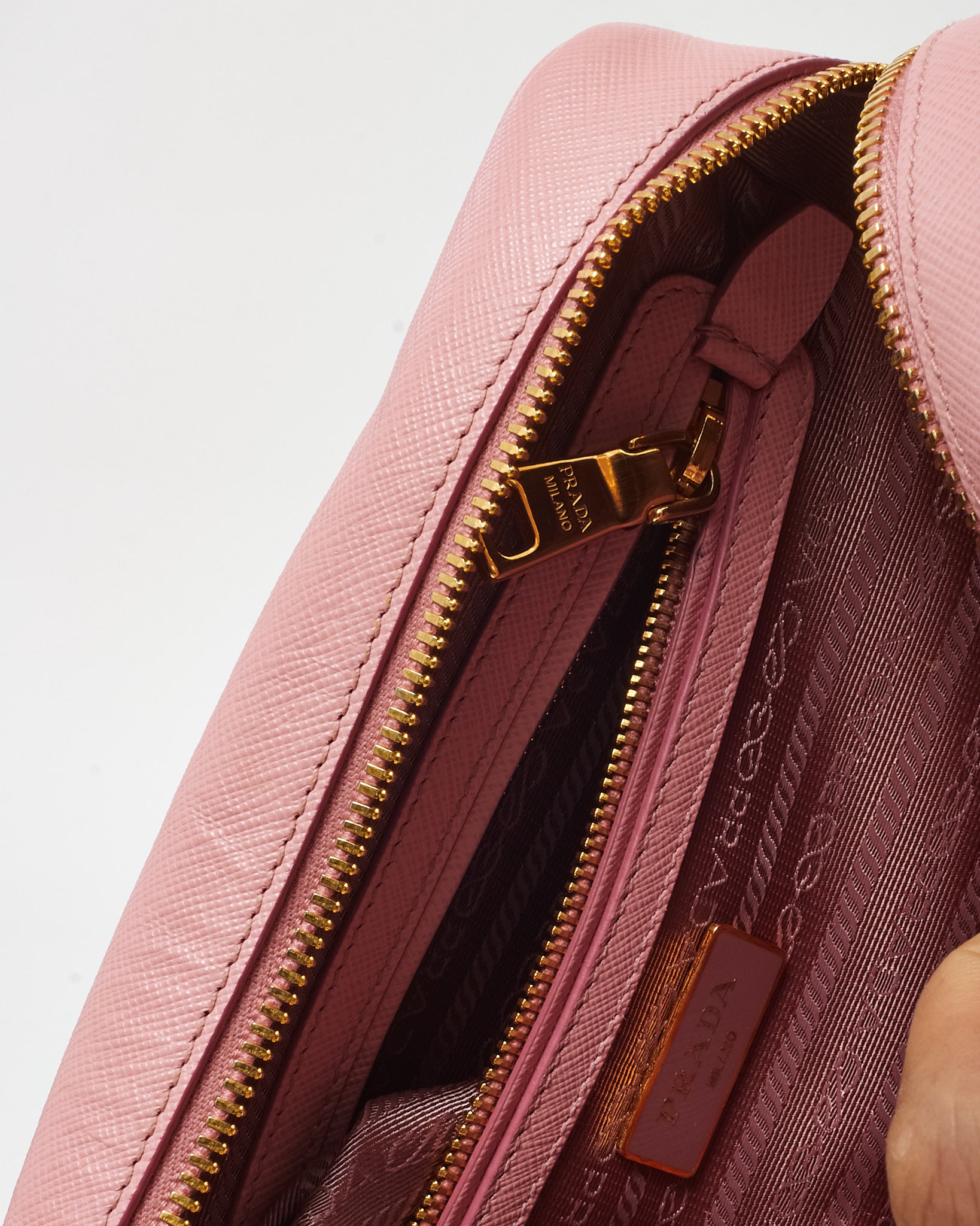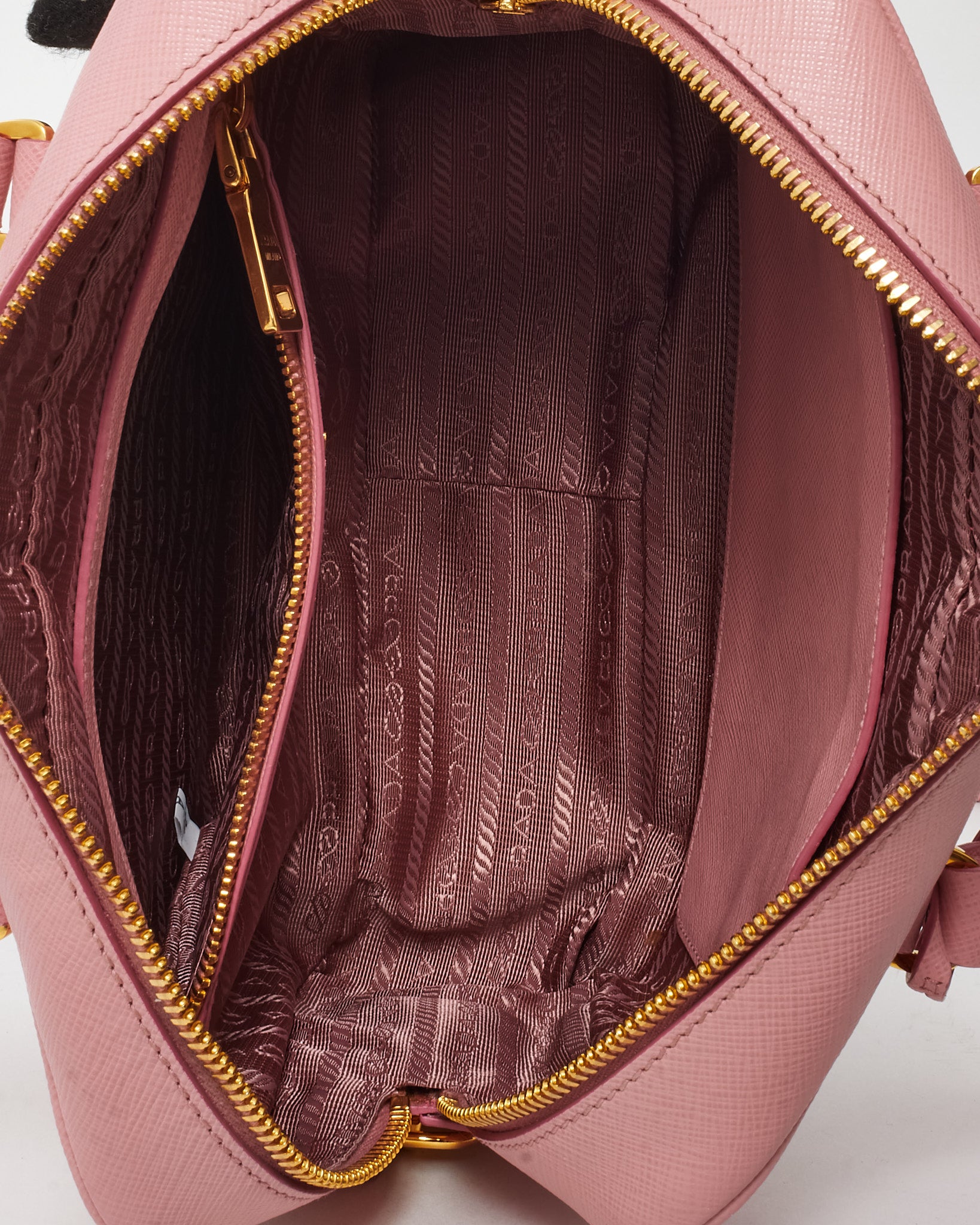 Pink Saffiano Leather Bauletto Convertible Satchel Bag