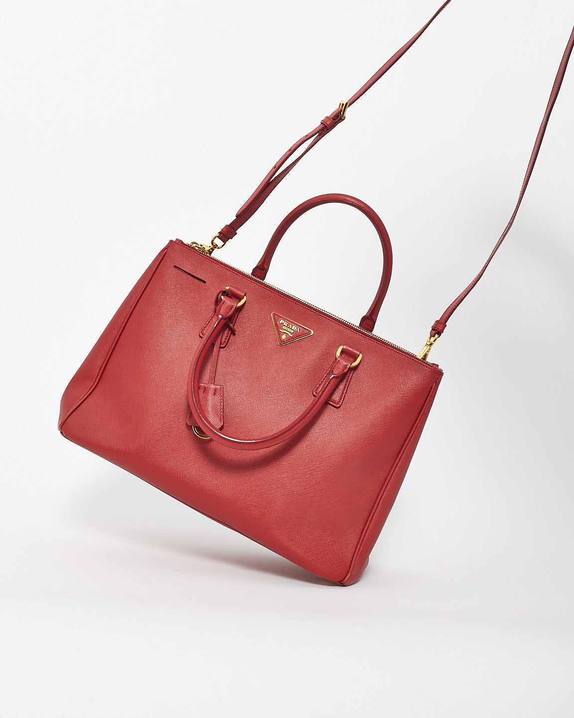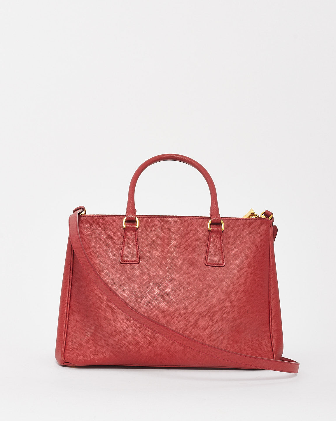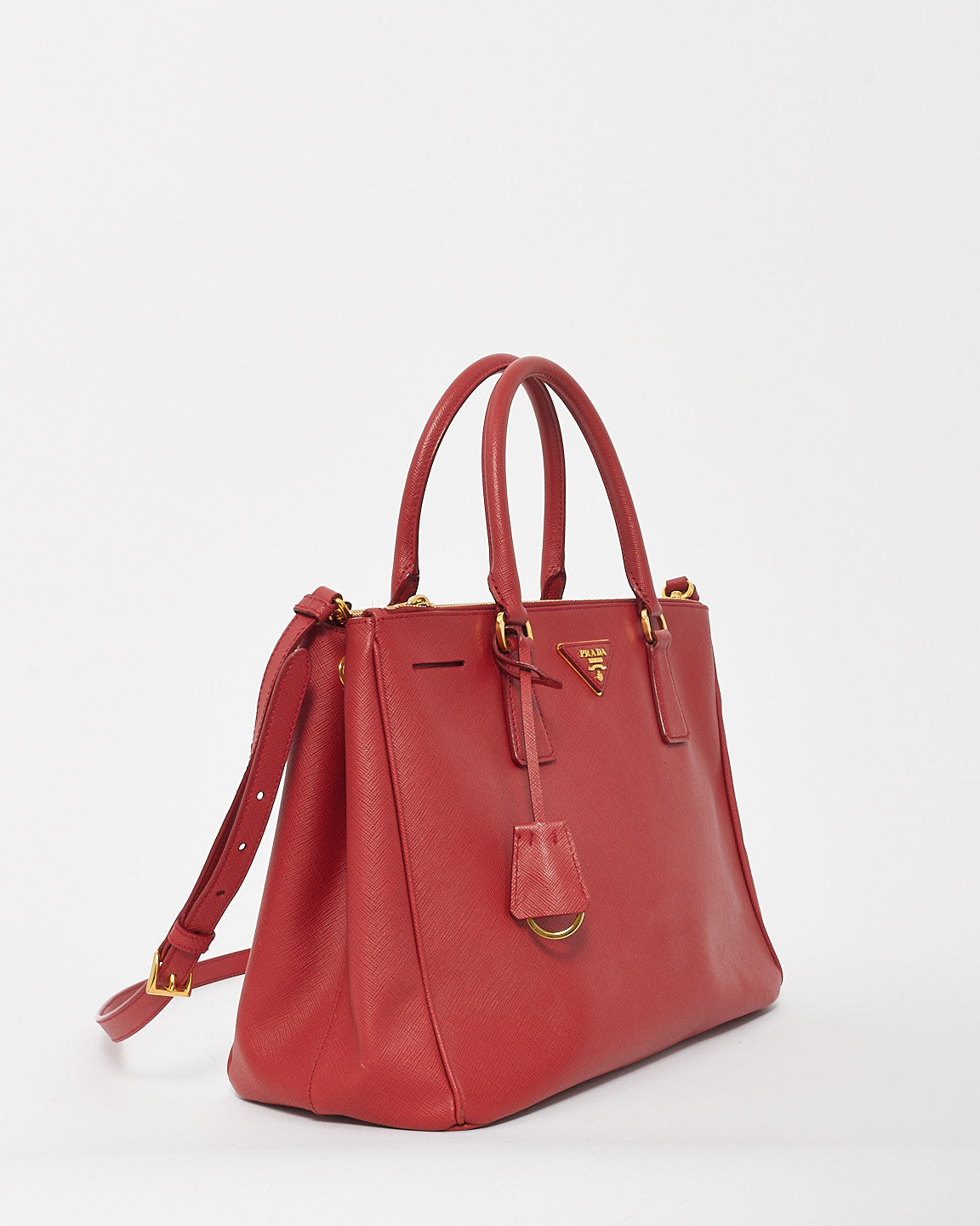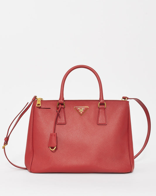 Red Saffiano Leather Large Galleria Double Zip Tote Bag