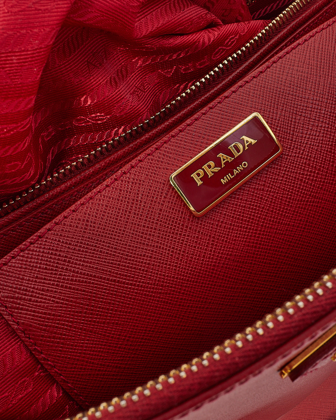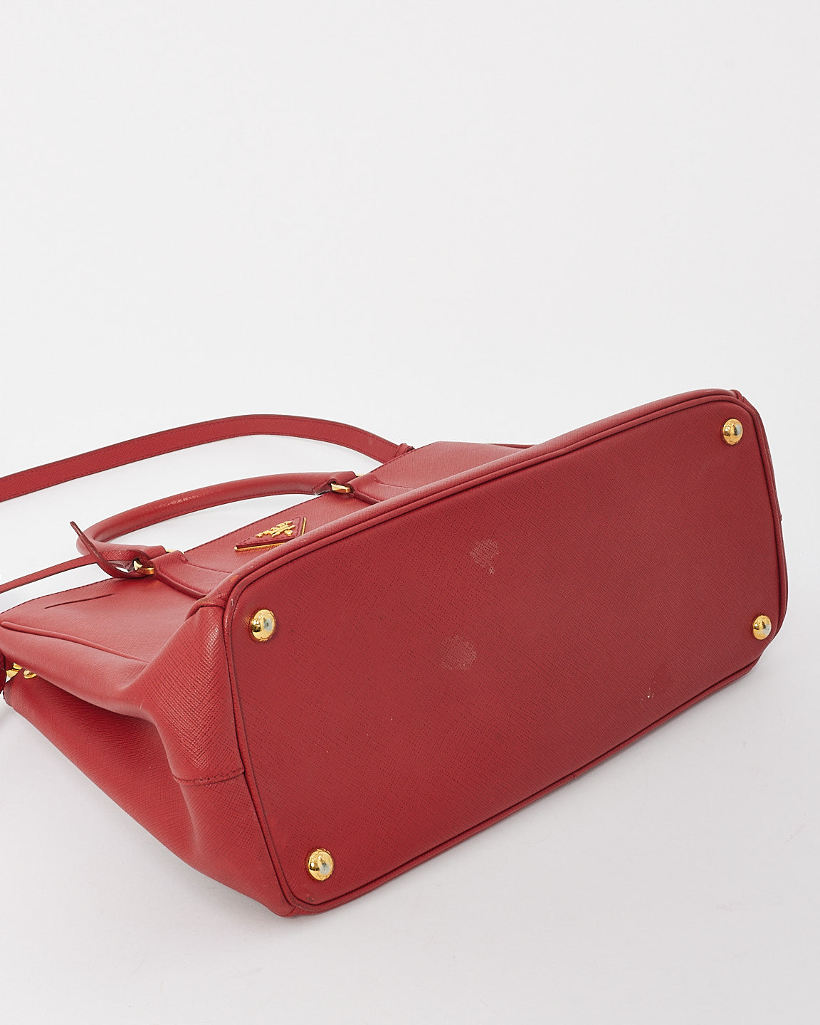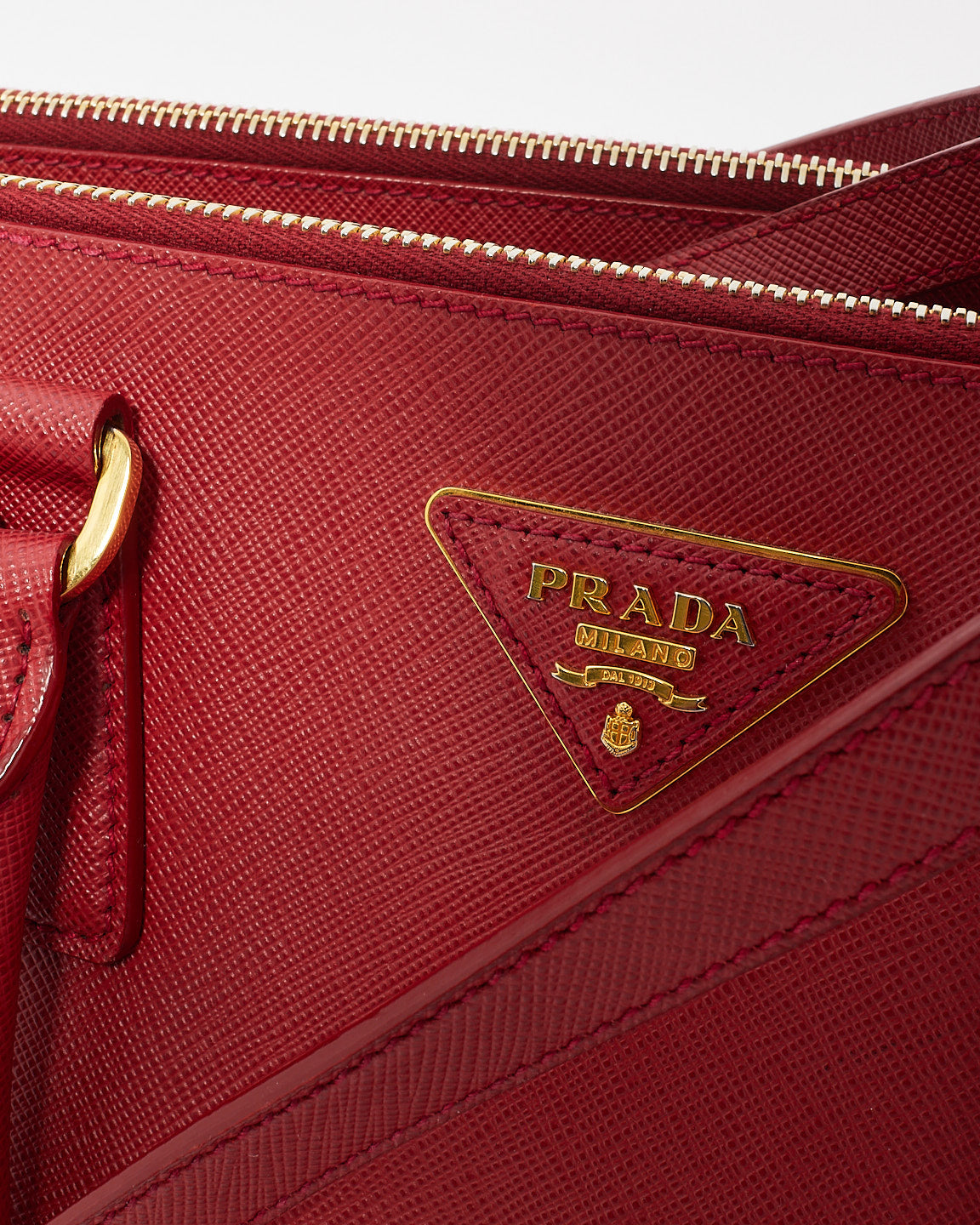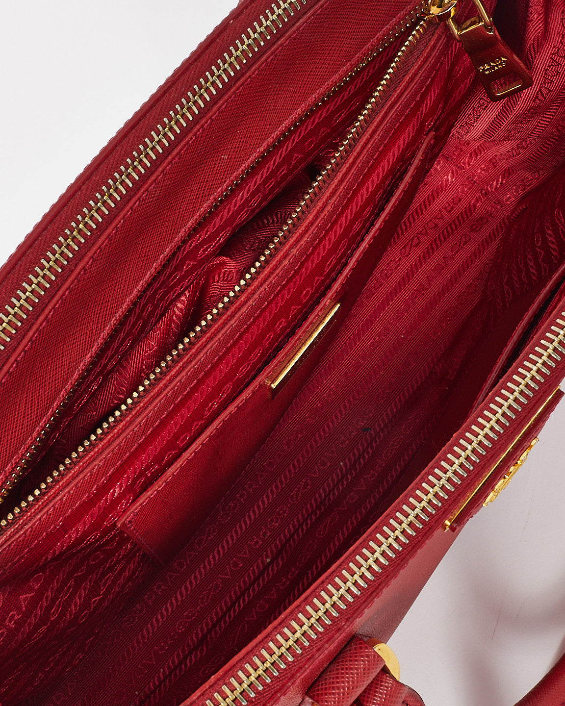 Red Saffiano Leather Large Galleria Double Zip Tote Bag