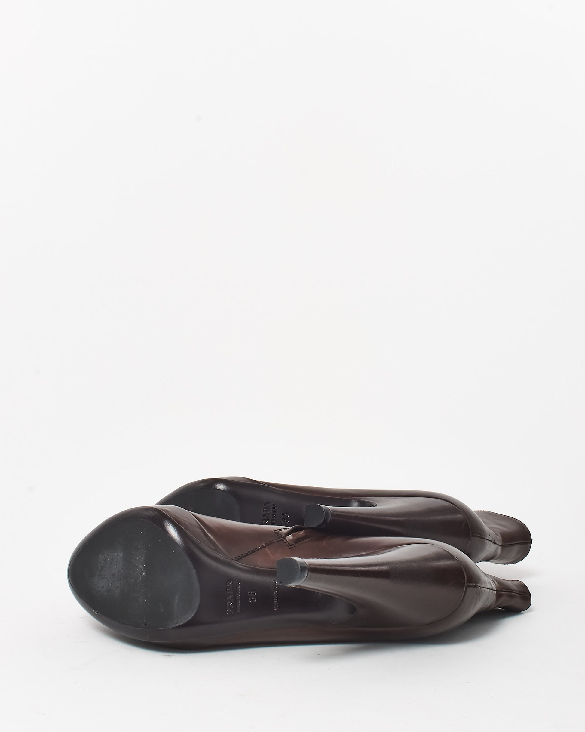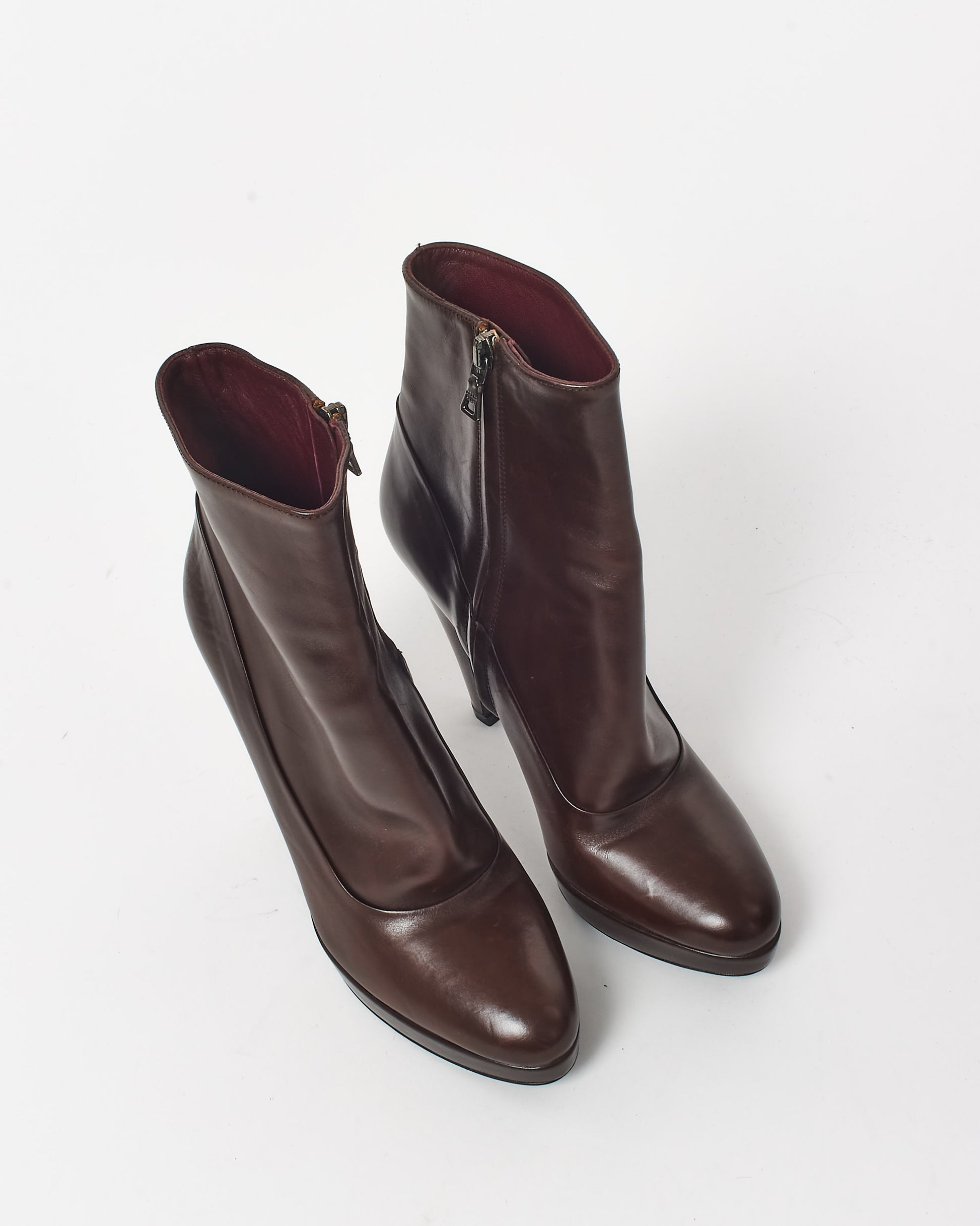Vintage Brown Leather Stiletto Platform Boots - 36