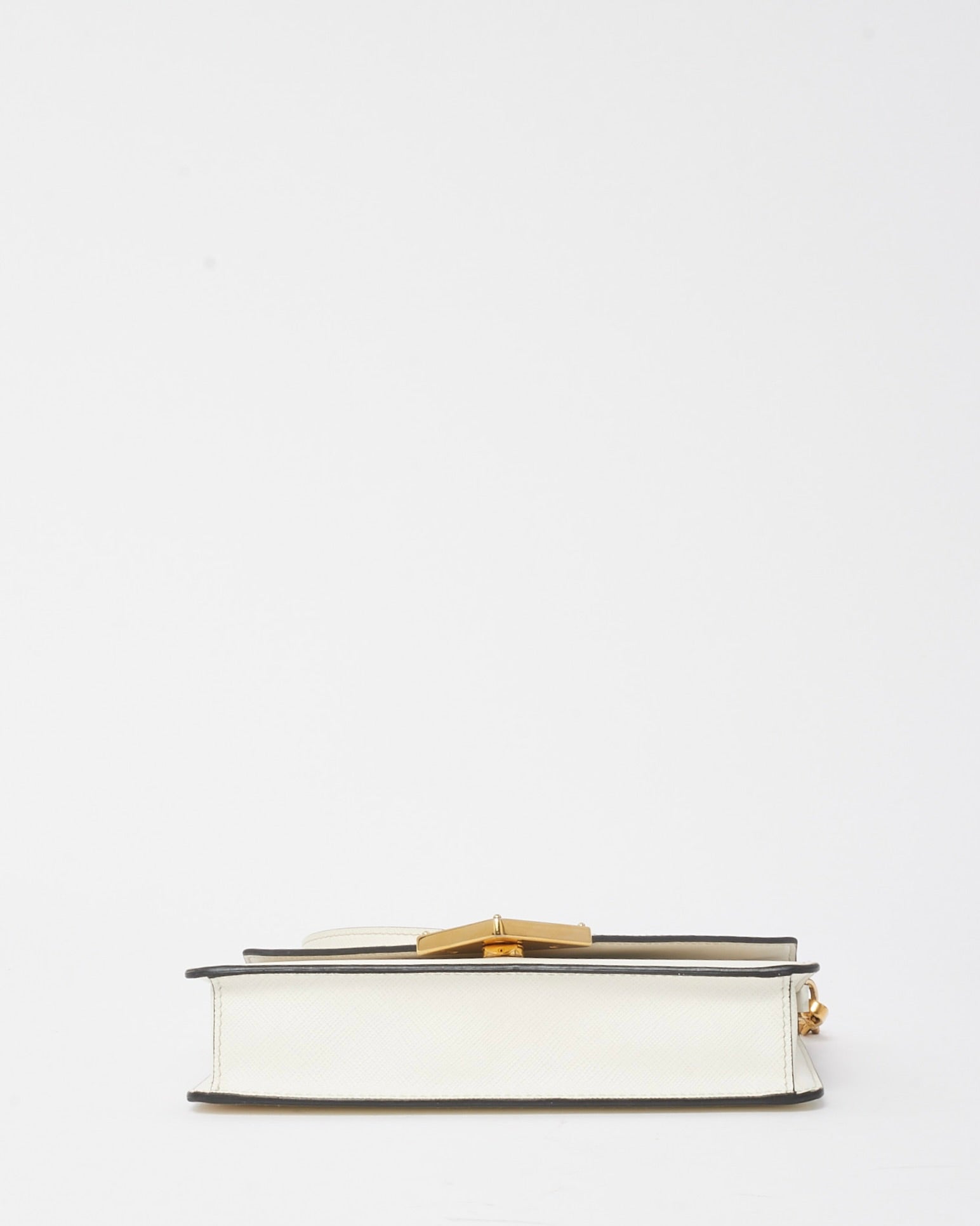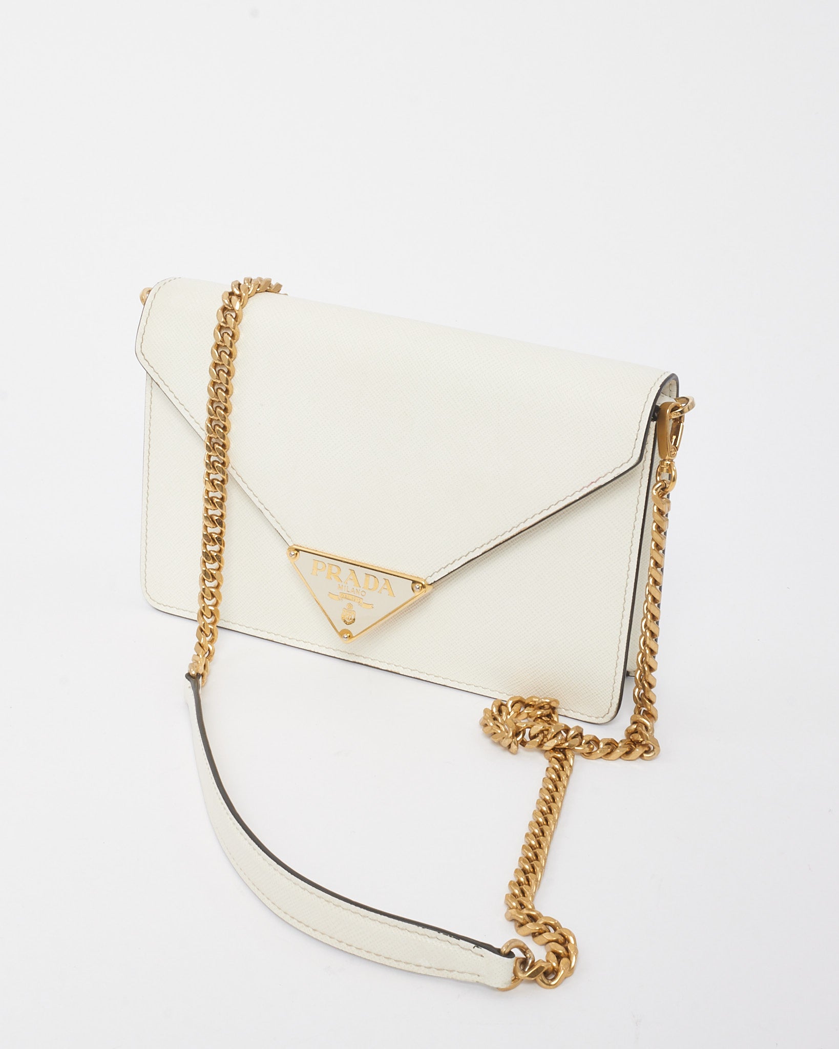 White Saffiano Leather Envelope Flap Logo Chain Shoulder Bag