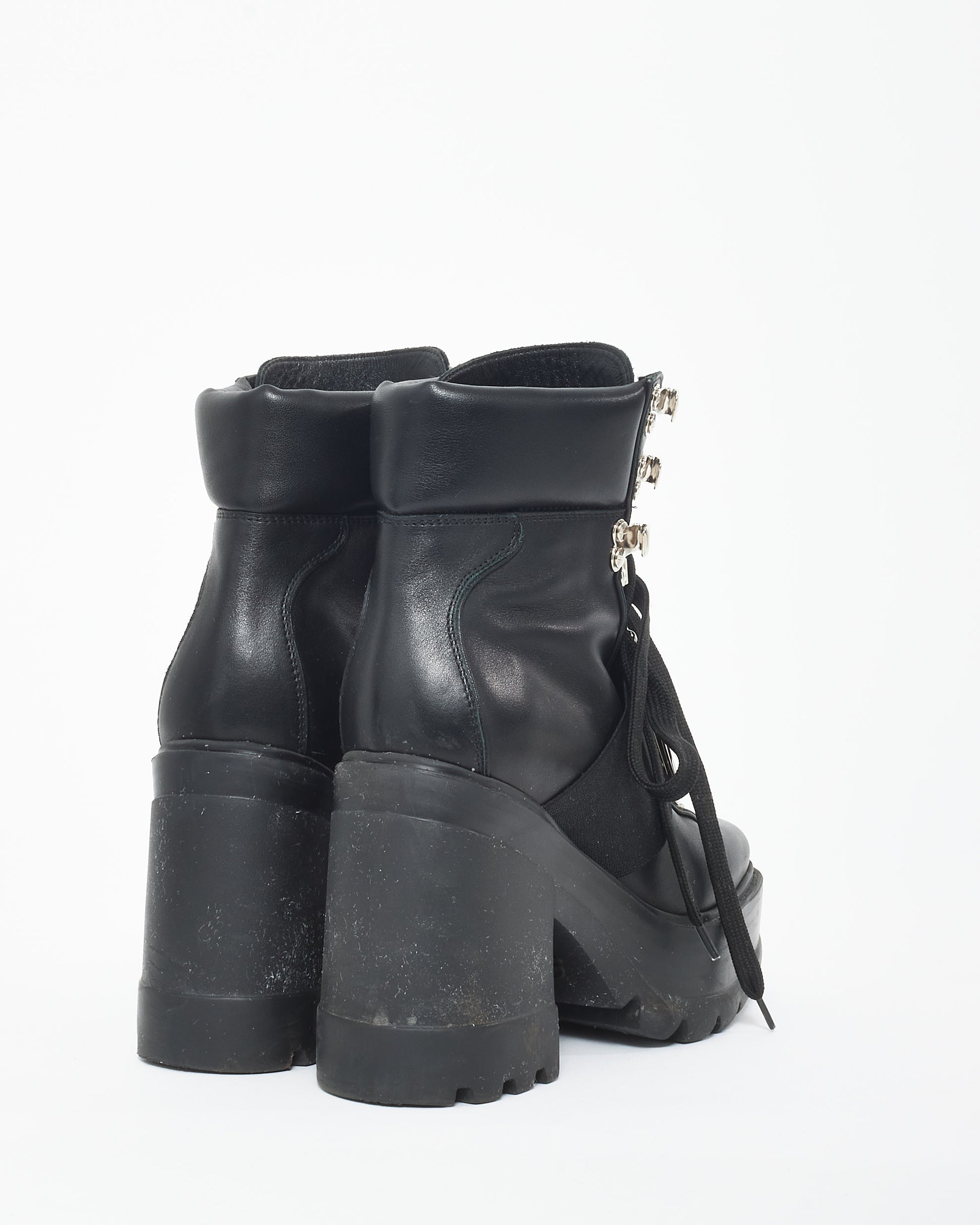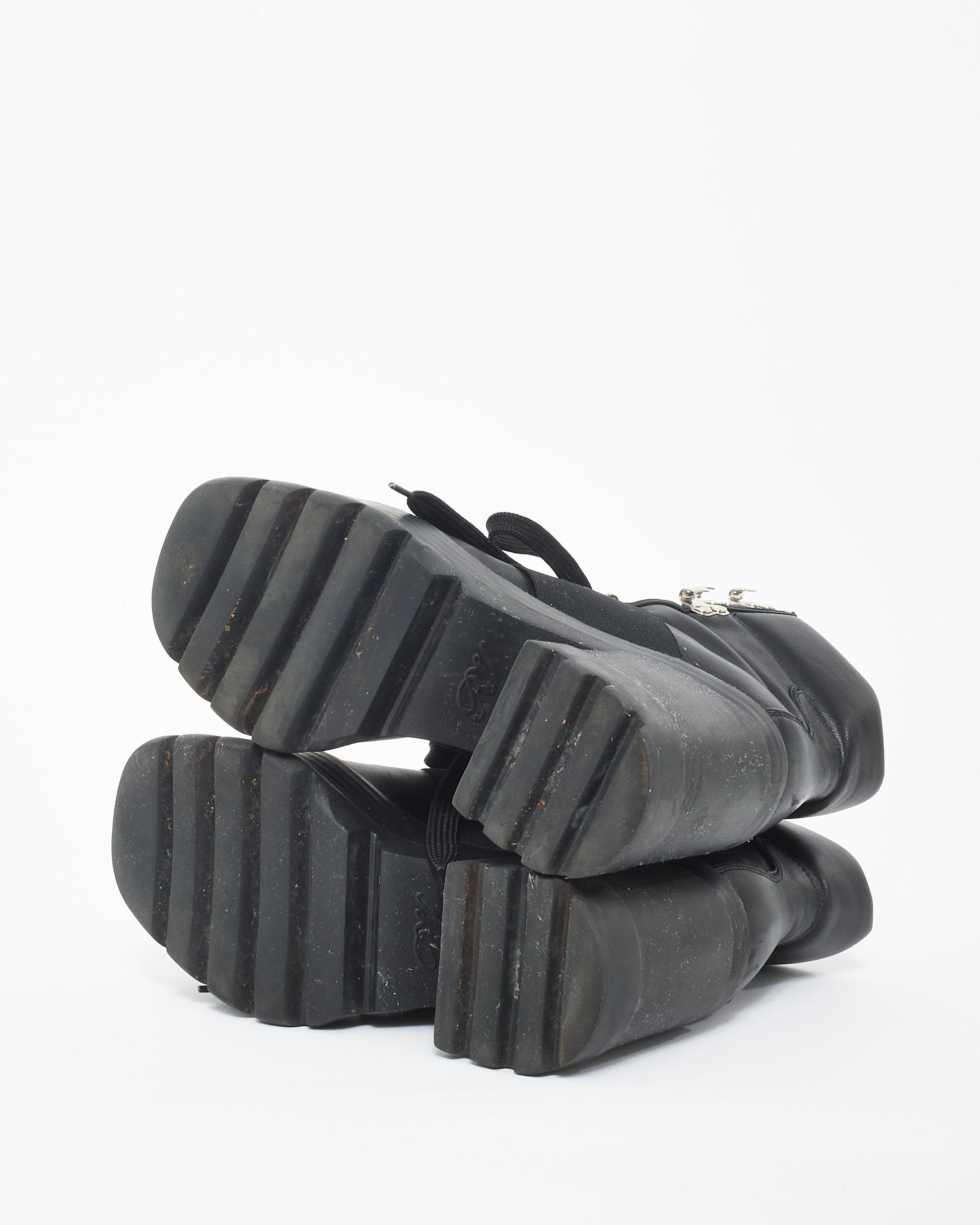 Step into style and comfort with these 100% authentic pre-owned Roger Vivier Black Leather Viv Utility Hiking Boots. Crafted from premium black leather, these boots feature silver hardware, lace up closure - the signature Vivier buckle detail for a touch of luxury, blending practicality with a sophisticated edge. Designed with a sturdy sole and comfortable fit. Shop authentic pre-owned Roger Vivier footwear at Retyche and elevate your boot collection with this timeless and versatile pair/