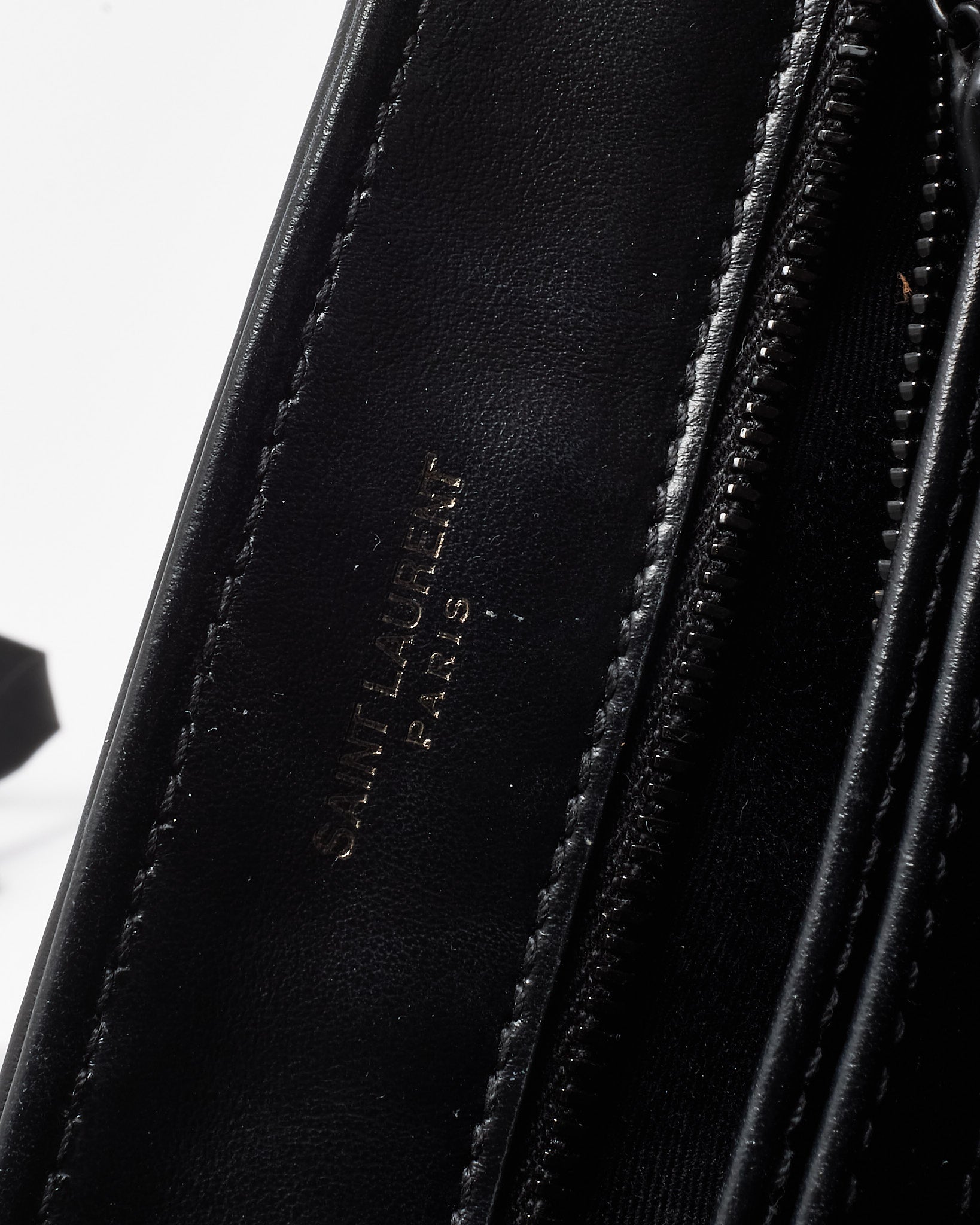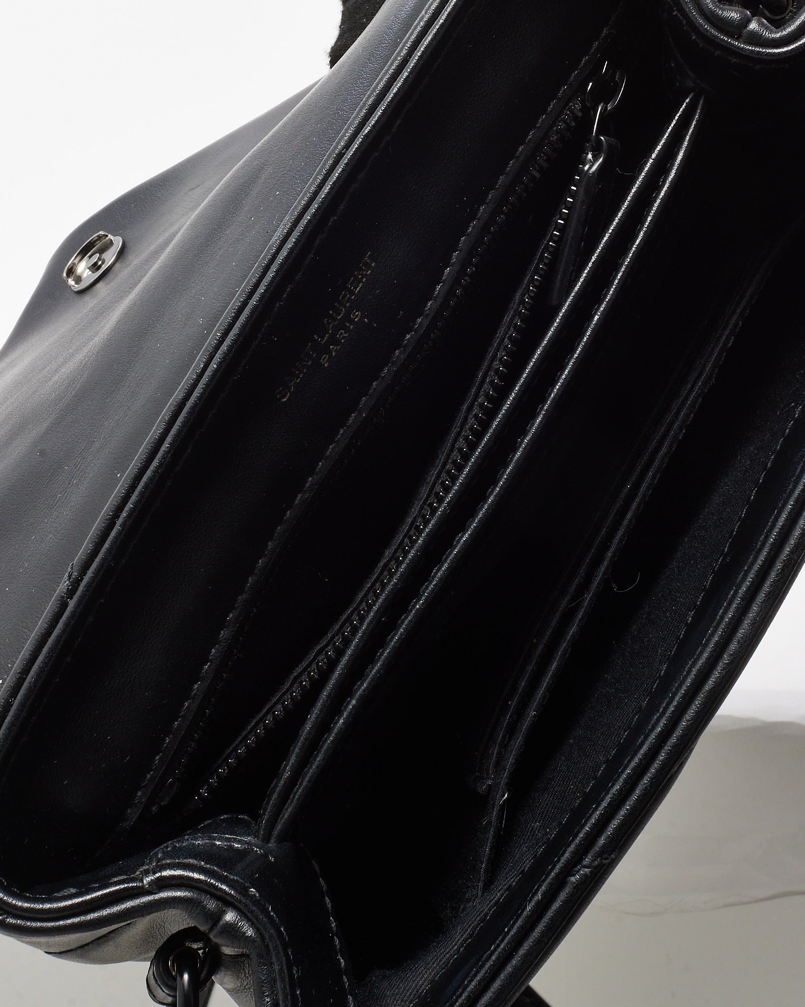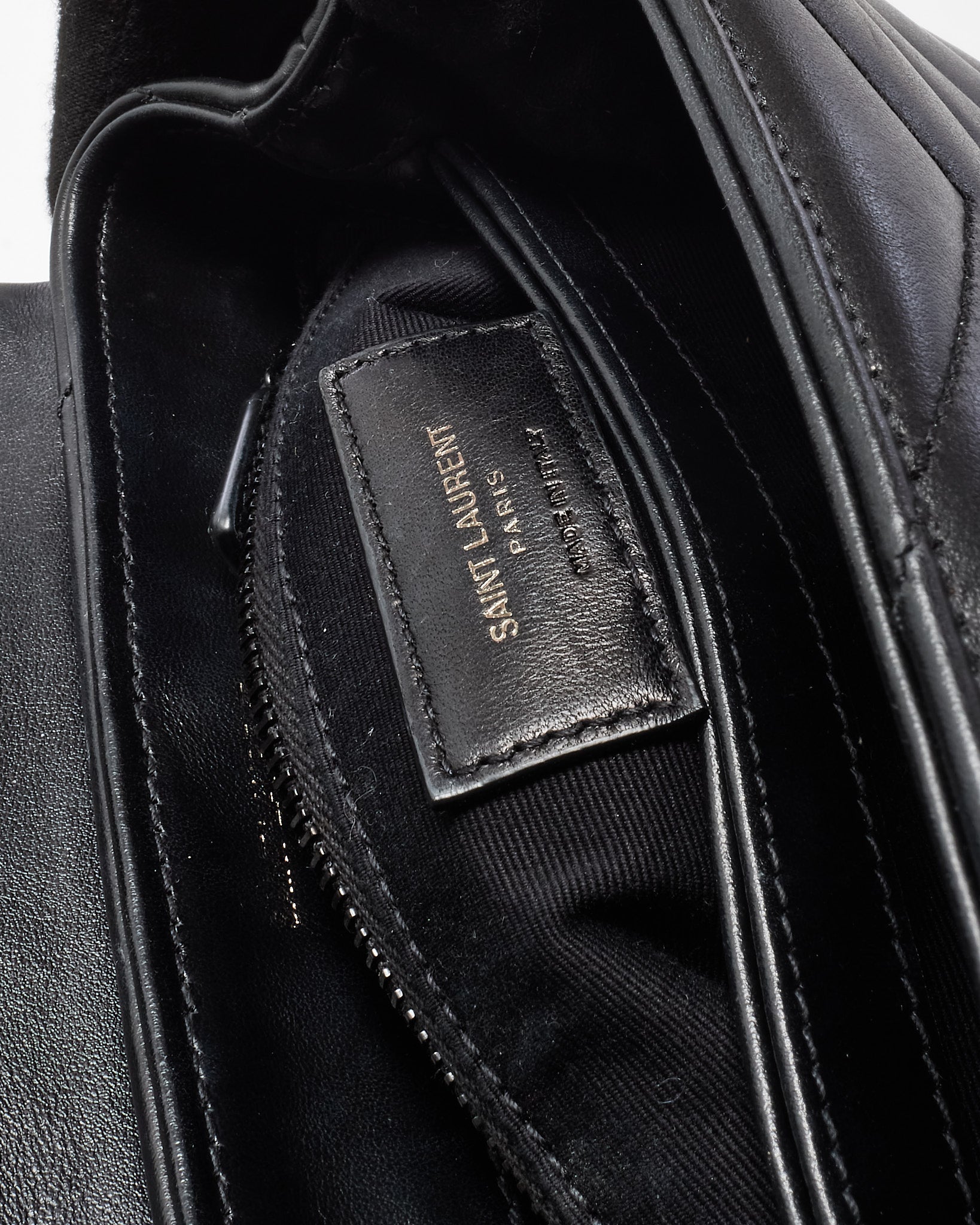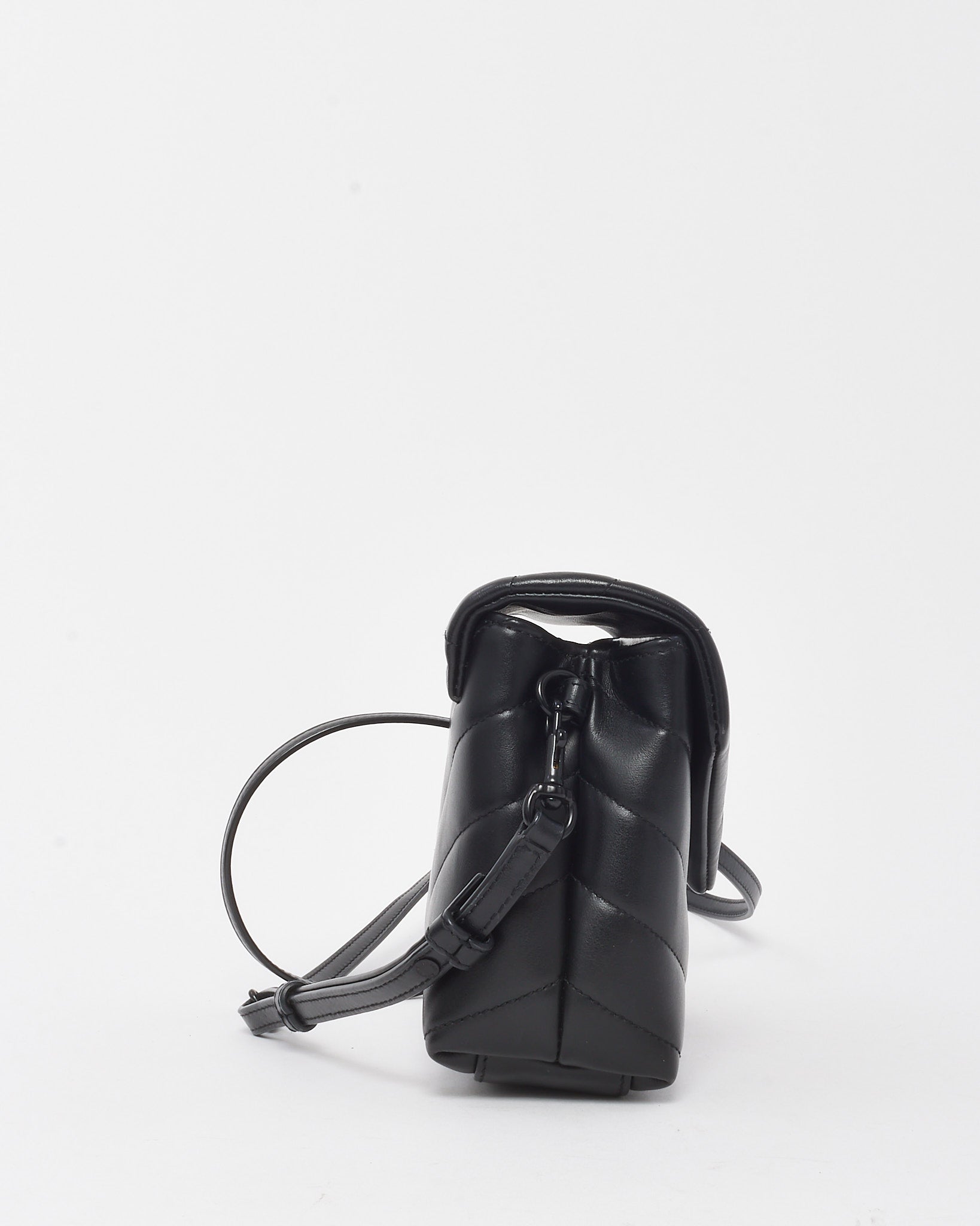 Elevate your everyday essentials with this pre-loved authentic Saint Laurent Black Chevron Quilted Leather Toy Loulou Crossbody Bag BHW. Crafted in supple black calfskin leather, the compact silhouette is adorned with signature chevron quilting and finished with black-tone hardware for a sleek, monochromatic look. The iconic YSL monogram punctuates the front flap, while the adjustable leather strap offers versatile styling options. Designed to carry your on-the-go necessities in timeless style, this mini bag merges elegance and practicality for any occasion.