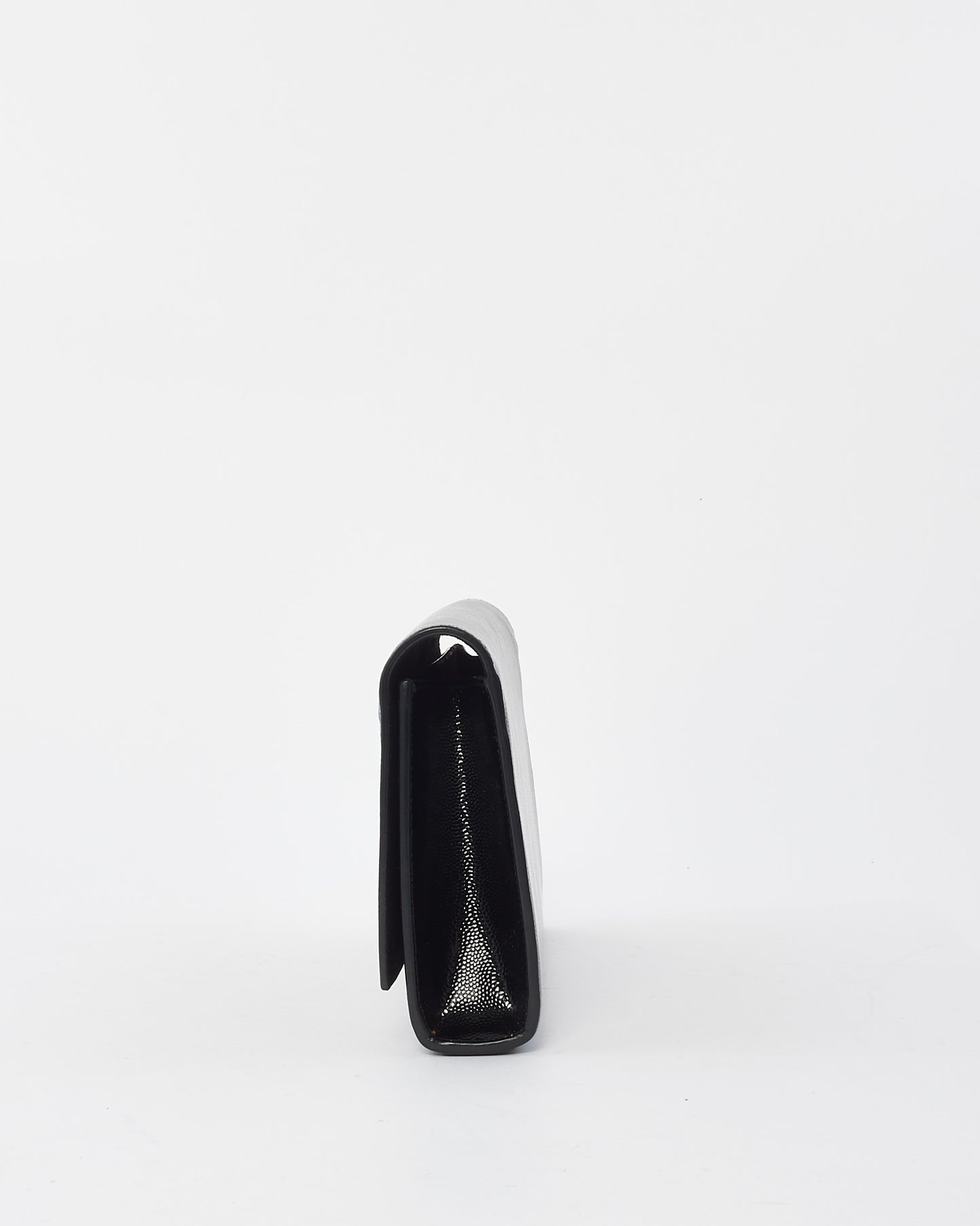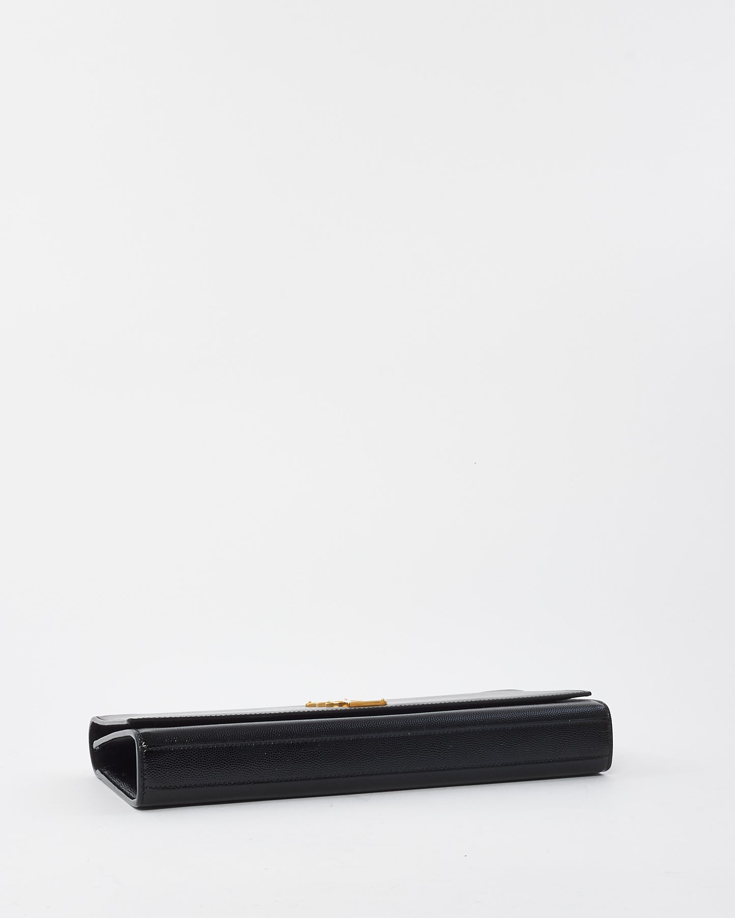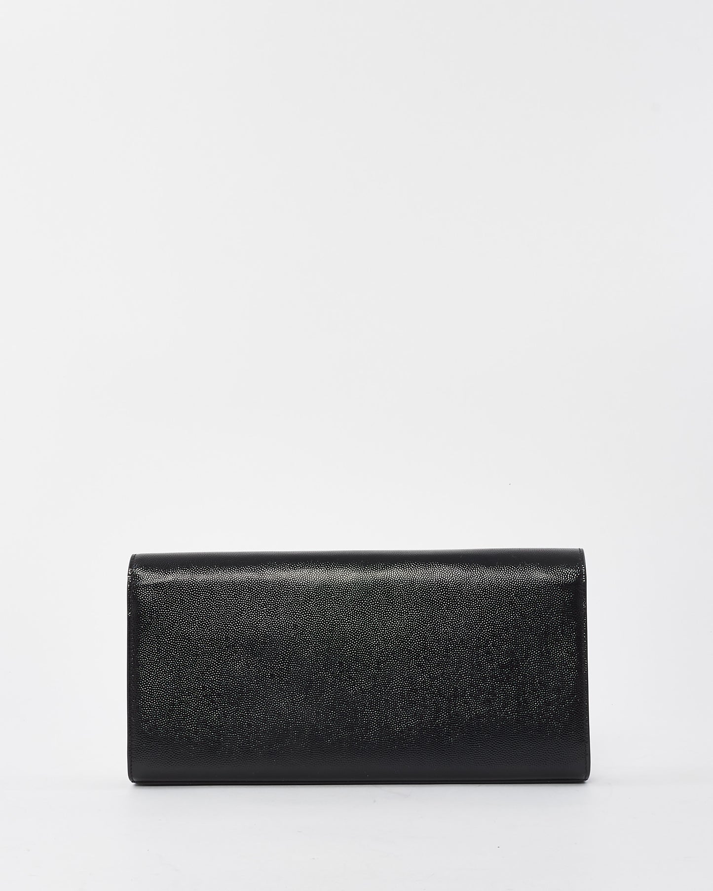 Black Grained Leather YSL Logo Embossed Clutch