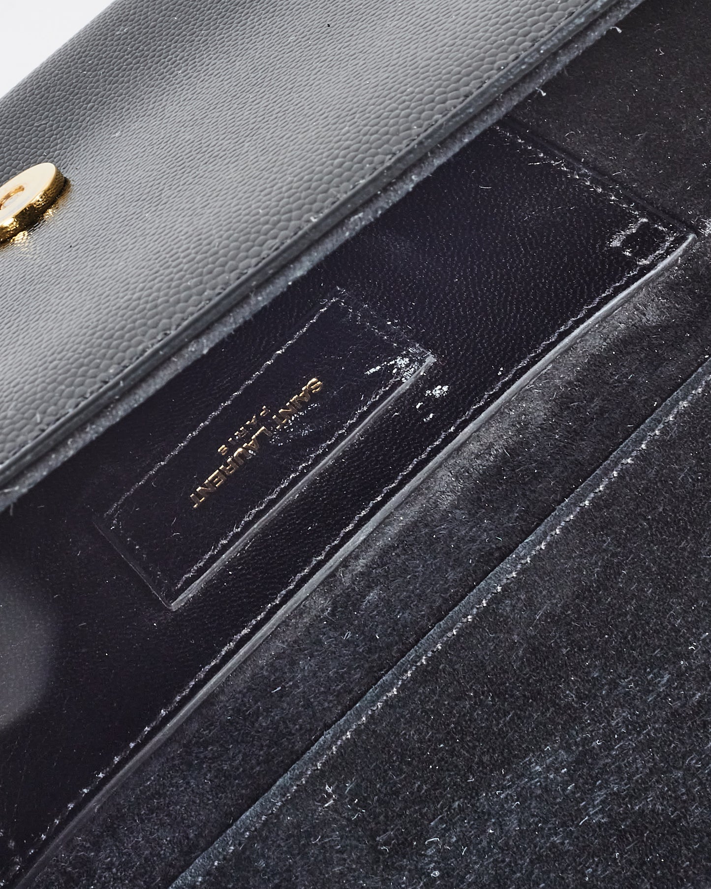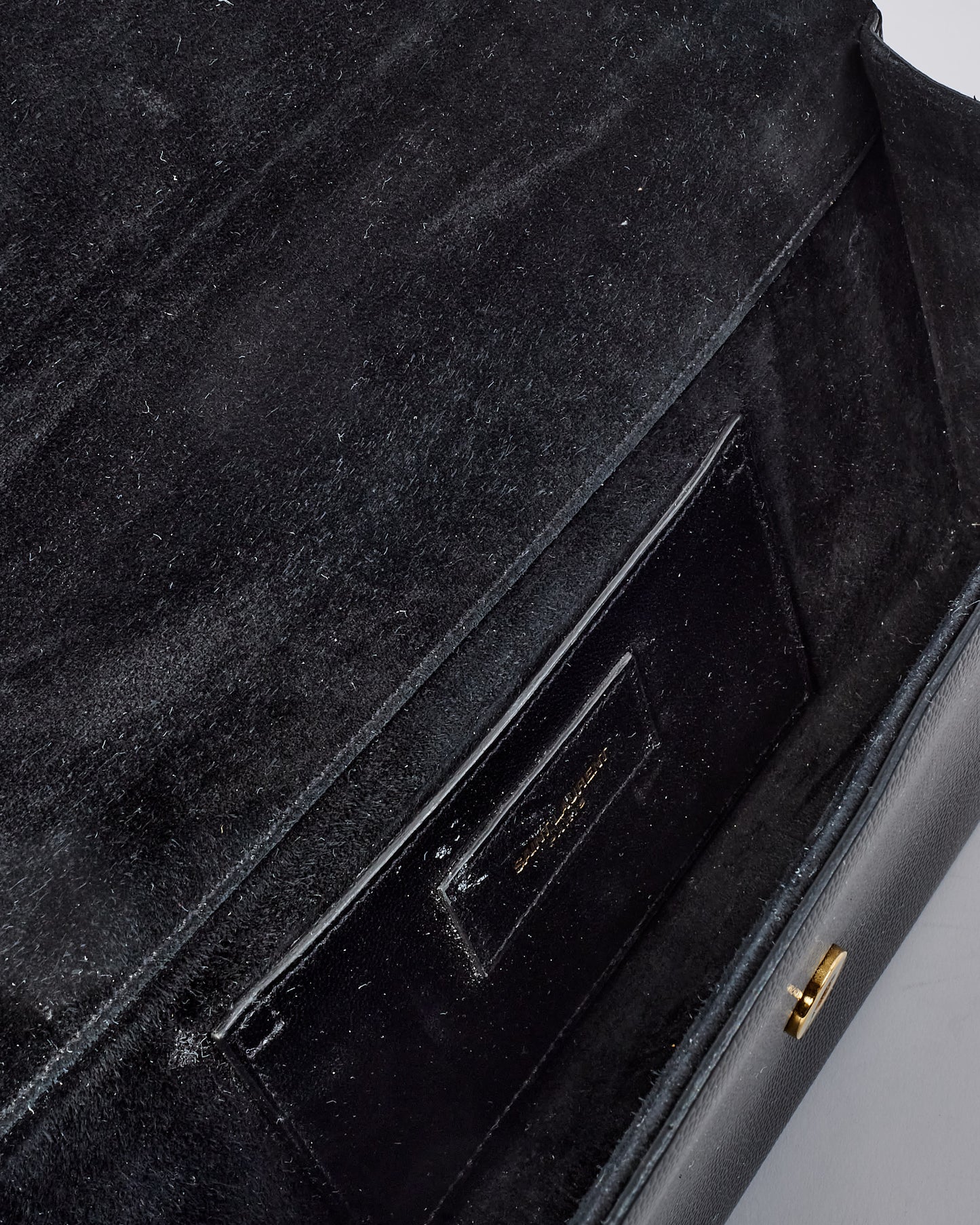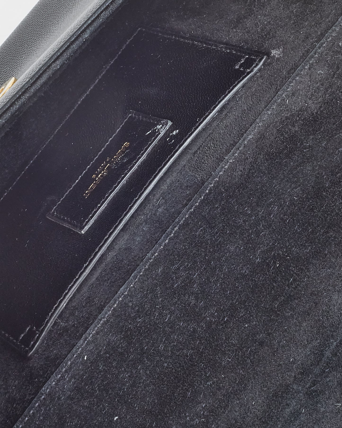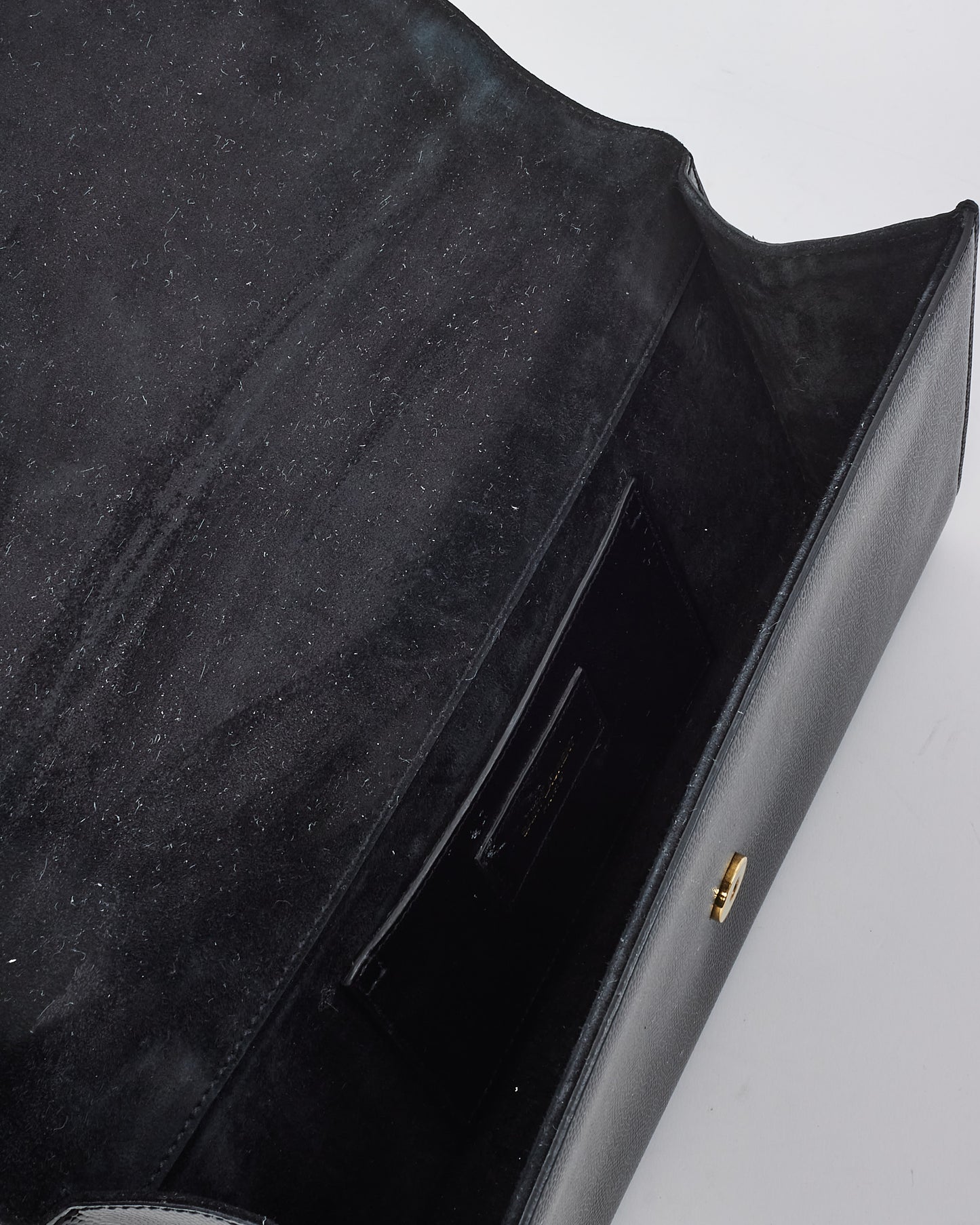Black Grained Leather YSL Logo Embossed Clutch