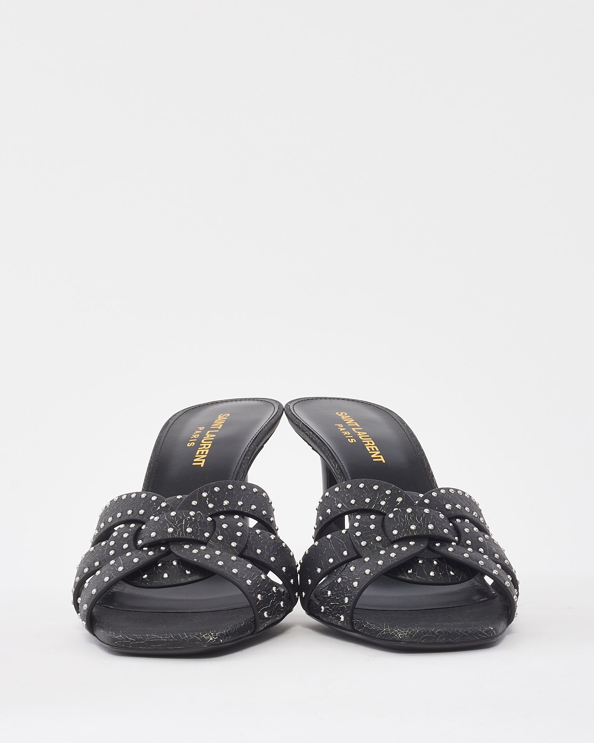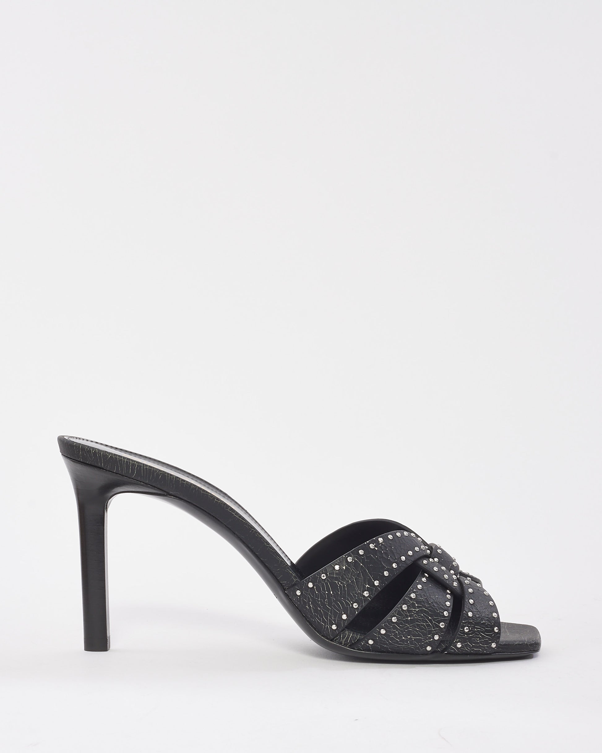 Black Leather Studded Tribute High Heel Mule Sandals - 38