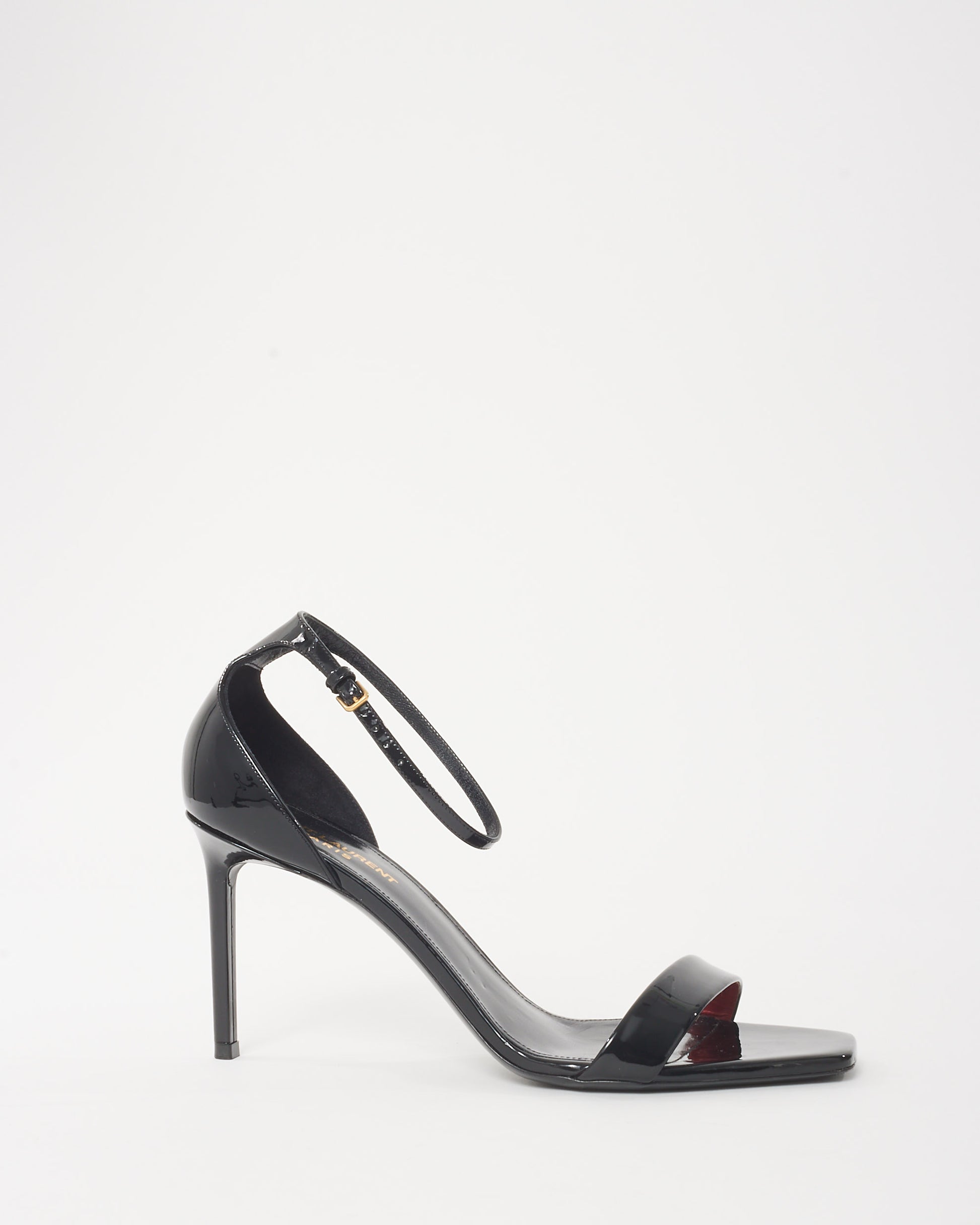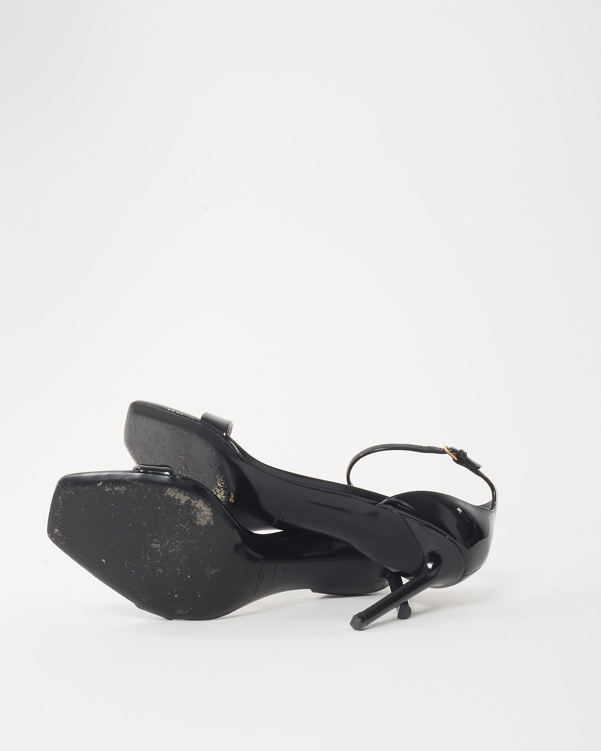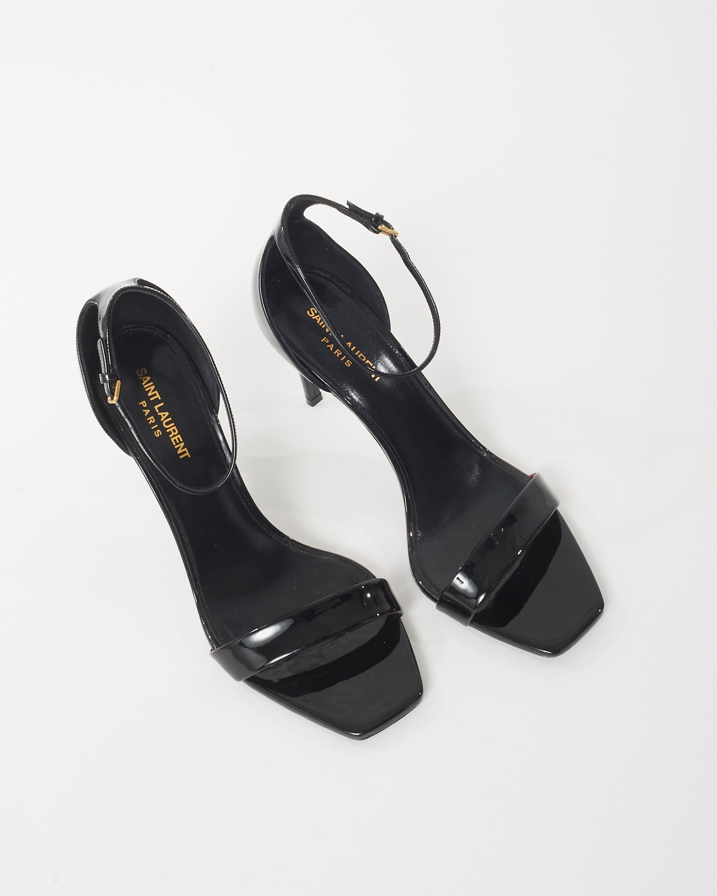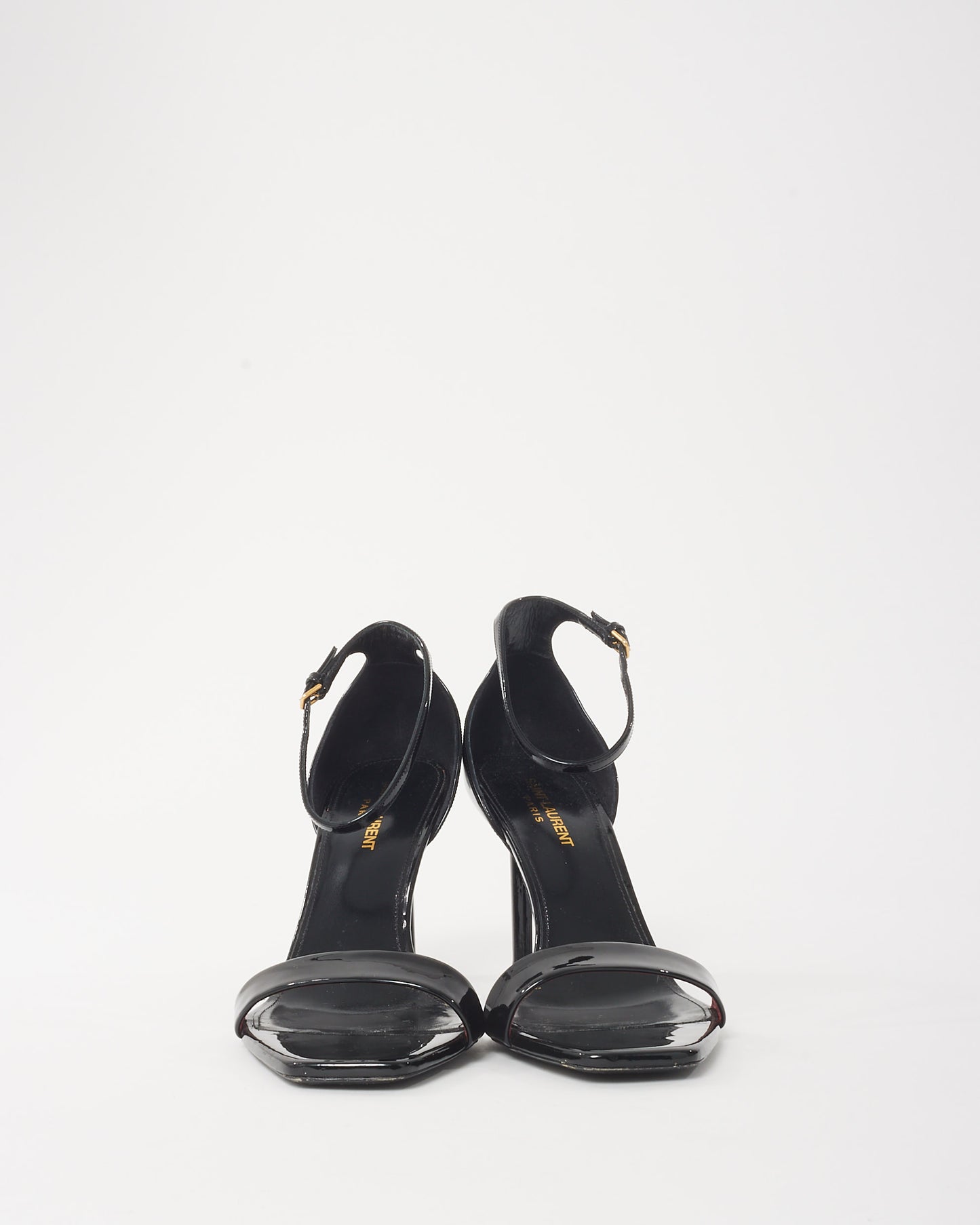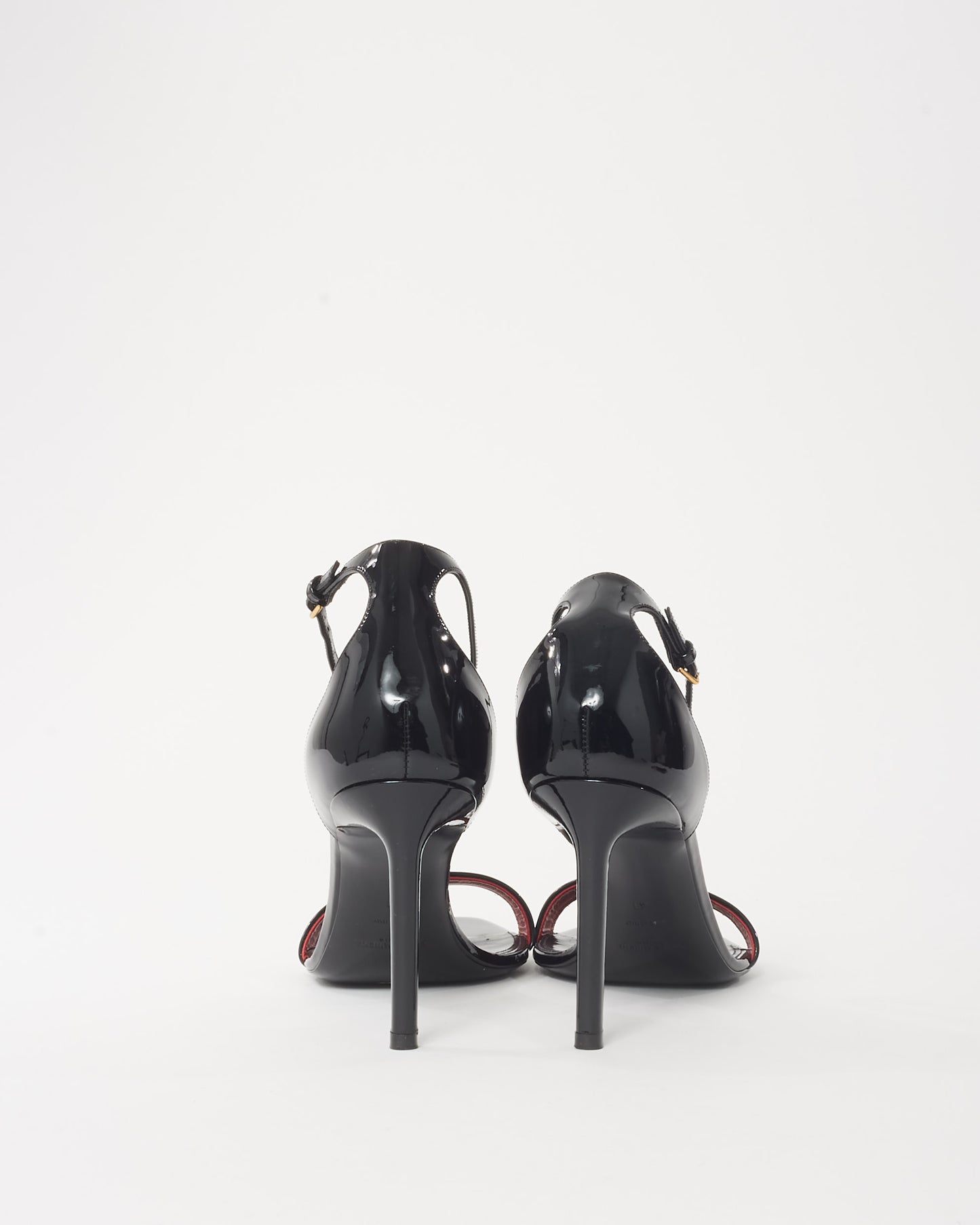Strikingly sleek and endlessly versatile, the pre-owned authentic Saint Laurent Black Patent Leather Amber 105mm Sandals are a timeless staple in any elevated wardrobe. Crafted from high-shine black patent leather, these minimalist heels feature a slim front strap, delicate ankle buckle closure, and a towering 105mm stiletto heel that elongates the leg with effortless sophistication.