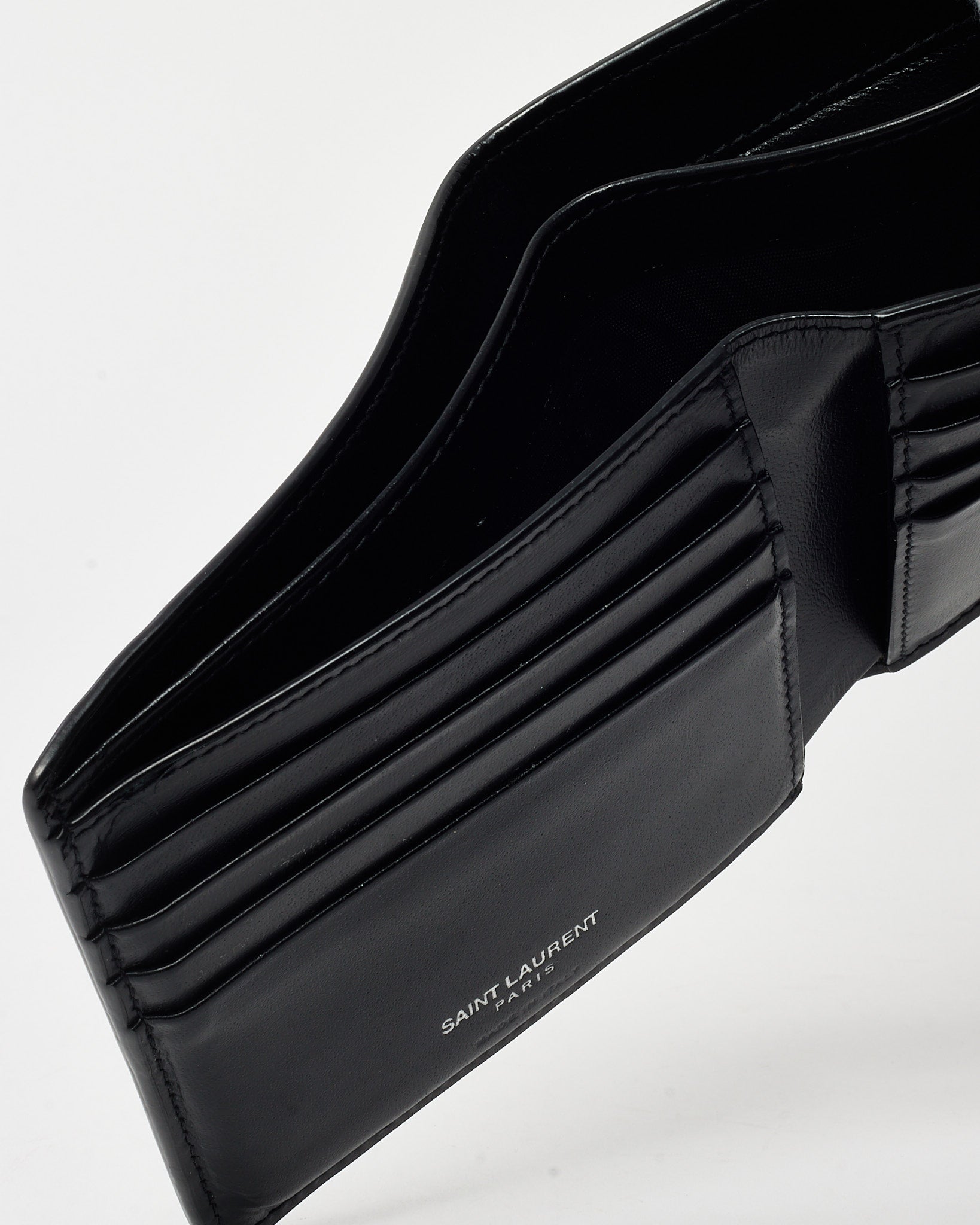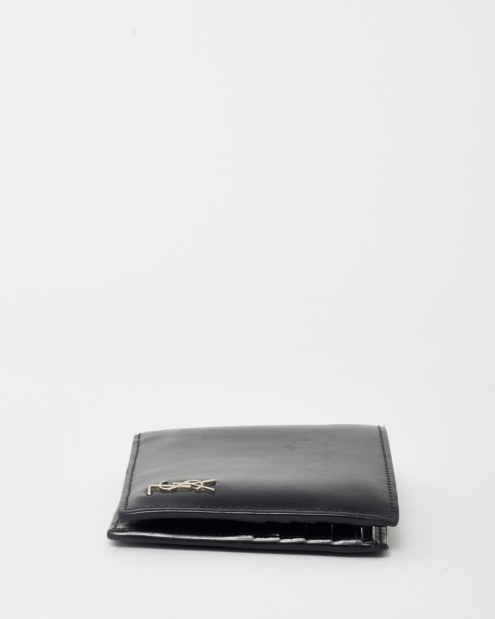 Black Shiny Smooth Leather YSL Tiny Cassandre E/W Wallet SHW