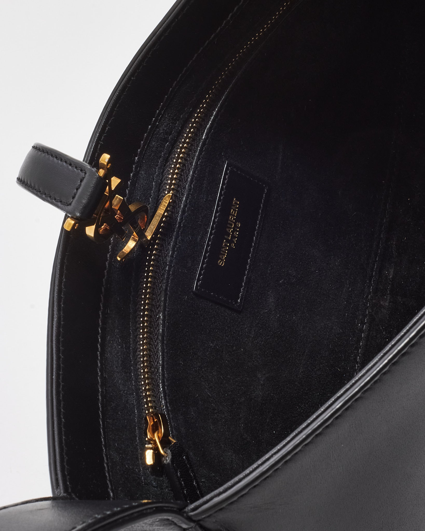 Make an effortlessly polished statement with this pre-loved authentic Saint Laurent Le 5 à 7 shoulder bag. Rendered in smooth black calfskin leather, the sleek silhouette is defined by a minimalist design and curved lines that hug the body. The iconic YSL Cassandre logo in gold-tone hardware adds a signature finish to the flap closure, while the adjustable shoulder strap ensures versatile styling. Compact yet refined, this piece is perfect for day-to-evening wear with a modern Parisian edge.