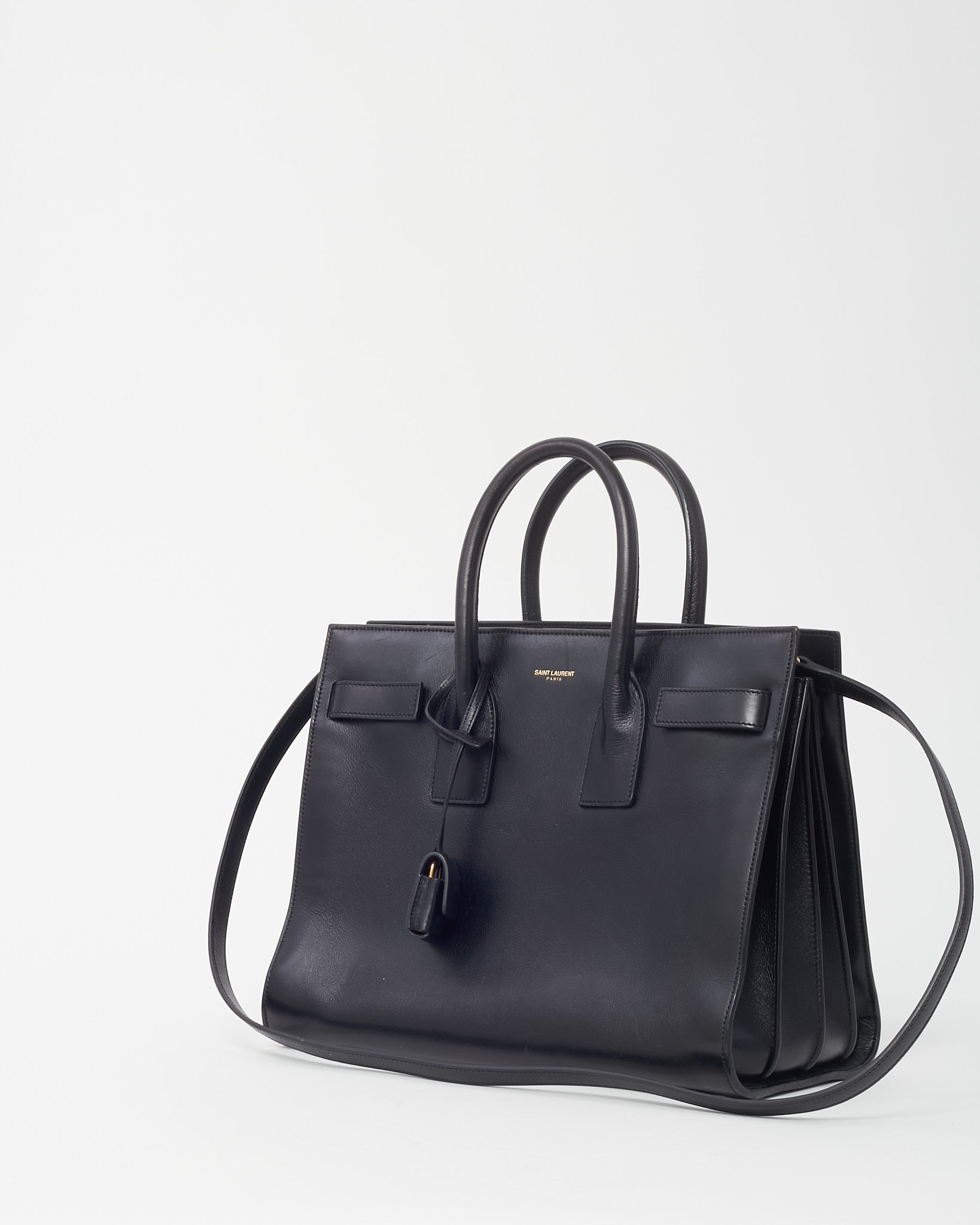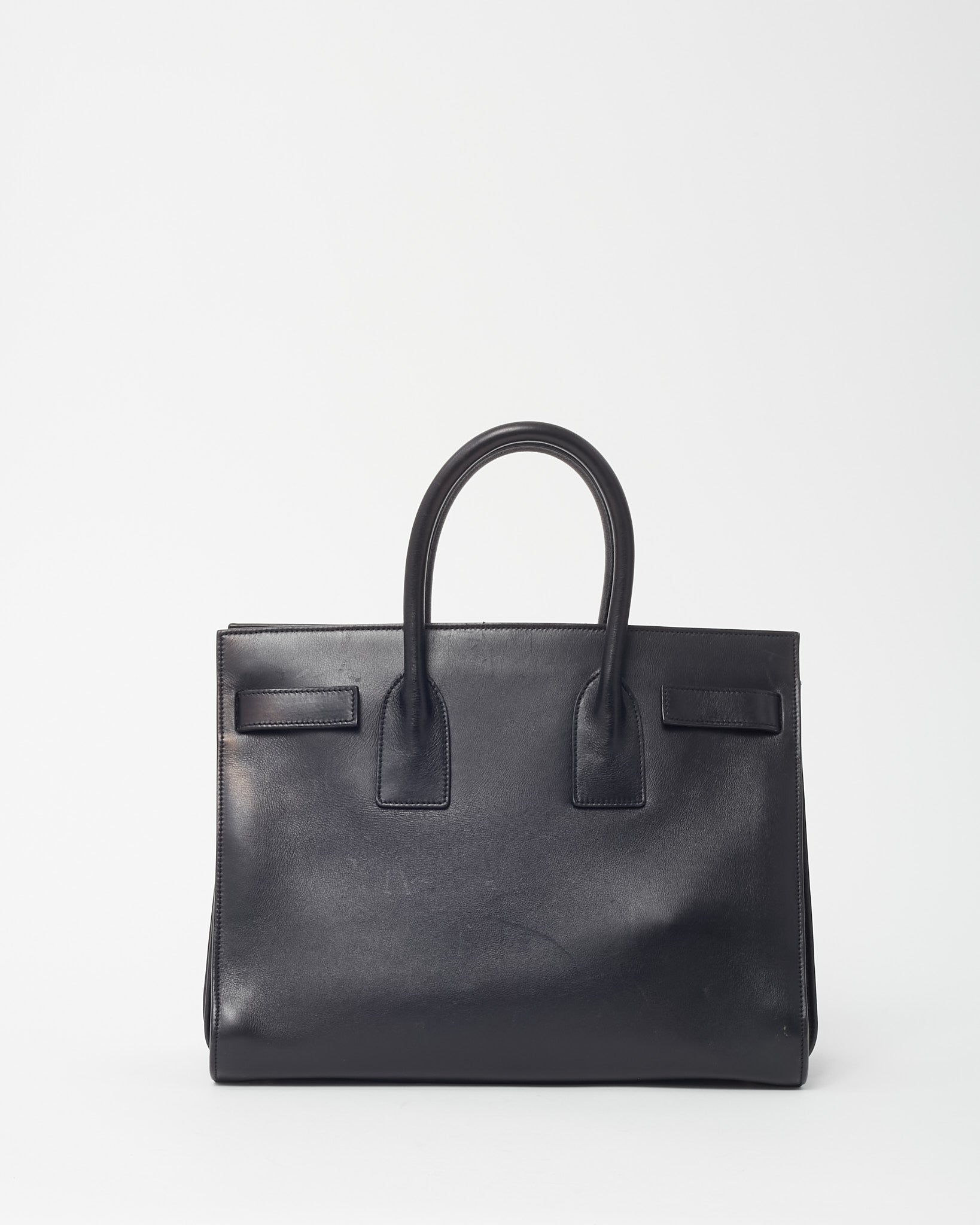 Black Smooth Leather Small Sac De Jour Bag with Strap