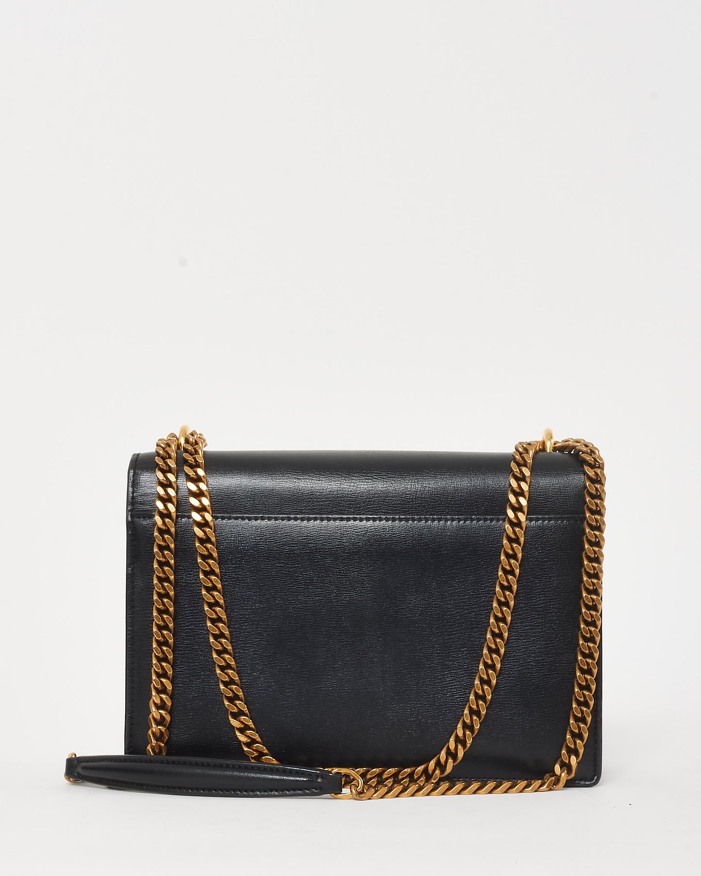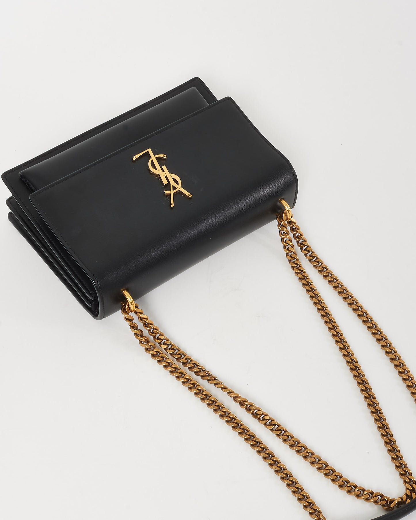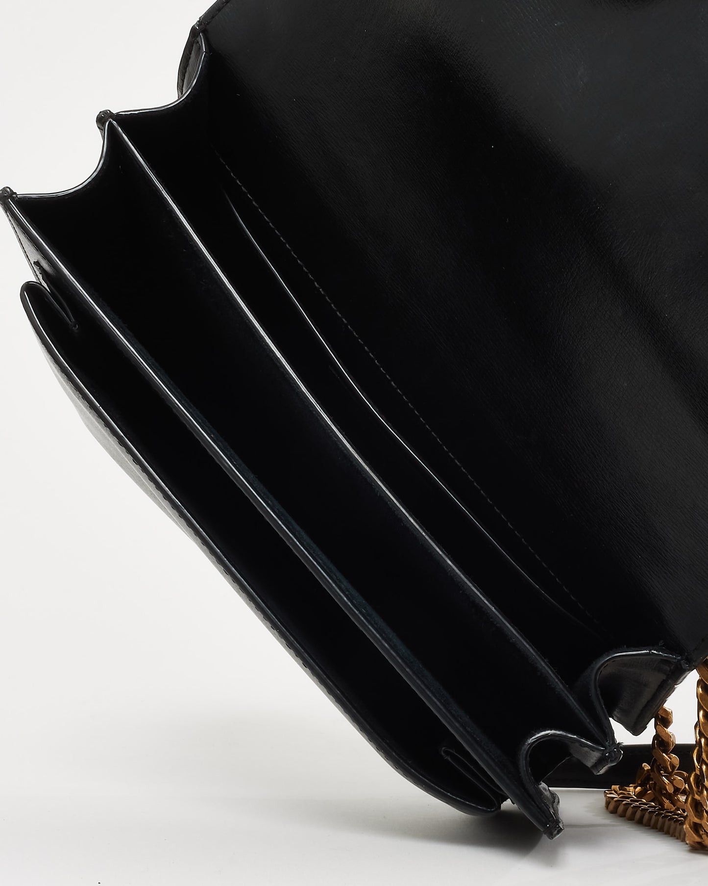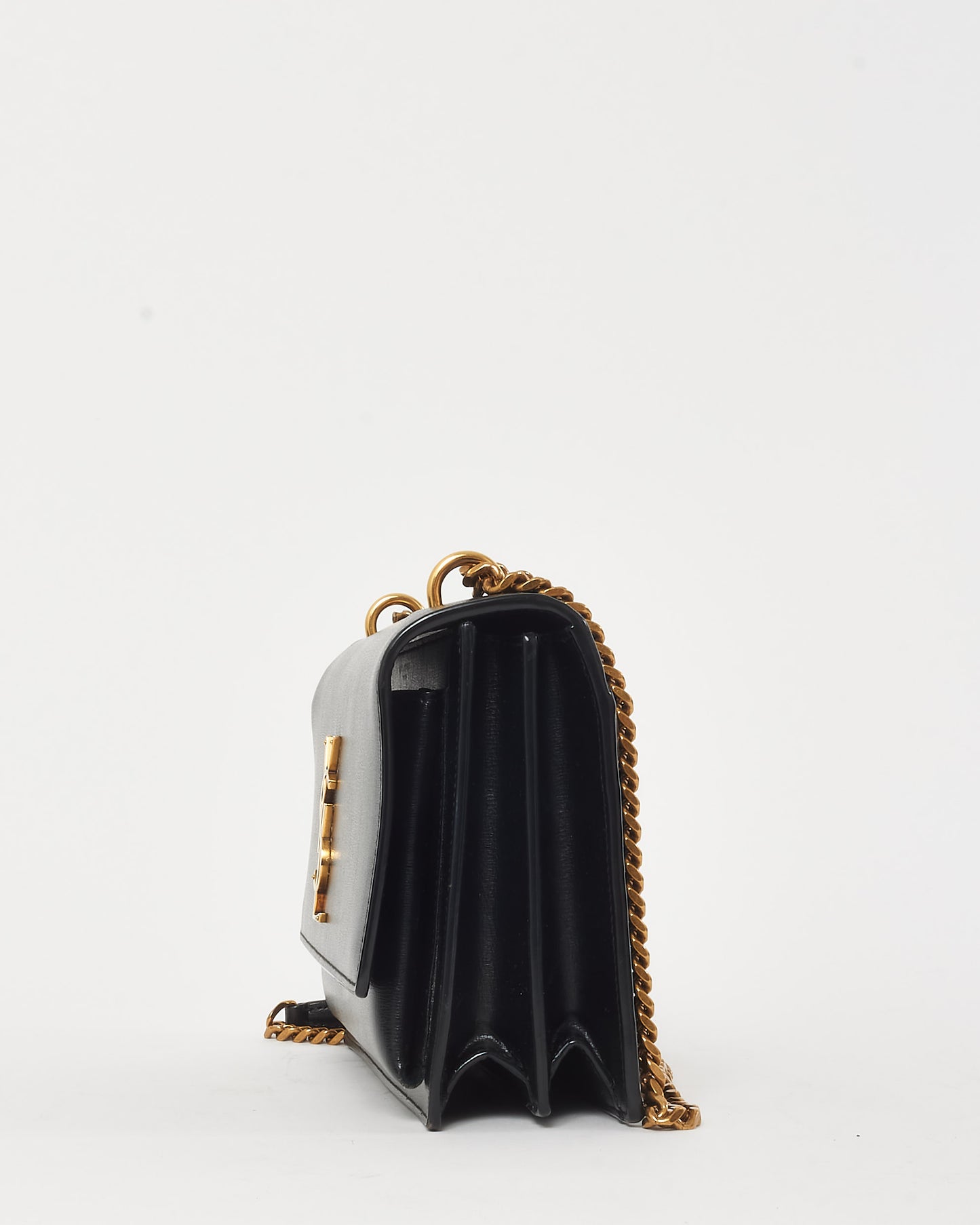 Sleek, structured, and undeniably elegant, the pre-owned authentic Saint Laurent Black Smooth Leather YSL Medium Sunset Bag is a modern icon of refined sophistication. Crafted from smooth black calfskin leather, this timeless silhouette features a sharp rectangular shape, signature gold-tone YSL logo hardware and a double-gusset design for effortless organization.