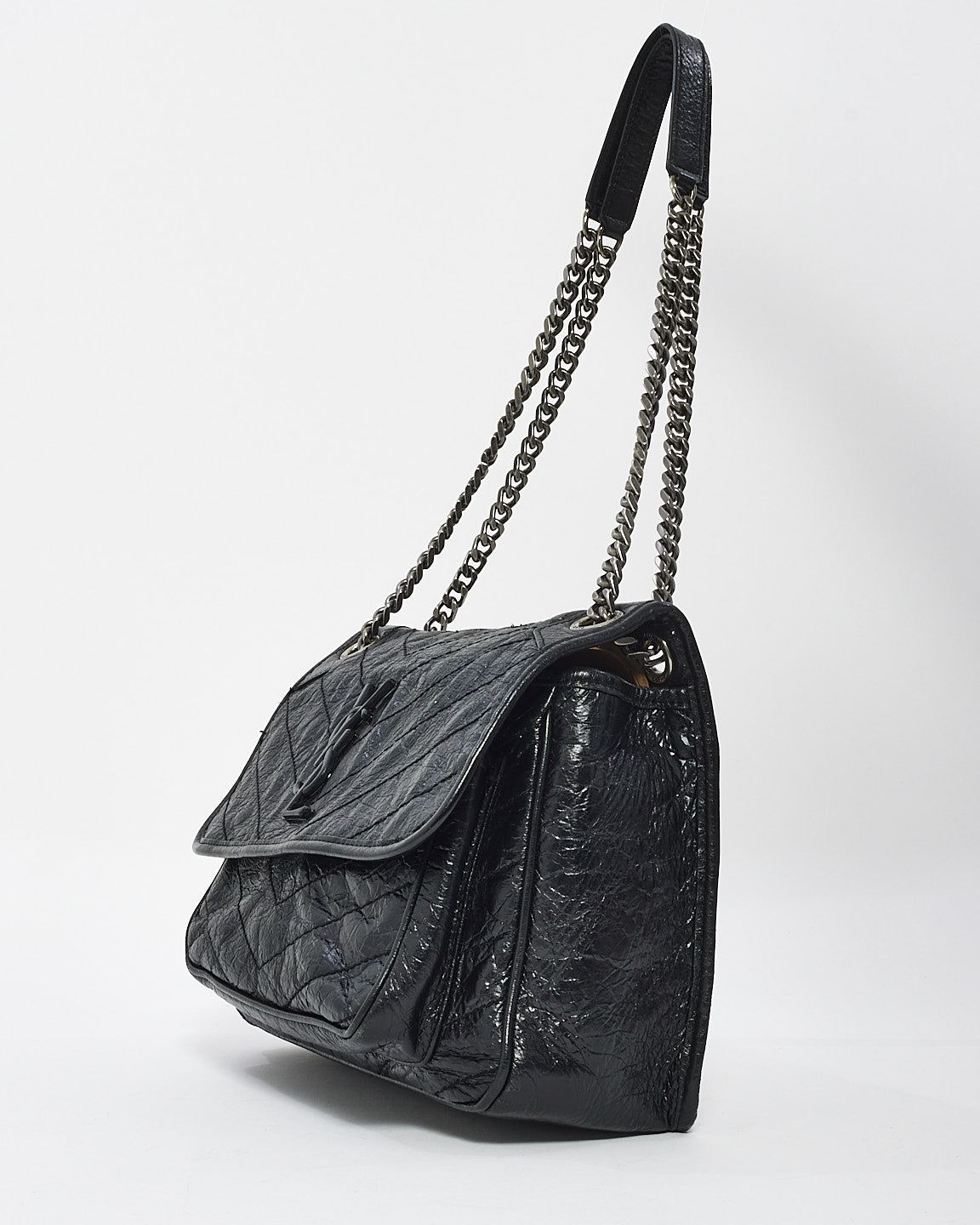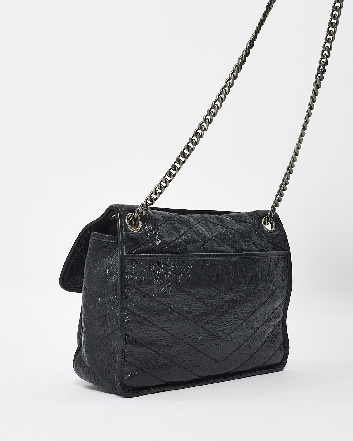 Black Vintage Leather Medium Nikki Shoulder Bag