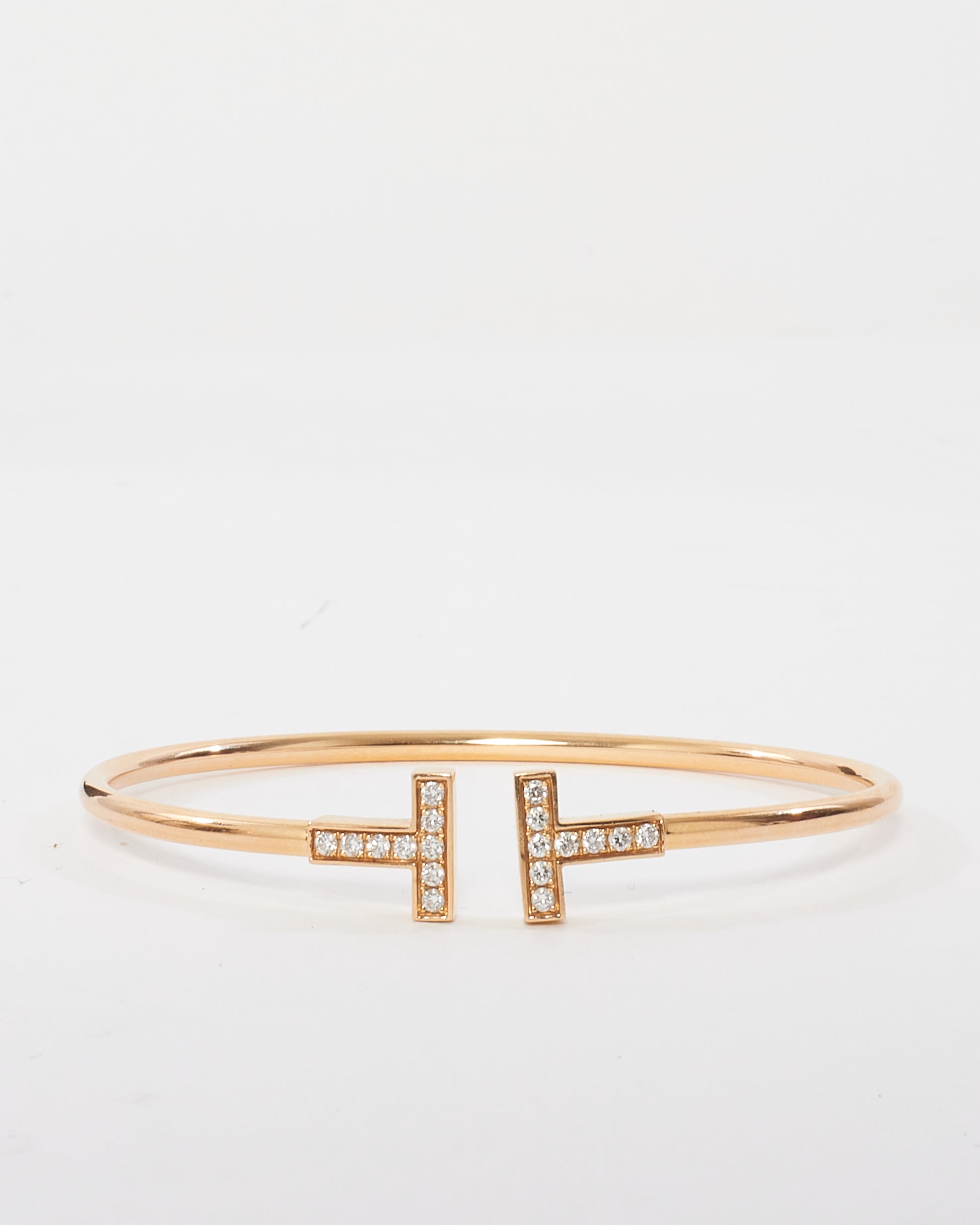 18K Rose Gold Tiffany T Wire Bracelet With Diamonds