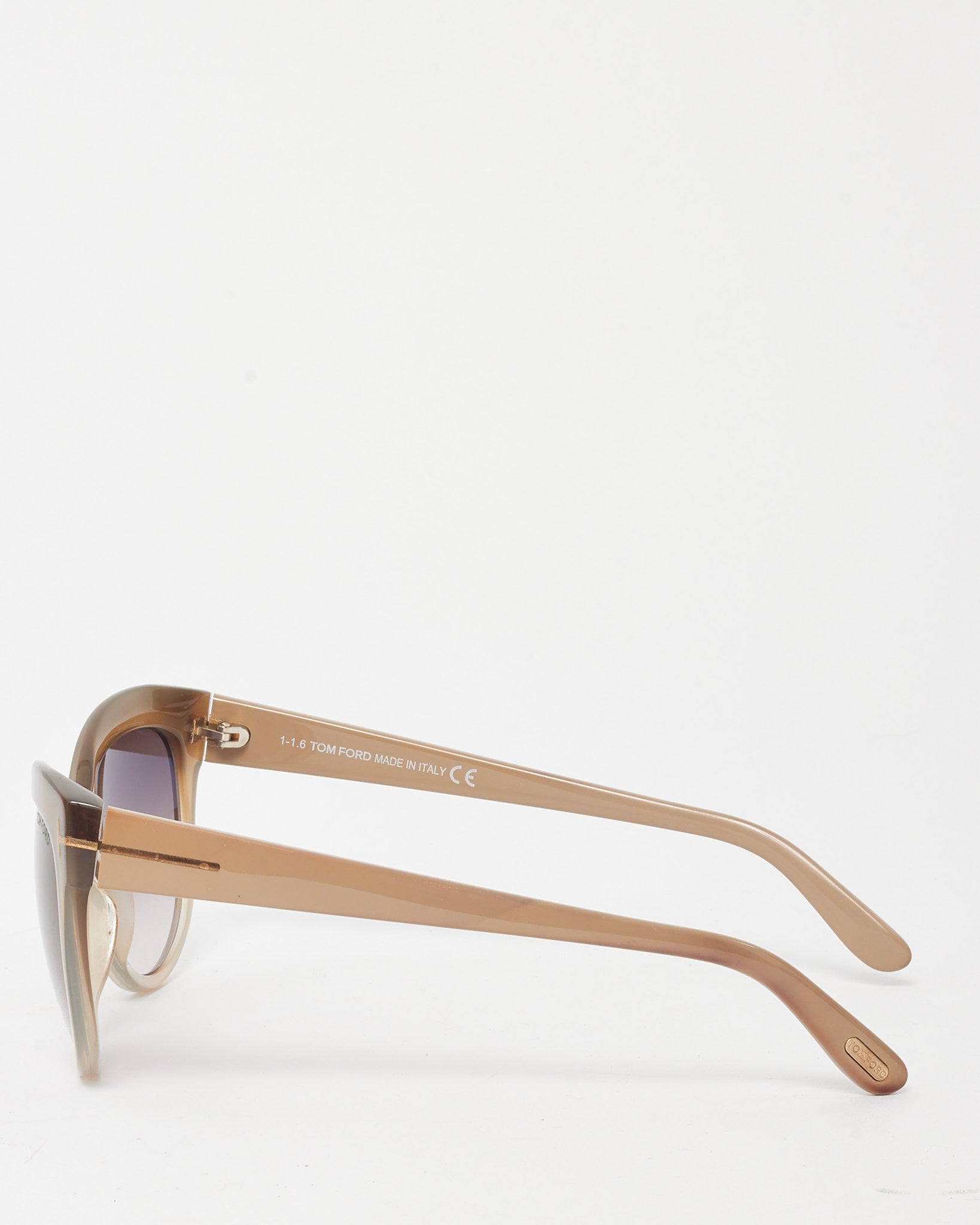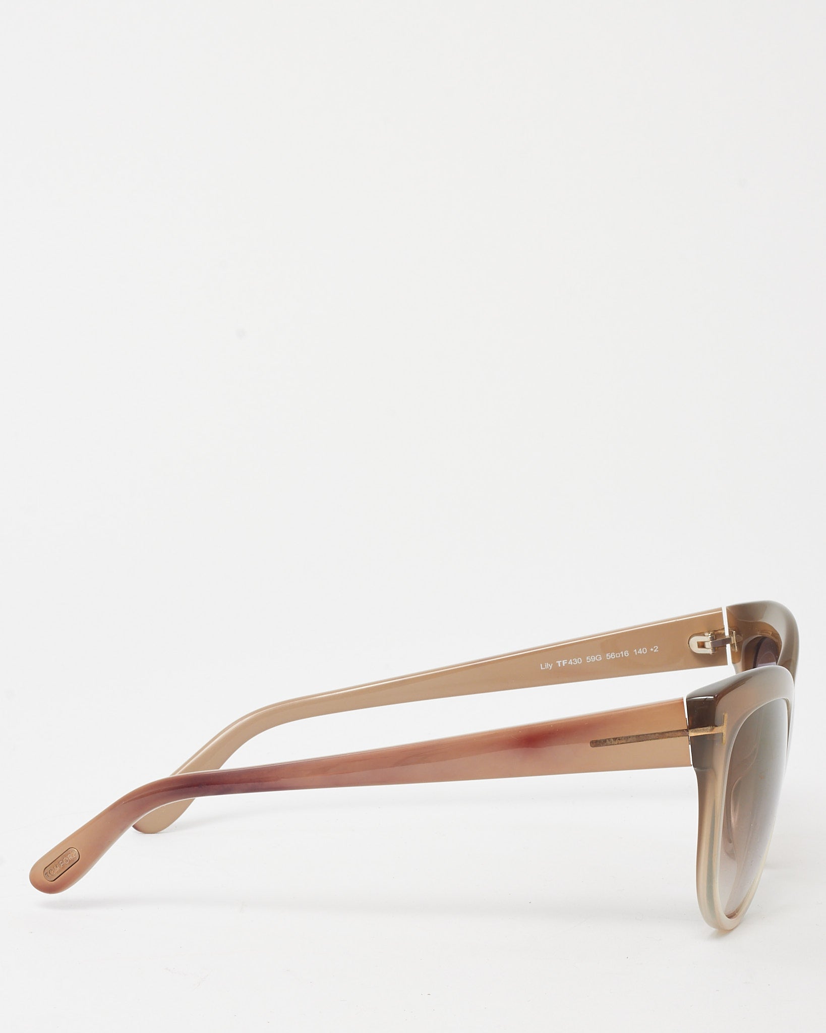 Elevate your everyday elegance with these pre-loved authentic Tom Ford Light Brown Gradient Acetate Lily TF430 Cat Eye Sunglasses. Crafted from smooth light brown acetate with a subtle gradient effect, this softly contoured cat eye silhouette exudes vintage-inspired sophistication. The signature gold-tone “T” detailing at the temples adds a touch of iconic branding, while the gradient lenses offer both UV protection and visual depth. Refined and feminine, they’re the perfect finishing touch for sunlit days and polished styling.