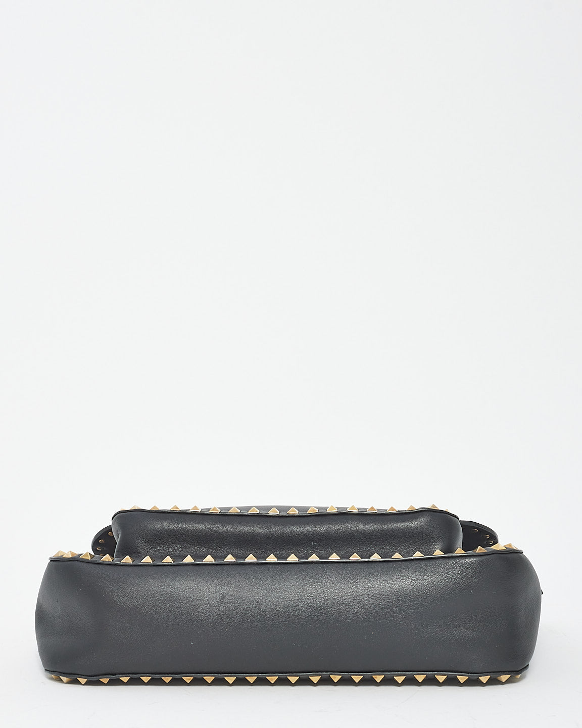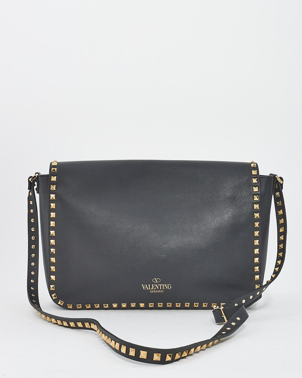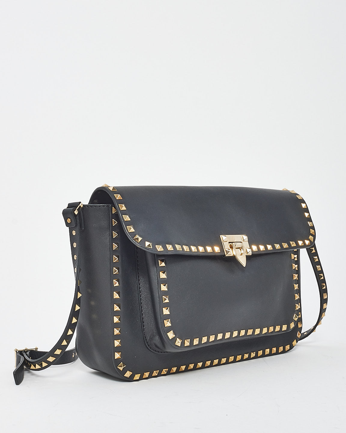Black Leather Front Pocket Flap Rockstud Crossbody Bag