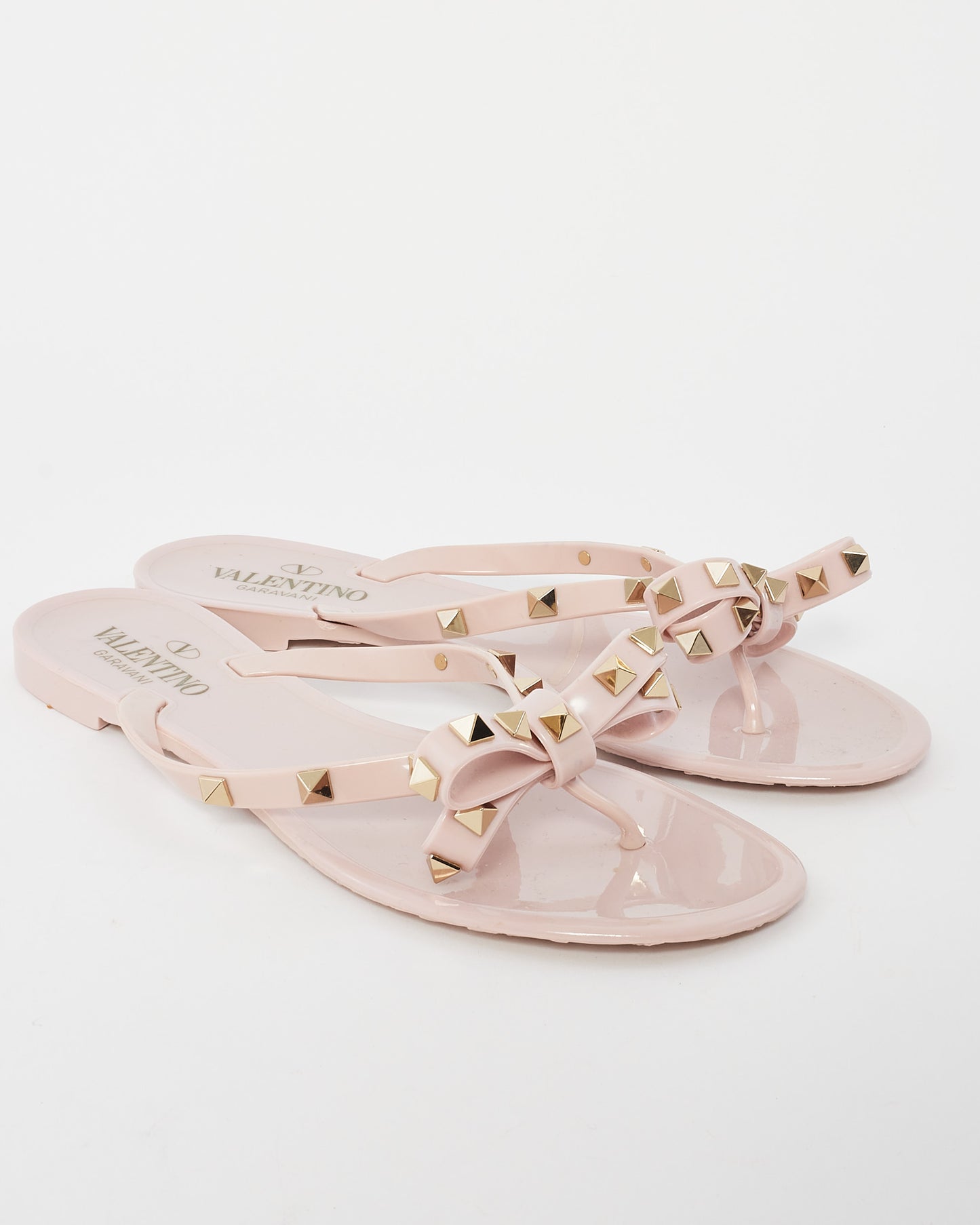 Pink PVC Jelly Rockstud Thong Sandals - 38