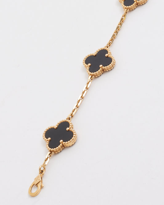 Gold Black Onyx 5 Motif Vintage Alhambra Bracelet