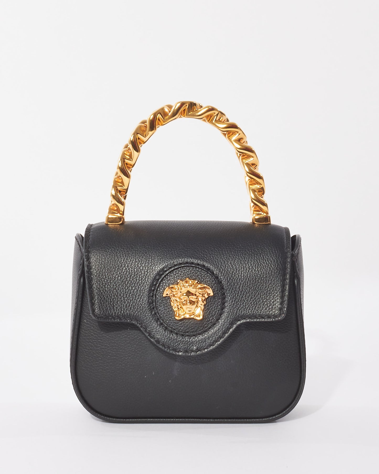 Explore Versace's exquisite collection of handbags, featuring this certified pre-owned Black Leather "La Medusa" Mini Bag. Embodying timeless elegance and modern sustainability, each piece, including favorites like this, is authenticated by Retyche. Discover sustainable luxury — shop our current treasures or find inspiration for your next coveted find.