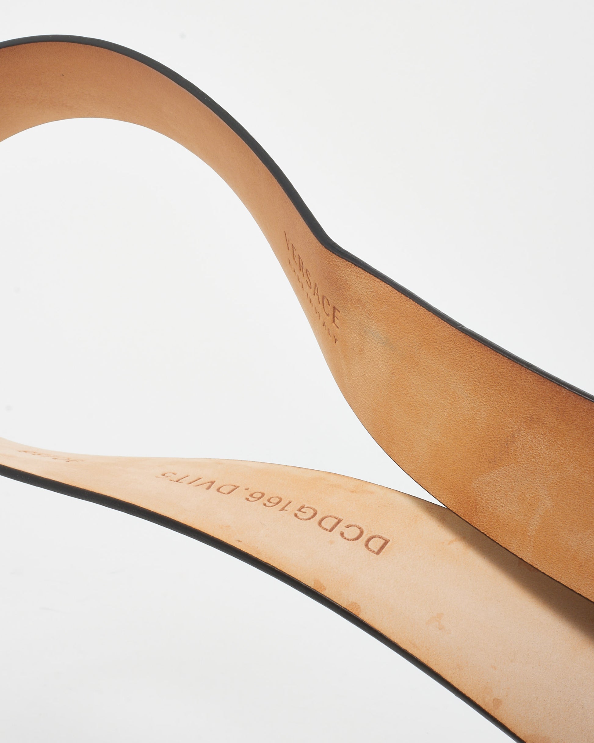 Explore Versace's exquisite collection of accessories, featuring this certified pre-owned Black Leather Medusa Head Belt - 90/36. Embodying timeless elegance and modern sustainability, each piece, including favorites like this, is authenticated by Retyche. Discover sustainable luxury — shop our current treasures or find inspiration for your next coveted find.