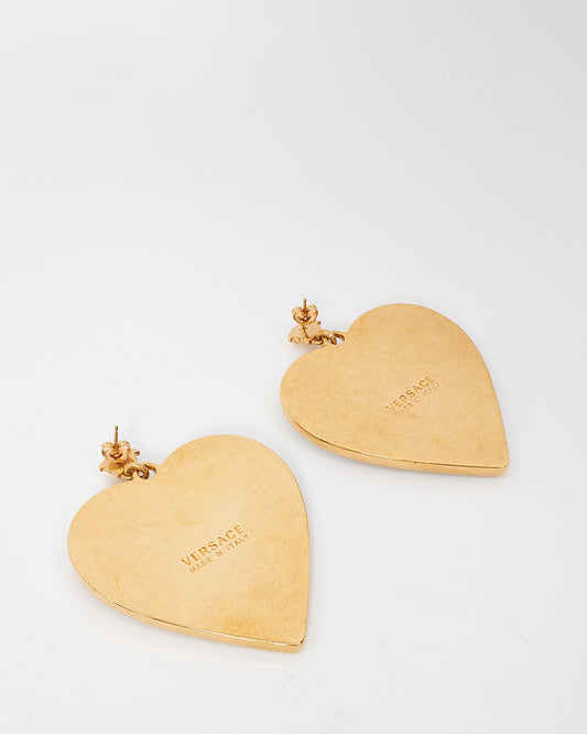 Blue Gold Crystal Large Heart Medusa Earrings