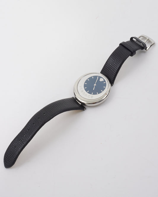 Versace Medusa Black Leather Strap Stainless Steel Watch