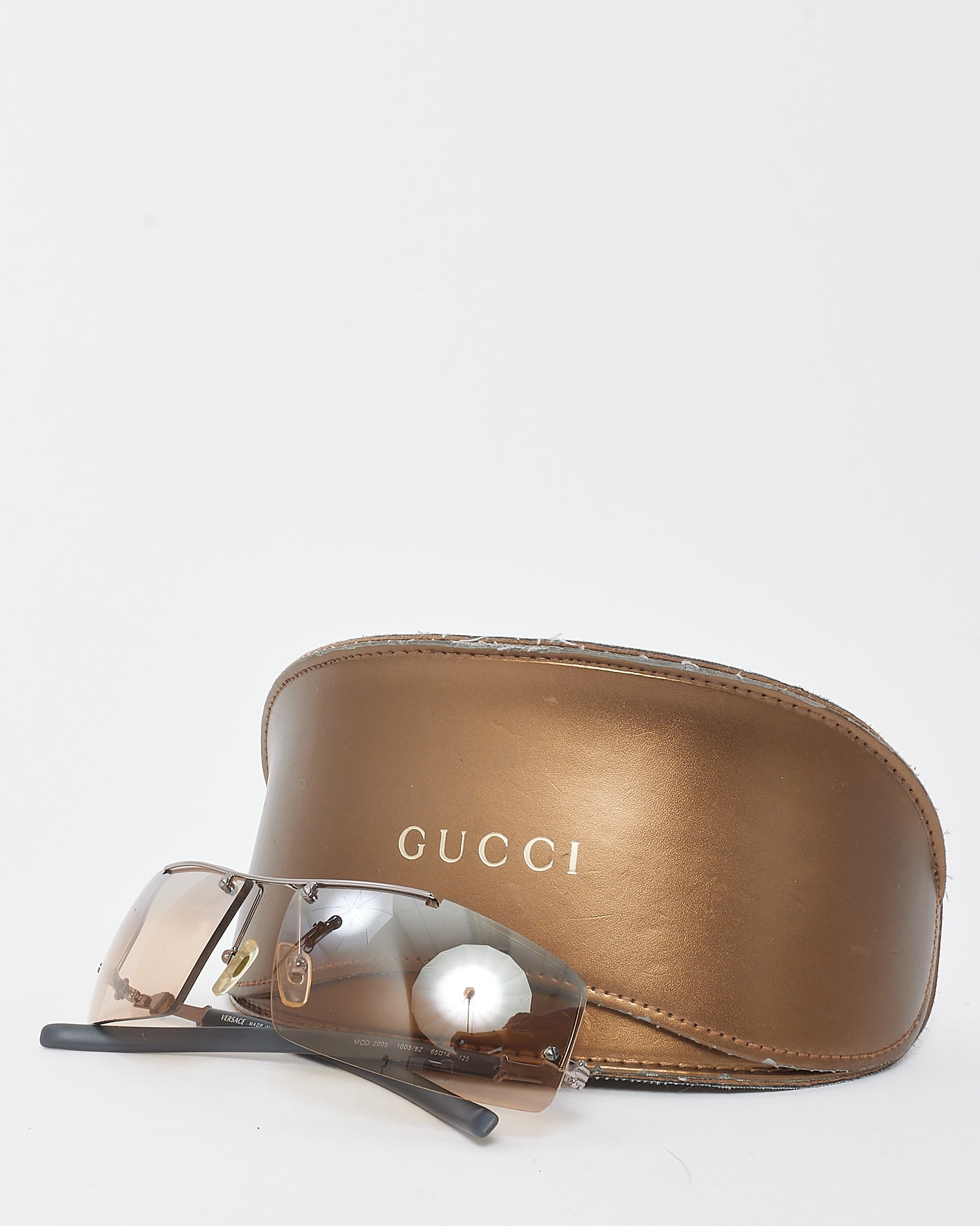Channel timeless edge with these pre-loved authentic Versace Vintage Black Acetate Square Medusa Head MOD4105 sunglasses. Crafted from glossy black acetate, the bold square frame is defined by strong lines and sculpted contours for a commanding silhouette. At each temple, the iconic Medusa head medallion delivers unmistakable Versace attitude—equal parts classic and rebellious. A vintage gem with enduring appeal, this pair adds a dose of signature glamour to any eyewear collection.