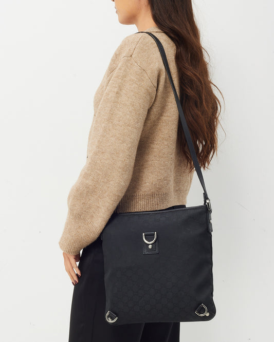 Black GG Monogram Canvas D-Ring Abbey Messenger Bag