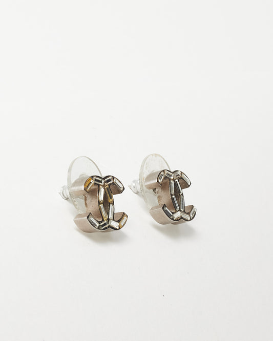 Silver Crystal Baguette CC Logo Stud Earrings (missing crystals)