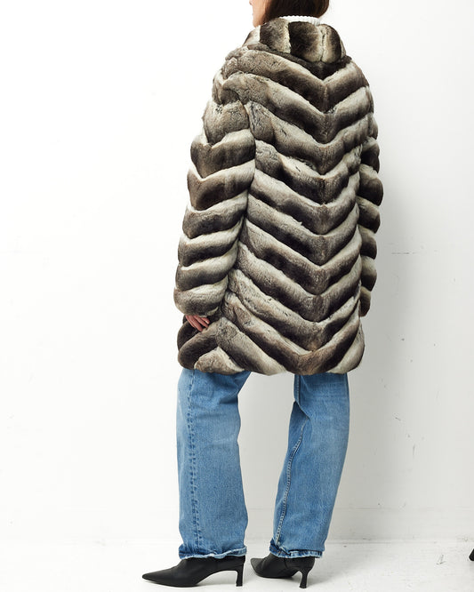 Pre-Owned Grey Wanger Chinchilla Knee-Length Coat - M/L